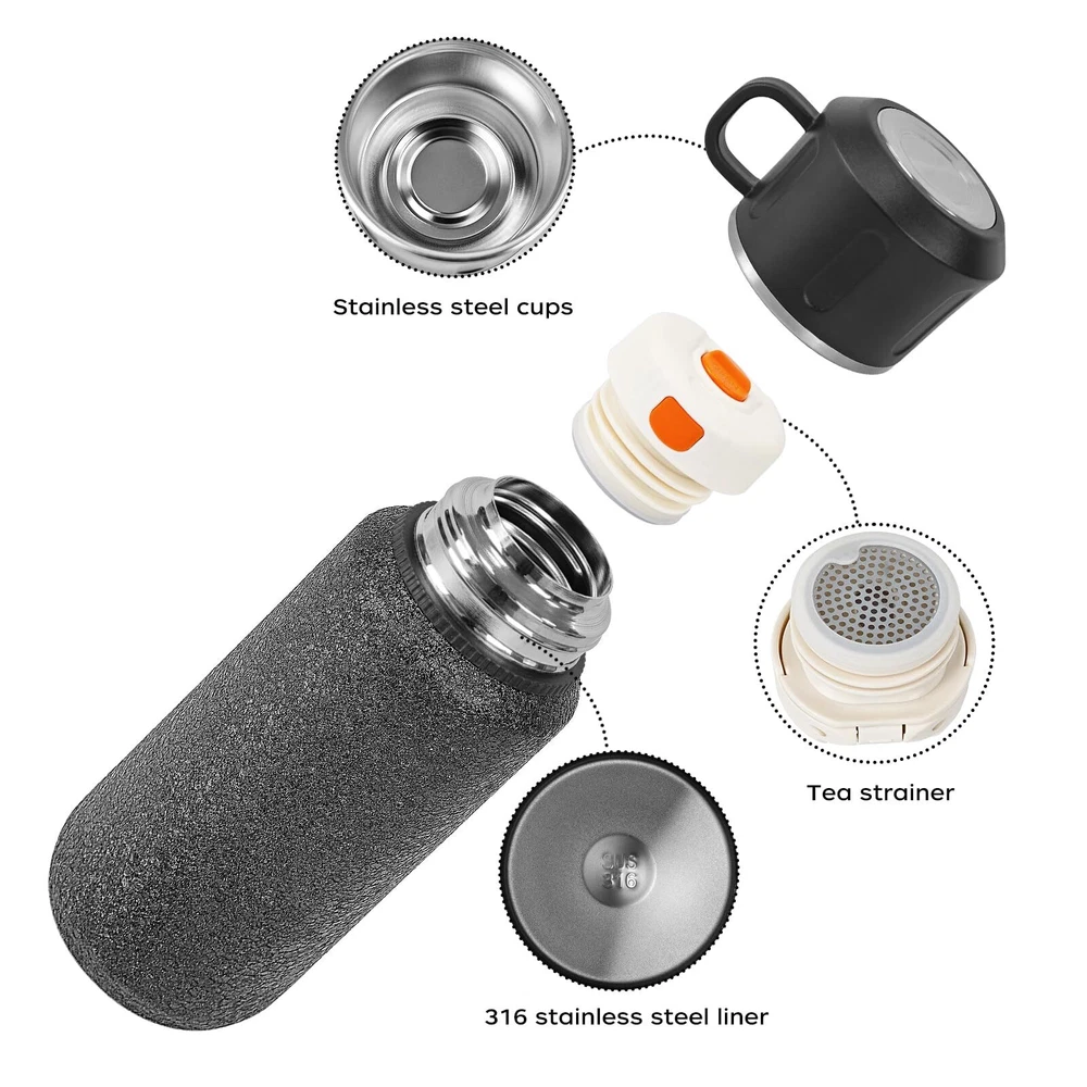 Double-Walled Vacuum Insulation: This stainless steel water bottle features double-walled vacuum insulation to keep beverages hot or cold for hours. Durable Construction: Made of high-quality 18/8 stainless steel, this bottle is durable, BPA-free, and won't retain flavors or odors. Leak-Proof Design: The bottle has a leak-proof cap and silicone gasket to prevent spills, making it ideal for travel, gym, or outdoor activities. Convenient Size: With a 27oz/800ml capacity, this bottle is perfect for staying hydrated throughout the day. Sweat-Free Exterior: The double-walled construction prevents condensation on the outside, keeping your hands dry and your surfaces safe.