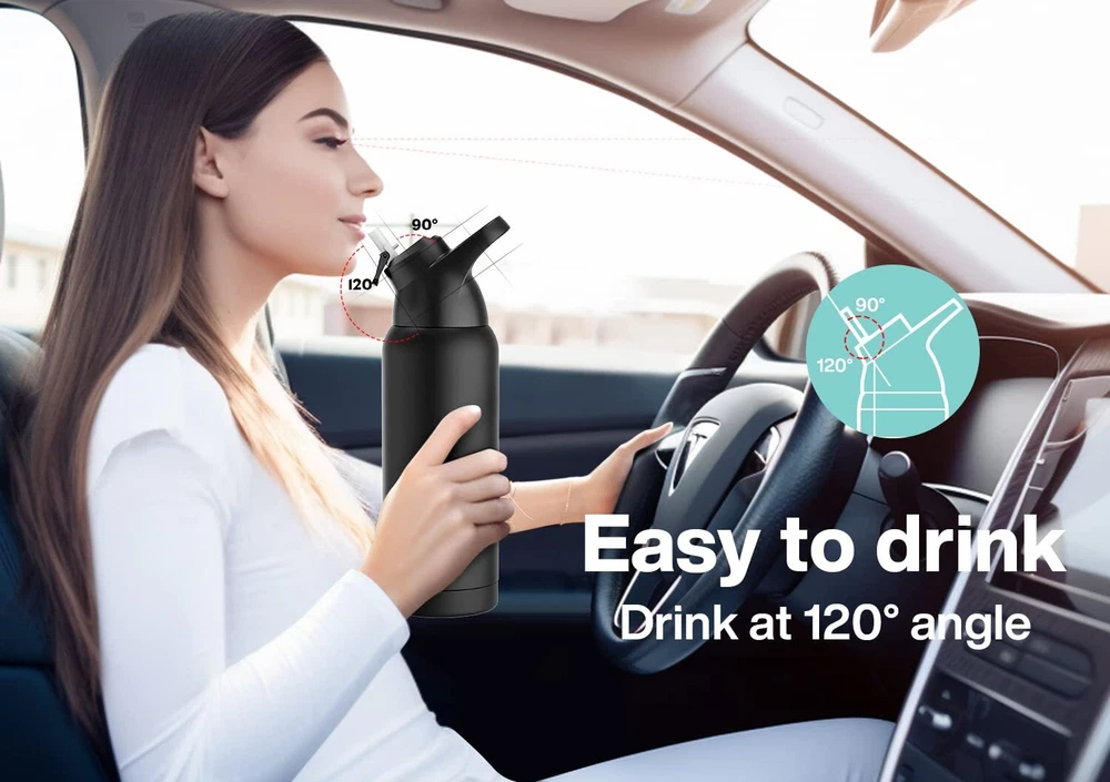 36 Hours Cold, No Sweat- Keep your beverages icy COLD for up to 36 hours with our stainless steel water bottle. Double-wall vacuum insulation, no sweat Leak-proof Tritan Straw Lid - With our extra-long straw that reaches the bottom of the bottle, enjoy every last drop of your beverage. Straw cap, keep the spout clean. NOT for hot or carbonated drinks Easy to Drink - With 150° drinking design, providing a comfortable grip and effortless sipping experience. The built-in carry loop enables you to carry it with ease 18/8 Food-Stainless Steel - BPA and phthalate-free. coating is more resistant to scratches. It can float in a pool, satisfy your thirst while you swim. Wide mouth, easy to clean and fill Easy to Grip- Non-slip silicone base is scratch-resistant and noise-free. Slim line, easy to grip and use