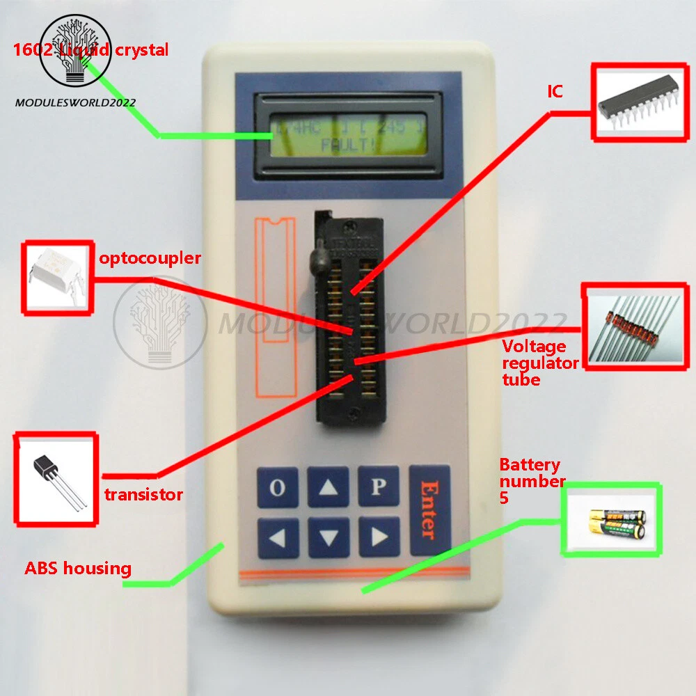 Store Categories Store Categories Other Product View Details Features: 1. The product is made of high quality materials, quality assurance 2. can test 74ch series, osmo series, cd4000 series, hef400 series, 4500 series, operational amplifiers, interface class chips, optocouplers, automatic identification of transistors, voltage regulator voltage value identification 3. Can also test the integration of various types of chip data model more than 1300 kinds, transistor data model more than 420 kinds, covering most of the common general-purpose devices within 24 feet, can significantly reduce the maintenance workload, improve efficiency 4. The product appearance is exquisite and beautiful, easy to carry 5. It is a professional device, easy and convenient to operate with buttons Description: Is a multi-functional maintenance tester designed specifically for front-line maintenance personnel, can choose different test modes 5v mode, 3.3v mode, automatic mode, etc. can test 74ch series, 74ls series, osmo series, CD4000 series, HEF400 series, 4500 series, operational amplifiers, interface class chips, optocouplers, transistors automatic identification, voltage regulator tube voltage value Identification, etc. Built-in various types of chip data model more than 1300 kinds, transistor data model more than 420 kinds, covering most of the common devices within 24 pins, can significantly reduce the maintenance workload, improve maintenance efficiency. Repair assistant 9v stacked battery, and ordinary multimeter battery, power consumption is very ordinary digital multimeter. Press the Enter key can be turned on, the first boot automatically run a self-test, self-test detects the battery voltage for more than two seconds after the display on the screen, when the battery voltage is lower than 7v, replace the battery to ensure measurement accuracy. If there is no alarm, the measurement work can start. native ad 10 ad, the theoretical resolution of 5v voltage is 0.0048v. due to the use of battery power, not suitable for measuring high-power thyristor. The Zener value must be based on the actual measurement, not just the nominal value. The default directory for initialization is the search directory. An ordinary optocoupler optocoupler test up to a dozen parameters, simple measurement of optocoupler logic ratio is not much practical significance, this machine can test the optocoupler secondary saturation voltage for reference. Test standard 4 feet optocoupler. Product instructions: There are seven buttons on the panel for up, down, left, right and keying keys and hot keys o, p. The up and down keys are used to adjust the catalog and change the model number, and the left and right keys are used to move the cursor left and right to select the item to be changed. The Enter key is used to change the machine and to execute test commands. Open the battery cover on the two 5 #1.5v batteries and close the battery cover. Press enter for more than 2 seconds to turn on the machine. The power on automatically displays the current battery voltage, when the battery is too low, replace the battery, low voltage will affect the reliability of test results and automatic shutdown protection. Power on: Press enter for more than 2 seconds to power on. Shutdown: 1 Press enter in the OFF directory then immediately shut down. 2 Press enter any directory press enter key for more than 10 seconds to hang up. 3 after 60 seconds without any operation, the automatic shutdown Shortcut 1: Press the 0 key for quick shutdown (06 type) Button 2: Press p key Repeat self-test, reset button Equipment positioning method: 1, the chip, optocoupler placed above the alignment, 1-pin ic alignment seat. 2, the left triode, most of the three slots. 3, ic regulator placed in the seat 13 and 14 feet. Note: transistor display pin order from left to right corresponds to 10-foot, 11-foot, 12-foot ic block. (Not built-in battery or adapter) Shipping list: (optional) Package 1: Tester X1 Package 2: tester X1+16PIN holder X1+20PIN holder X1+24PIN holder X1 Shipping Policy Payment Method Returns Policy Shipping Policy Payment Method Returns Policy Home Payment Shipping About us Contact us Copyright©2018 datacaciques Home Payment Shipping About us Contact us Store Categories Store Categories Other Product View Details Features: 1. The product is made of high quality materials, quality assurance 2. can test 74ch series, osmo series, cd4000 series, hef400 series, 4500 series, operational amplifiers, interface class chips, optocouplers, automatic identification of transistors, voltage regulator voltage value identification 3. Can also test the integration of various types of chip data model more than 1300 kinds, transistor data model more than 420 kinds, covering most of the common general-purpose devices within 24 feet, can significantly reduce the maintenance workload, improve efficiency 4. The product appearance is exquisite and beautiful, easy to carry 5. It is a professional device, easy and convenient to operate with buttons Description: Is a multi-functional maintenance tester designed specifically for front-line maintenance personnel, can choose different test modes 5v mode, 3.3v mode, automatic mode, etc. can test 74ch series, 74ls series, osmo series, CD4000 series, HEF400 series, 4500 series, operational amplifiers, interface class chips, optocouplers, transistors automatic identification, voltage regulator tube voltage value Identification, etc. Built-in various types of chip data model more than 1300 kinds, transistor data model more than 420 kinds, covering most of the common devices within 24 pins, can significantly reduce the maintenance workload, improve maintenance efficiency. Repair assistant 9v stacked battery, and ordinary multimeter battery, power consumption is very ordinary digital multimeter. Press the Enter key can be turned on, the first boot automatically run a self-test, self-test detects the battery voltage for more than two seconds a