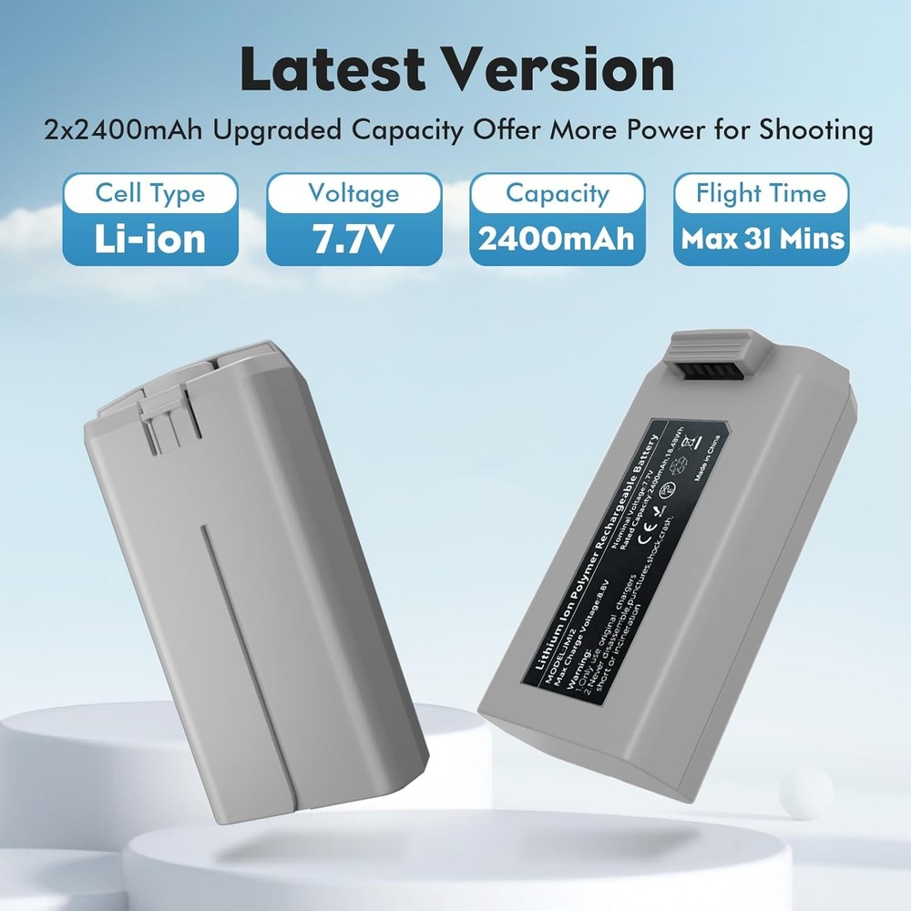 Store New Arrivals Add to Favorite View Feedback Contact Intelligent Flight Battery Compatible with DJI Mini 4K, Mini 2,Minise,Mini2 SE (Two Batteries with a Charger) Description Unit Count 1.0 Count Style Two Batteries with a Charger Battery Cell Composition Lithium Polymer Item Weight 12.8 ounces Batteries 2 Nonstandard Battery batteries required. (included) Recommended Uses For Product Drone Number of Batteries 2 Nonstandard Battery batteries required. (included) Package Dimensions 5.47 x 3.22 x 2.87 inches Packing List:2*24000mAh Batteries,1*Battery Charger Hub,1*C-C Cable. Compatibility:The Intelligent Flight Batteries and the charger are fully compatible with DJI Mini 4K&Mini 2&Mini 2 SE&Mini SE. Charging Time:150 Mins for three batteries(50 Mins each battery) under Dual Type C input QC3.0/5V3A;240 Mins for three batteries(80 Mins each battery) under Single Type C input QC3.0/5V3A. It can double as a power bank to charge your phone or other devices(when the batteries are inserted into the charger hub),making it an essential companion for traveling,camping,or any outdoor/indoor activity. It can charge up to three batteries from high to low in turn. When two Type-c inputs are used at the same time, the maximum charging current can reach 3.0A.the charging is quicker. IMPORTANT:Please fully charge the battery before your first flight and try 2-3 low flights before flying high. Rszfnjxry Intelligent Flight Battery(2 Packs) with Two-Way Charging Hub Compatible with DJI Mini 4K/Mini2/Mini 2 SE/Mini SE,2400mAh 31 Mins Flight ABOUT US We offer the best prices around on high quality products. Our E-store includes media such as books, movies, music and games while offering electronics, toys, sporting apparel, clothing, tools, general home, garden items and more. SHIPPING We are always working hard to ensure your package arrives as soon as possible. Please understand that some factors like weather, high postal traffic, and the performance of shipping companies are outside of our control. We offer free shipping to the lower 48 states and ship within 2 business days of payment, usually sooner. We do not accept P.O. Boxes. Please provide a physical address. For shipping outside of the continental USA, we only use eBay's Global Shipping Program.The item is shipped to KY and then sent to the rest of the world. International customers are responsible for all duties and taxes. Continue to check out in order to calculate costs for shipping the item to your country. Messages regarding eBay's Global Shipping Program MUST be directed at eBay EXCLUSIVELY. RETURNS We offer a 30-Day Return Policy on items which you are not completely satisfied with. You have the option for a full-refund or an exchange of the item. No returns are available on items shipped outside of the USA. PAYMENT We accept PayPal. CONTACT US This page content is yet to come Please ad us to your favorite seller and visit again later Thank You CUSTOMER SATISFACTION We try our very best to make sure every customer is completely satisfied. If there's a problem, message us! We're happy to help. WE ACCEPT Copyright © 2021 AutoDS. | All Rights Reserved