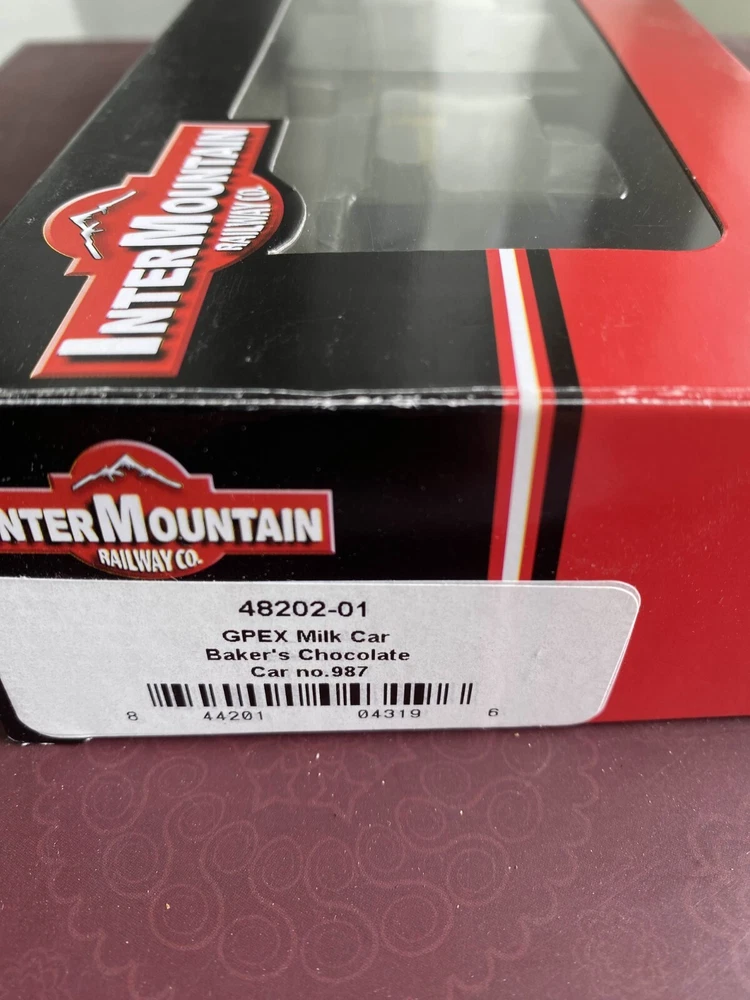 Intermountain HO Scale GPEX Milk Car Bakers Chocolate #987 48202-01 Box shows some wear. Car is New.