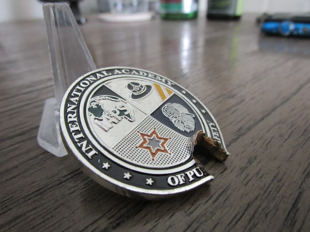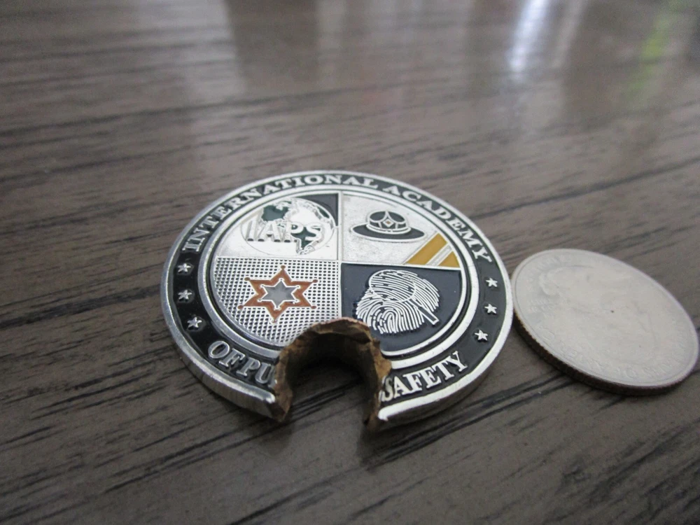 IAPS International Academy Of Public Safety With Actual Bullet Hole Challenge Coin #843S Measures approx. 1 3/4" inches Your purchase will be packaged carefully and shipped within one business day. It will be shipped USPS first class postage with the tracking information sent to you by eBay. ## COIN STAND NOT INCLUDED ## *** We combine shipping. Please add any additional items to your cart. The shipping discounts will automatically calculate at checkout. Items must be added to your cart and not purchased separately because the discounts can no longer be applied.