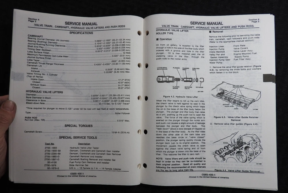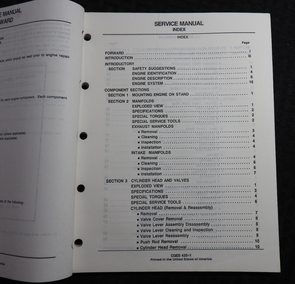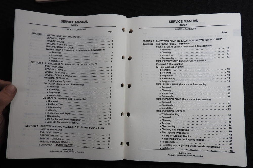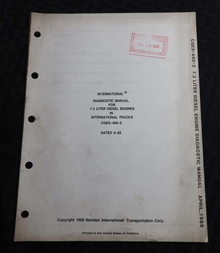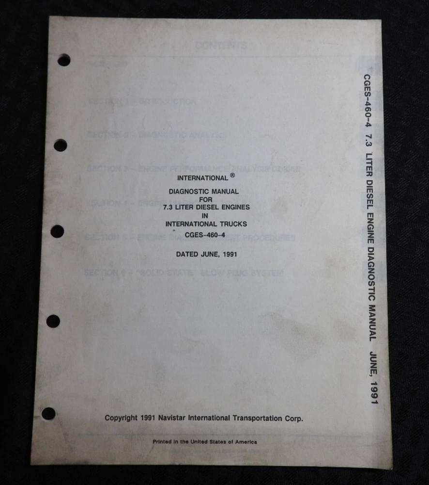 This is an ORIGINAL Navistar International Model 7.3 Liter Diesel Engines Service Manual set (late 1980's printing, CGES435-1 CGES460-2 CGES460-4 CGES460-3). This manual set contains super illustrations as well as having in-depth service, repair, diagnostic testing and info and specification information for these tough diesel truck/tractor engines. Manuals are missing the front paper covers (please see pics) but all books are solid and complete. Manuals are complete and intact with NO loose or missing pages (please see pics). This manual set contains over 400 pages and is in VERY GOOD overall condition. Books come in a nice binder. FREE S & H. Thanks for viewing.............Triple K