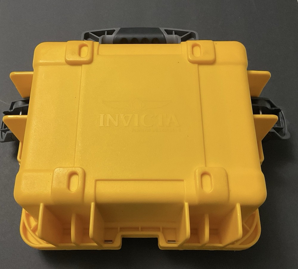The Invicta 3 Slot Watch Case in Yellow is a stylish and practical accessory for storing your watches. Made of durable plastic, this watch case features a gray and yellow color scheme that adds a touch of style to any collection. With a capacity for 1-3 watches, it is perfect for organizing your favorite timepieces. This case is pre owned and in very good condition.