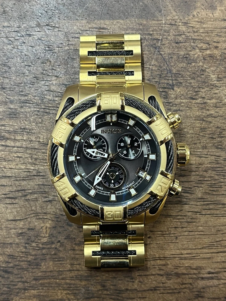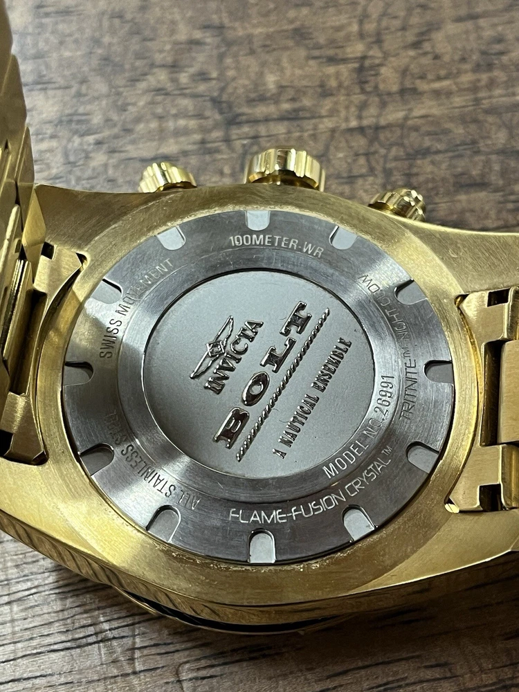 This watch comes in great condition with minimal signs of wear. It features a quartz movement, water resistance up to 100 meters, and a case size of 56mm. The analog display adds a classic touch to the watch, making it a perfect addition to any collection. The reference number for this watch is 26991.