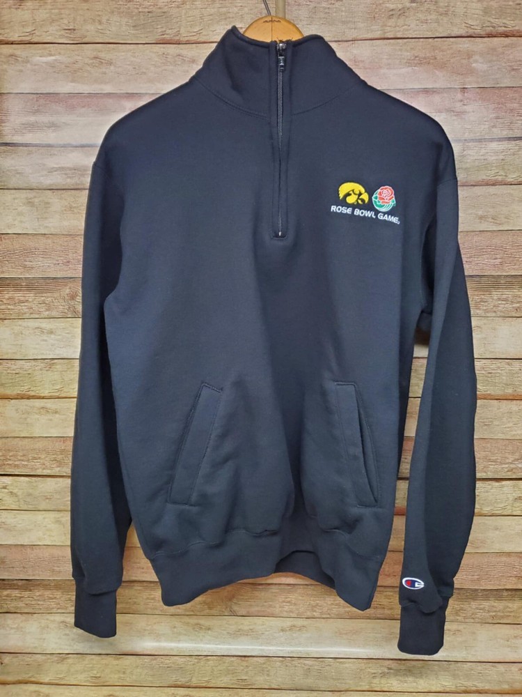 Show your Iowa Hawkeyes pride with this officially licensed 1/4 Zip Sweatshirt. Made from eco-fleece material, this black sweater is perfect for any football fan. Featuring the team's logo and name, this sweatshirt is a must-have for any regular season game. It's designed for men, with a size of M and made in Honduras. This sweater is perfect for any college-NCAA fan and is a great addition to your sports memorabilia collection. Get ready to cheer on the Iowa Hawkeyes in style!