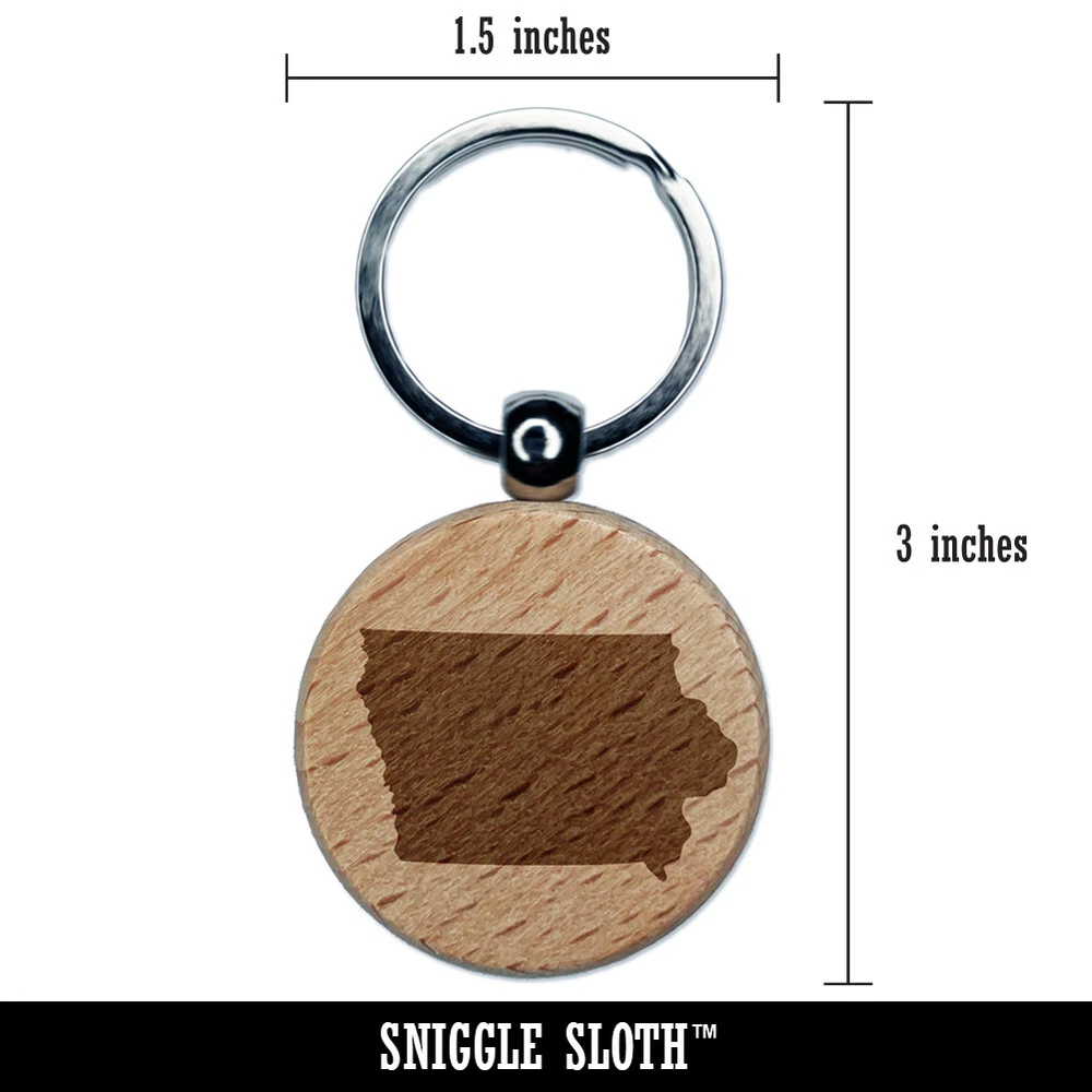 Iowa State Silhouette Engraved Wood Round Keychain Tag Charm