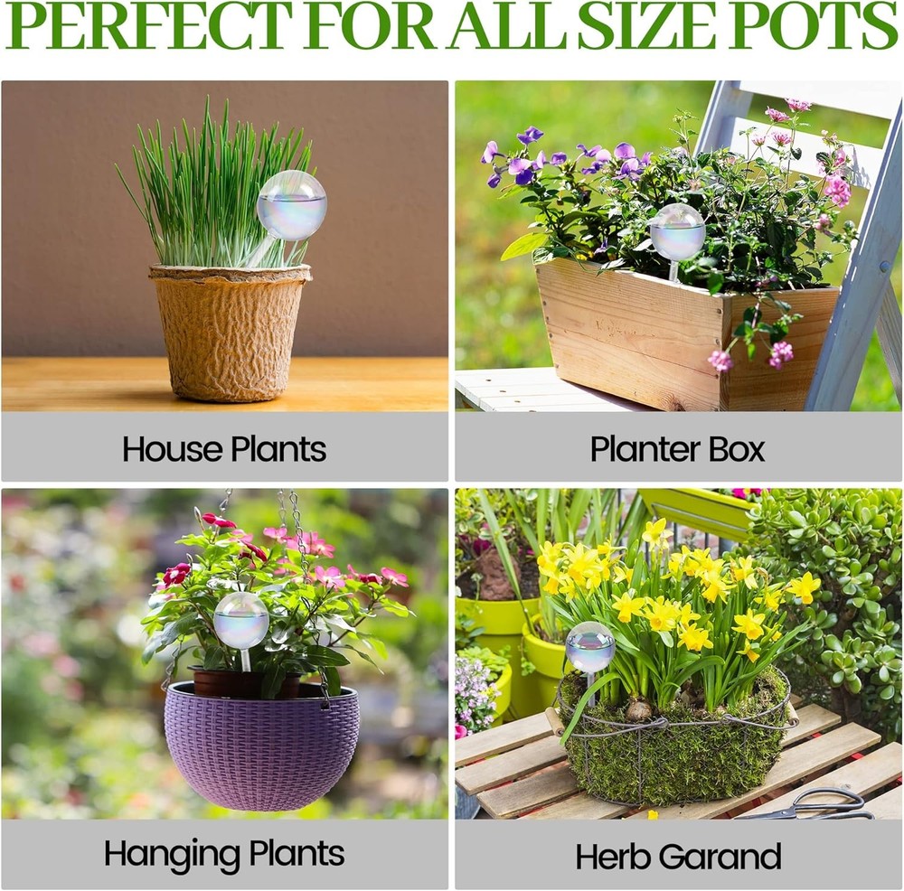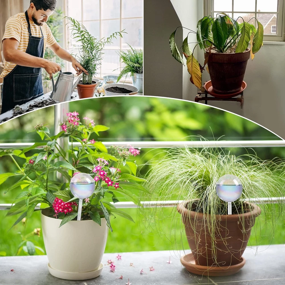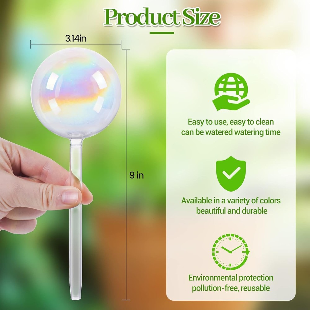 These self-watering globes are a game-changer! The iridescent rainbow colors add a gorgeous pop to my plants while keeping them hydrated for days. Perfect for indoor and outdoor use, they're sturdy, stylish, and so easy to fill. No more worrying about over or under-watering—just set them and forget them. My plants are thriving, and they look amazing doing it!