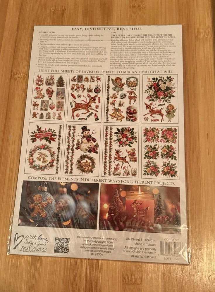 The Iron Orchard Designs IOD Christmas Transfer Kitschy Christmas Transfer is a retired product featuring a festive Christmas theme. This transfer by Iron Orchid Designs adds a whimsical and nostalgic touch to furniture, decor, and more with its kitschy Christmas designs. Perfect for holiday enthusiasts looking to add a unique and charming touch to their home decor, this product is a fun and creative way to celebrate the festive season. The transfer is new, never opened Iron Orchid Designs (IOD) Christmas transfers. These are perfect for your holiday projects! Iron Orchid Designs (IOD) Christmas transfers. These are retired and hard to find—perfect for your holiday projects!