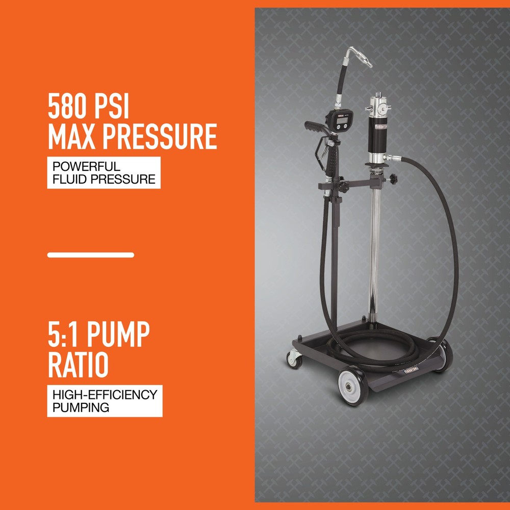 The Ironton Air-Operated 5:1 Oil Pump Kit with Cart is a mobile oil dispensing unit for 13–16-gallon drums. It includes a digital oil control valve and meter, a discharge hose, and a sturdy trolley for easy mobility. Designed for dispensing medium- and high-viscosity oils up to SAE 240, this pump operates at 70–115 PSI with a flow rate of 3.7 GPM, making it ideal for mobile installations or fixed systems at long distances. Ironton Air-Operated 5:1 Oil Pump Kit with Cart, 3.7 GPM, 13–16-Gal. Drum Capacity Northern Tool Item# 58313 Item Weight: 45.0000 lb(s) Manufacturer: Ironton MPN: 1700322 Warranty: 3 month limited warranty. Product Summary: The Ironton Air-Operated 5:1 Oil Pump Kit with Cart is a mobile oil dispensing unit for 13–16-gallon drums. It includes a digital oil control valve and meter, a discharge hose, and a sturdy trolley for easy mobility. Designed for dispensing medium- and high-viscosity oils up to SAE 240, this pump operates at 70–115 PSI with a flow rate of 3.7 GPM, making it ideal for mobile installations or fixed systems at long distances. Payment Instructions You can pay us securely through eBay. All orders will contain an invoice/receipt. IMPORTANT: We will not honor requests to remove invoices or receipts from packages. No exceptions ON U.S. PURCHASES, Northern currently collects sales tax on purchases shipped to all states except: Alaska, Delaware, Montana, New Hampshire, Oregon Shipping Information This product will be shipped by Parcel. Parcel Shipping: Ground Shipped items must be sent to a physical address and cannot be sent to PO boxes. If a PO box address is submitted without a physical address it may delay your order. We cannot ship to APO/FPO boxes. Please note that we do not ship items on weekends or holidays. More information on shipping and handling times can be found on our Store Policies Page . Customer Care We want you to be satisfied with your purchase; please notify us by email if you have any concerns. Before you send an email message, please check our Help Section . We may already have an answer to your question! We are available to answer your email questions Monday through Friday from 8am - 3pm CST, excluding holidays. If your email is sent on a weekend, holiday or after business hours, we will respond to you on the following business day. Returns may be accepted on most items within 30 days of receipt of the item. All returns require authorization from us. Some returns are charged a 15% restocking fee. Please click the Shipping and Payments tab on this item for specific return information and full details. About Our Products Product Warranty: 3 month limited warranty Warranty information and contact details can be found on our Store Policies Page. We are working hard to ensure that the information provided on the eBay product advertisements is accurate and up-to-date. We reserve the right to correct ad errors and/or omissions. Pricing and availability is subject to change without notice. Yes Returns + Shipping FAQ Sales Tax Info Newsletter Sign-Up Pressure Washers Generators Auto Repair Air Tools Fuel ALL Ironton Air-Operated 5:1 Oil Pump Kit with Cart, 3.7 GPM, 13–16-Gal. Drum Capacity Northern Tool Item# 58313 Item Weight: 45.0000 lb(s) Manufacturer: Ironton MPN: 1700322 Warranty: 3 month limited warranty. Product Summary: The Ironton Air-Operated 5:1 Oil Pump Kit with Cart is a mobile oil dispensing unit for 13–16-gallon drums. It includes a digital oil control valve and meter, a discharge hose, and a sturdy trolley for easy mobility. Designed for dispensing medium- and high-viscosity oils up to SAE 240, this pump operates at 70–115 PSI with a flow rate of 3.7 GPM, making it ideal for mobile installations or fixed systems at long distances. Payment Instructions You can pay us securely through eBay. All orders will contain an invoice/receipt. IMPORTANT: We will not honor requests to remove invoices or receipts from packages. No exceptions ON U.S. PURCHASES, Northern currently collects sales tax on purchases shipped to all states except: Alaska, Delaware, Montana, New Hampshire, Oregon Shipping Information This product will be shipped by Parcel. Parcel Shipping: Ground Shipped items must be sent to a physical address and cannot be sent to PO boxes. If a PO box address is submitted without a physical address it may delay your order. We cannot ship to APO/FPO boxes. Please note that we do not ship items on weekends or holidays. More information on shipping and handling times can be found on our Store Policies Page . Customer Care We want you to be satisfied with your purchase; please notify us by email if you have any concerns. Before you send an email message, please check our Help Section . We may already have an answer to your question! We are available to answer your email questions Monday through Friday from 8 - 3 CST, excluding holidays. If your email is sent on a weekend, holiday or after business hours, we will respond to you on the following business day. Returns may be accepted on most items within 30 days of receipt of the item. All returns require authorization from us. Some returns are charged a 15% restocking fee. Please click the Shipping and Payments tab on this item for specific return information and full details. About Our Products Product Warranty: 3 month limited warranty Warranty information and contact details can be found on our Store Policies Page. We are working hard to ensure that the information provided on the eBay product advertisements is accurate and up-to-date. We reserve the right to correct ad errors and/or omissions. Pricing and availability is subject to change without notice. Yes