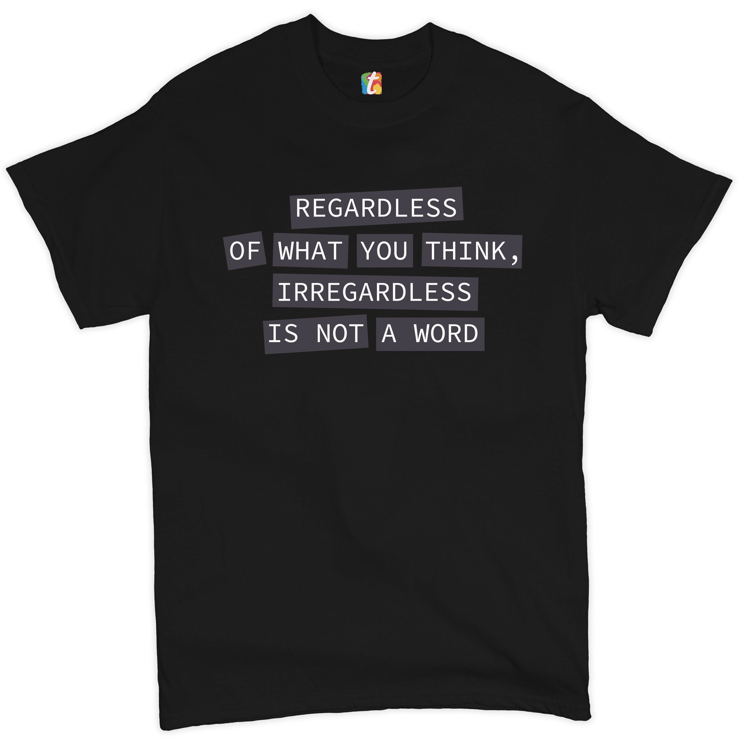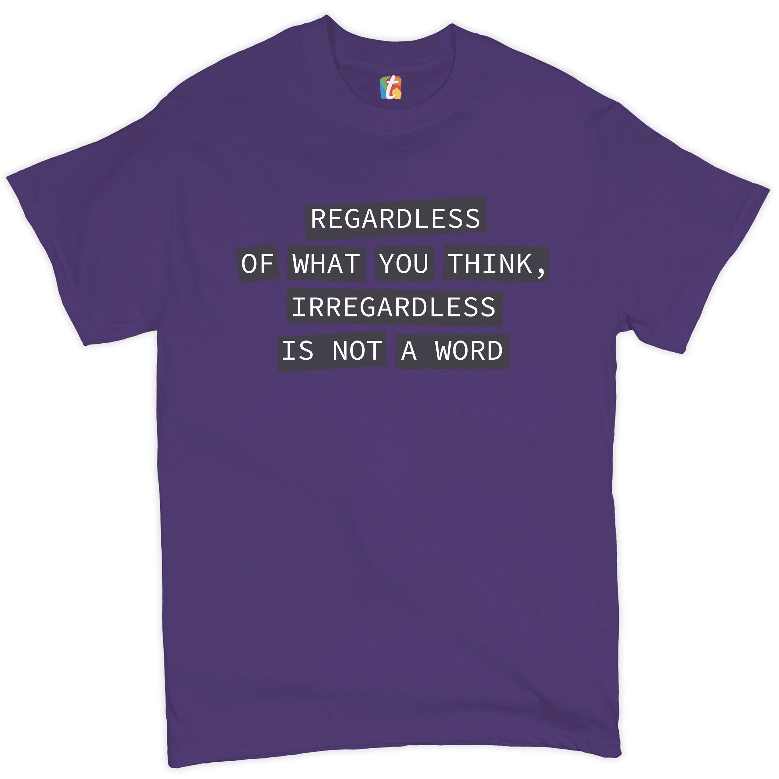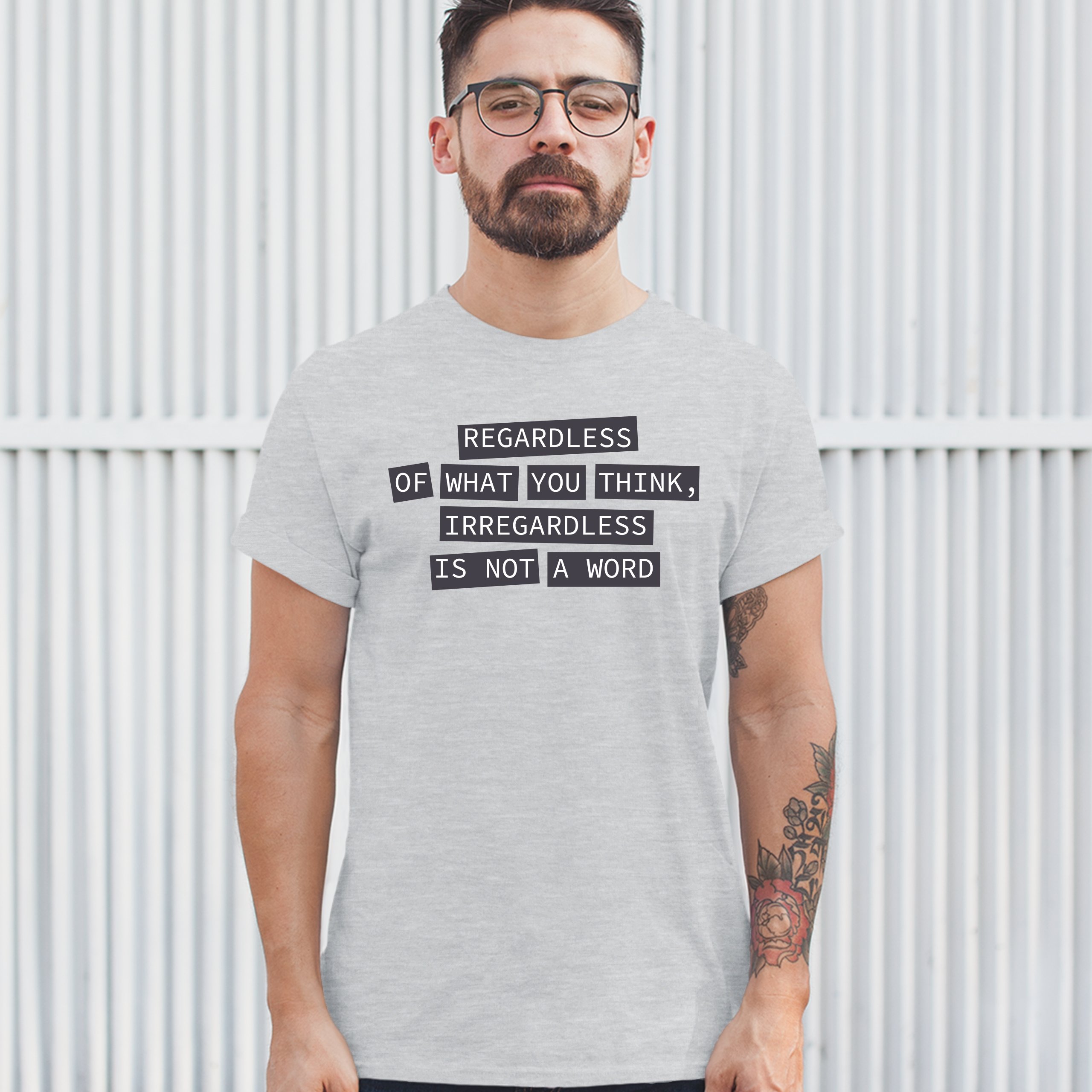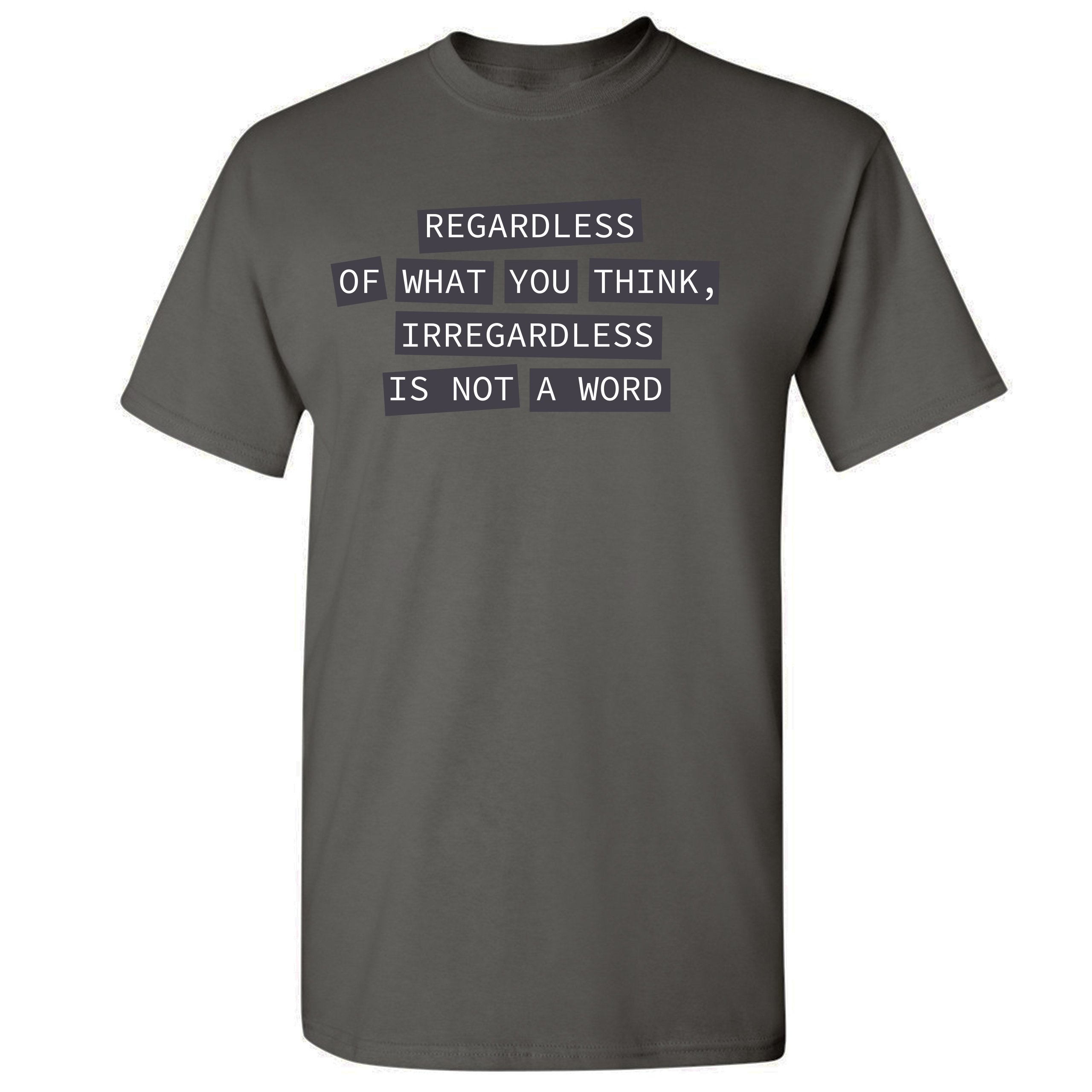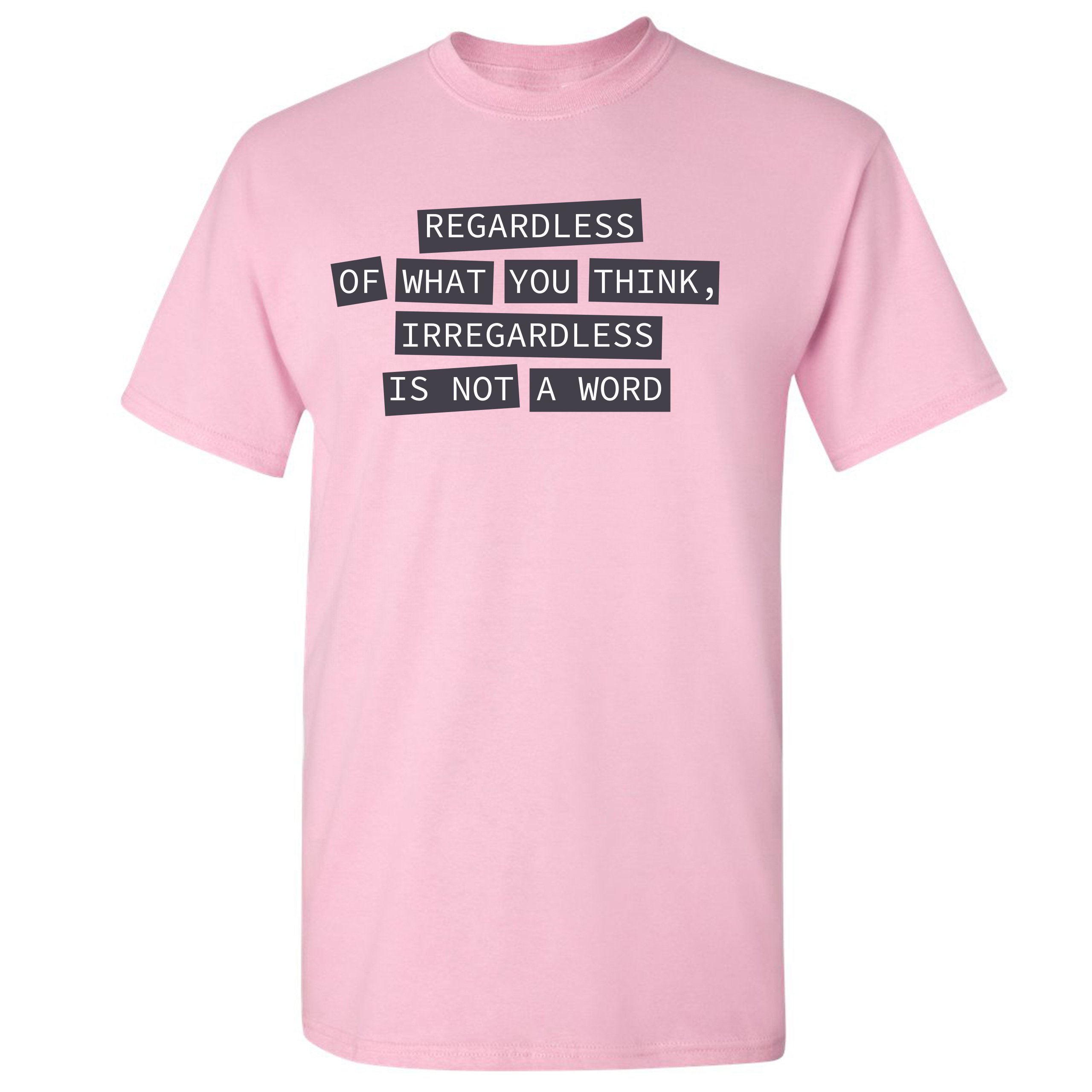 Fast & Free Shipping HIGH QUALITY 1 DAY HANDLING Irregardless Is Not a Word T-shirt Grammar Police Funny Men's Tee ITEM DESCRIPTION Brand New Men's Short Sleeve Tee High Quality Print Classic Fit 100% Pre-Shrunk Cotton Sport Grey : 90/10 cotton/polyester Ash Grey: 99/1 cotton/polyester Printed in the USA Also Available In WASHING INSTRUCTIONS: turn inside out and wash in cold water on a delicate cycle of your washing machine. Try to avoid dryer or set it on low heat. To minimize shrinkage we recommend to air dry. PLEASE NOTE: The print may appear smaller on larger sizes. Due to the many variations in monitors and browsers, actual colors may vary slightly from what appears online. PAYMENTS: We accept the following payment methods: Paypal, All Major Credit Cards (processed through eBay's Payment System, no account necessary). We do not ship package until the payment is cleared. if you have a problem with payment, please contact us. SHIPPING: We offer FREE domestic shipping within the continental US! Your order will be shipped within 1 business day of receiving payment (Monday-Friday) Shipping services we offer: Domestic Orders: USPS First Class Mail, Priority Mail and Express options. International Orders: USPS First Class Mail, Priority Mail and Express options. We are NOT responsible for any foreign customs duties or taxes. We do not refund postage for unclaimed, undeliverable or refused packages. If a package is returned as undeliverable unclaimed or refused, it is the customers responsibility to follow up with the postal carrier. In the very unlikely event that your item is lost or damaged during post, then WE are responsible and will issue either a full refund or replacement. RETURNS: If you are not completely satisfied with your purchase, you can return the item within 30 days and get a full refund if the item is defective, damaged, or an error is made on our end. If you would like to exchange the item, please contact us through eBay Messages. All returns must be initiated through eBay Returns System. If 30 days have gone by since your purchase, unfortunately we can’t offer you a refund or exchange. And returned item can be shipped back to customer at customers expense, or will be disposed within 7 days. To be eligible for a return, your item must be unused, unwashed and in the same condition that you received it. Custom made items (including custom images, writing or other customization requested by customer) are not eligible for a refund or exchange. Once your return is received and inspected, we will notify you of the approval or rejection of your refund. If approved, your refund will be processed, and a credit will automatically be applied to original method of payment, within 3-4 days. All payments and refunds are processed by eBay's Payment system. If a refund has been issued, but you do not see the funds in your account within 3-4 days, please contact eBay Support. You will be responsible for paying for your own shipping costs for returning your item. Shipping costs are non-refundable. if you receive a refund, the cost of return shipping will be deducted from your refund. Depending on where you live, the time it may take for your exchanged product to reach you, may vary. You should consider using a trackable shipping service or purchasing shipping insurance. We don’t guarantee that we will receive your returned item. Visit our ebay store to see more amazing items T-Shirts Sweatshirts Tank Tops