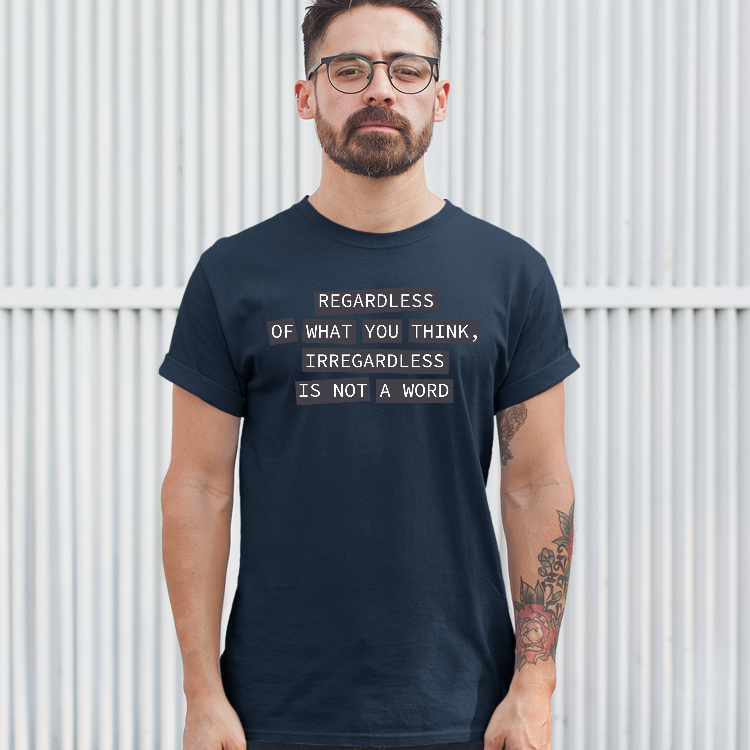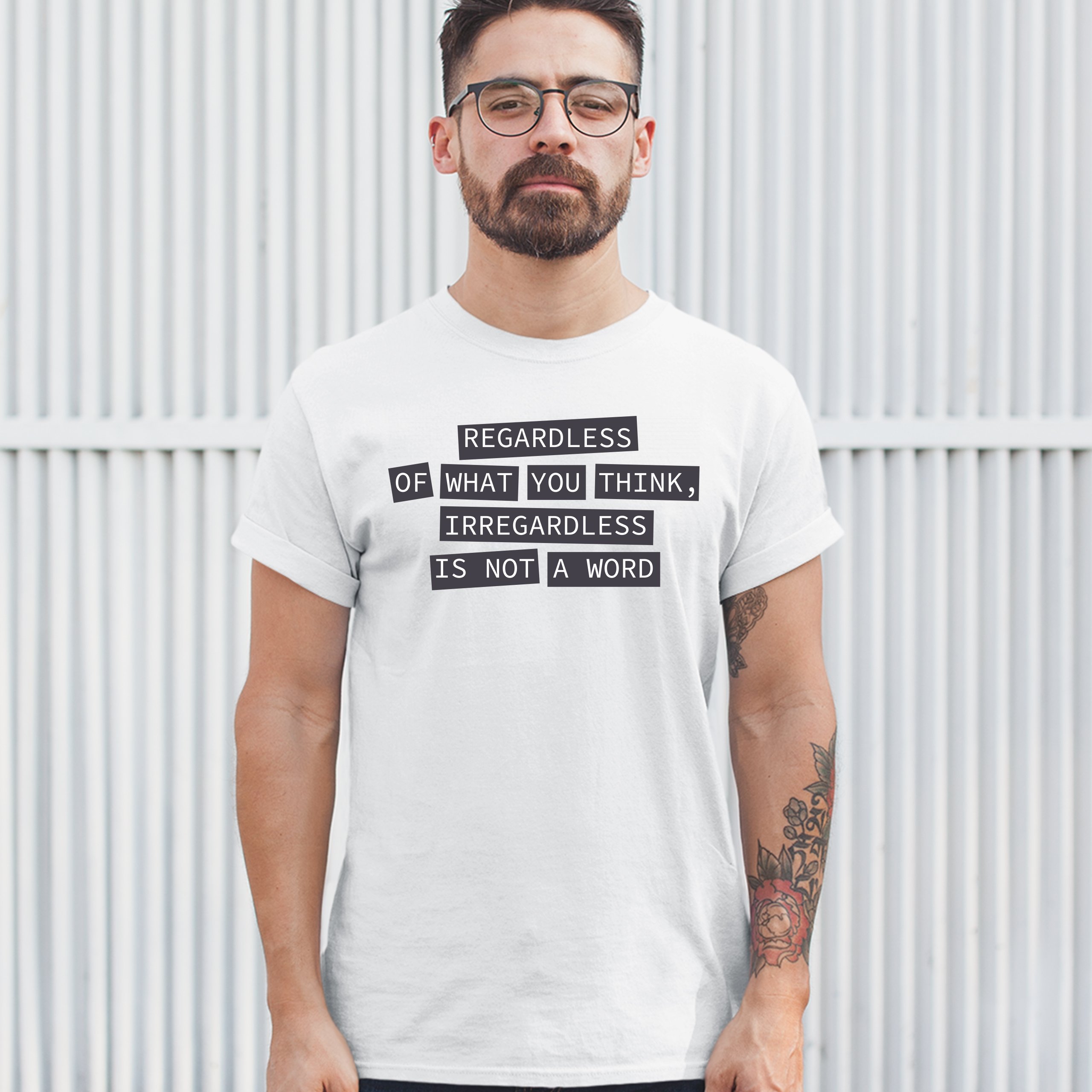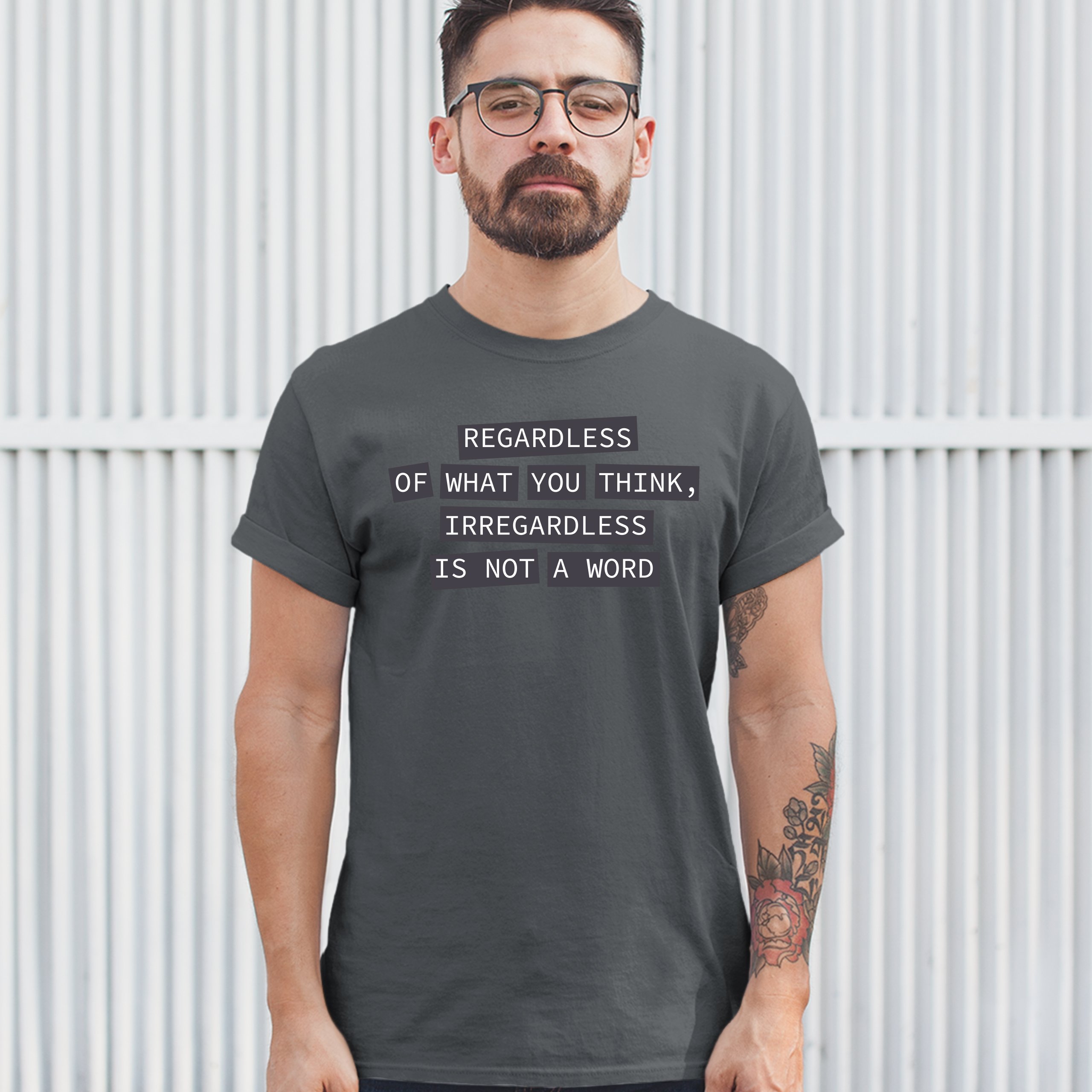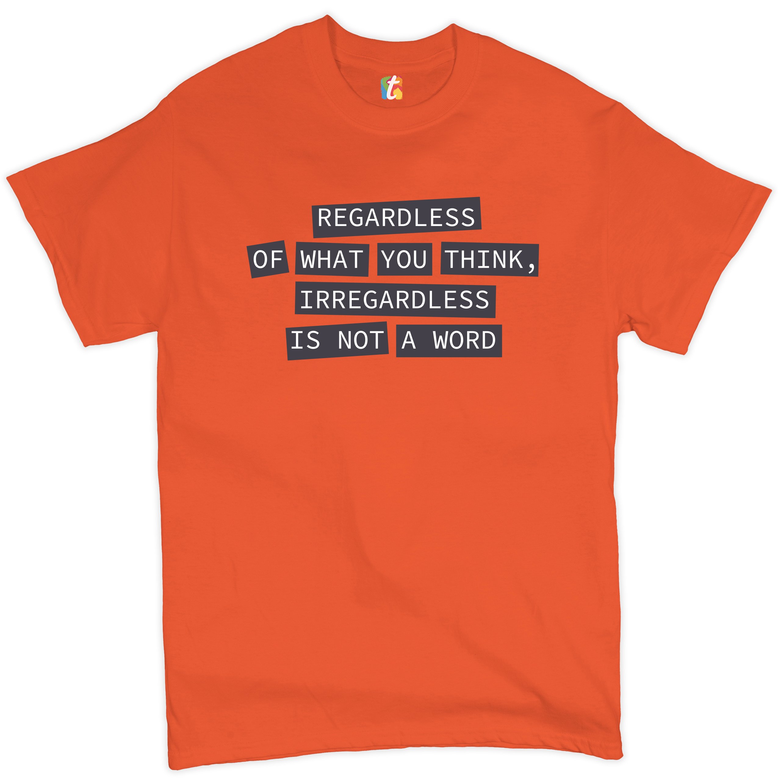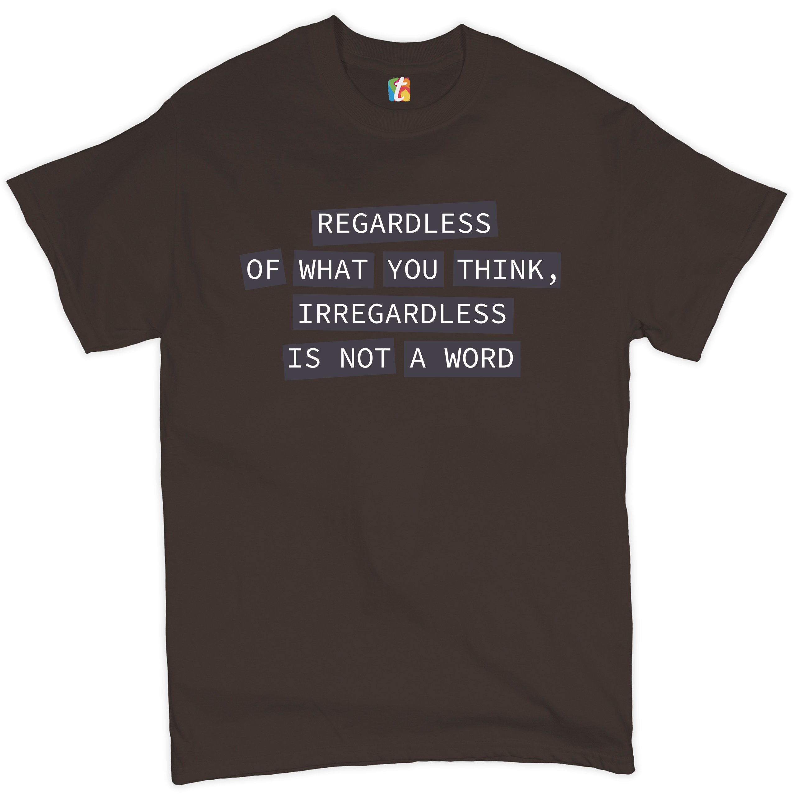 Fast & Free Shipping HIGH QUALITY 1 DAY HANDLING Irregardless Is Not a Word T-shirt Grammar Police Funny Men's Tee ITEM DESCRIPTION Brand New Men's Short Sleeve Tee High Quality Print Classic Fit 100% Pre-Shrunk Cotton Sport Grey : 90/10 cotton/polyester Ash Grey: 99/1 cotton/polyester Printed in the USA Also Available In WASHING INSTRUCTIONS: turn inside out and wash in cold water on a delicate cycle of your washing machine. Try to avoid dryer or set it on low heat. To minimize shrinkage we recommend to air dry. PLEASE NOTE: The print may appear smaller on larger sizes. Due to the many variations in monitors and browsers, actual colors may vary slightly from what appears online. PAYMENTS: We accept the following payment methods: Paypal, All Major Credit Cards (processed through eBay's Payment System, no account necessary). We do not ship package until the payment is cleared. if you have a problem with payment, please contact us. SHIPPING: We offer FREE domestic shipping within the continental US! Your order will be shipped within 1 business day of receiving payment (Monday-Friday) Shipping services we offer: Domestic Orders: USPS First Class Mail, Priority Mail and Express options. International Orders: USPS First Class Mail, Priority Mail and Express options. We are NOT responsible for any foreign customs duties or taxes. We do not refund postage for unclaimed, undeliverable or refused packages. If a package is returned as undeliverable unclaimed or refused, it is the customers responsibility to follow up with the postal carrier. In the very unlikely event that your item is lost or damaged during post, then WE are responsible and will issue either a full refund or replacement. RETURNS: If you are not completely satisfied with your purchase, you can return the item within 30 days and get a full refund if the item is defective, damaged, or an error is made on our end. If you would like to exchange the item, please contact us through eBay Messages. All returns must be initiated through eBay Returns System. If 30 days have gone by since your purchase, unfortunately we can’t offer you a refund or exchange. And returned item can be shipped back to customer at customers expense, or will be disposed within 7 days. To be eligible for a return, your item must be unused, unwashed and in the same condition that you received it. Custom made items (including custom images, writing or other customization requested by customer) are not eligible for a refund or exchange. Once your return is received and inspected, we will notify you of the approval or rejection of your refund. If approved, your refund will be processed, and a credit will automatically be applied to original method of payment, within 3-4 days. All payments and refunds are processed by eBay's Payment system. If a refund has been issued, but you do not see the funds in your account within 3-4 days, please contact eBay Support. You will be responsible for paying for your own shipping costs for returning your item. Shipping costs are non-refundable. if you receive a refund, the cost of return shipping will be deducted from your refund. Depending on where you live, the time it may take for your exchanged product to reach you, may vary. You should consider using a trackable shipping service or purchasing shipping insurance. We don’t guarantee that we will receive your returned item. Visit our ebay store to see more amazing items T-Shirts Sweatshirts Tank Tops