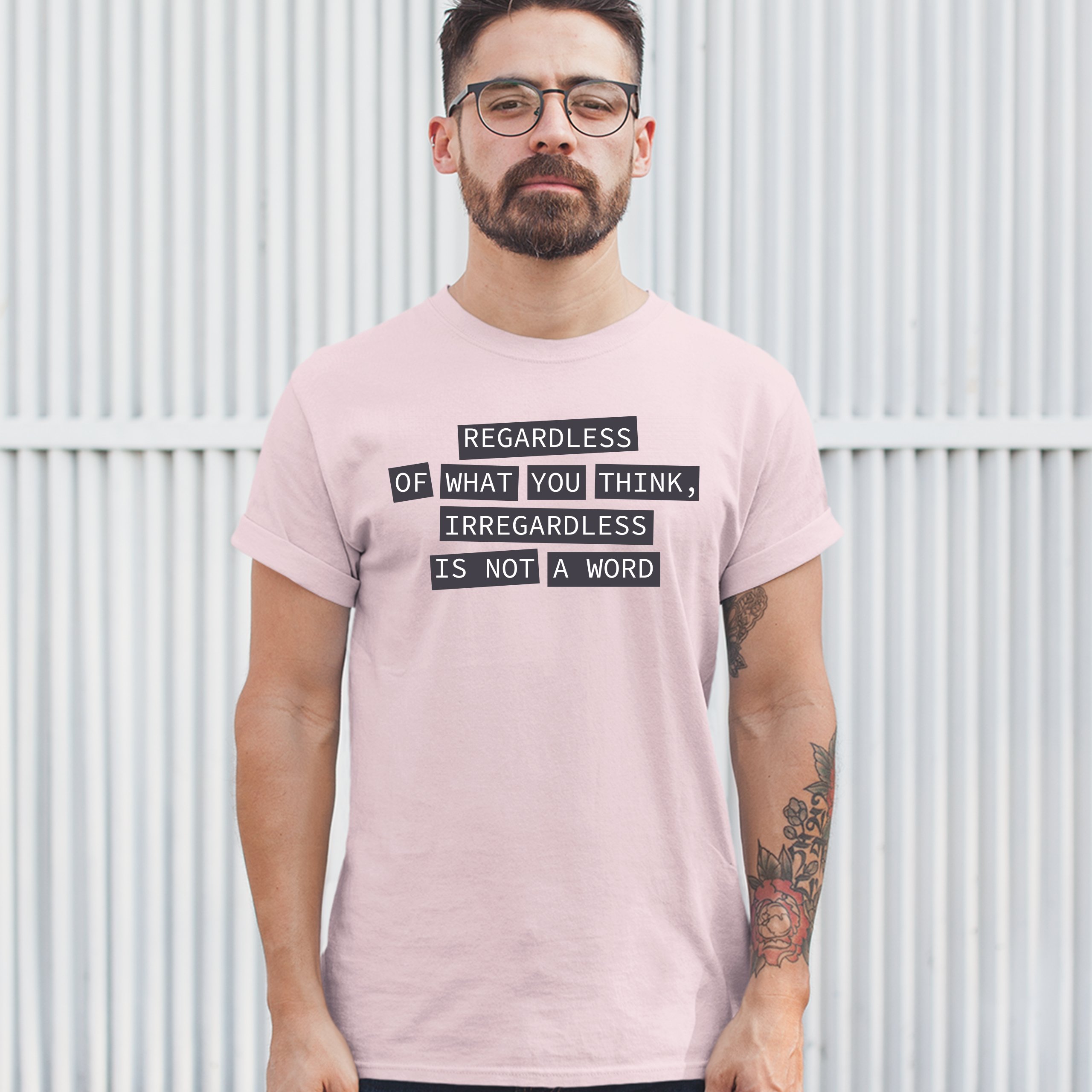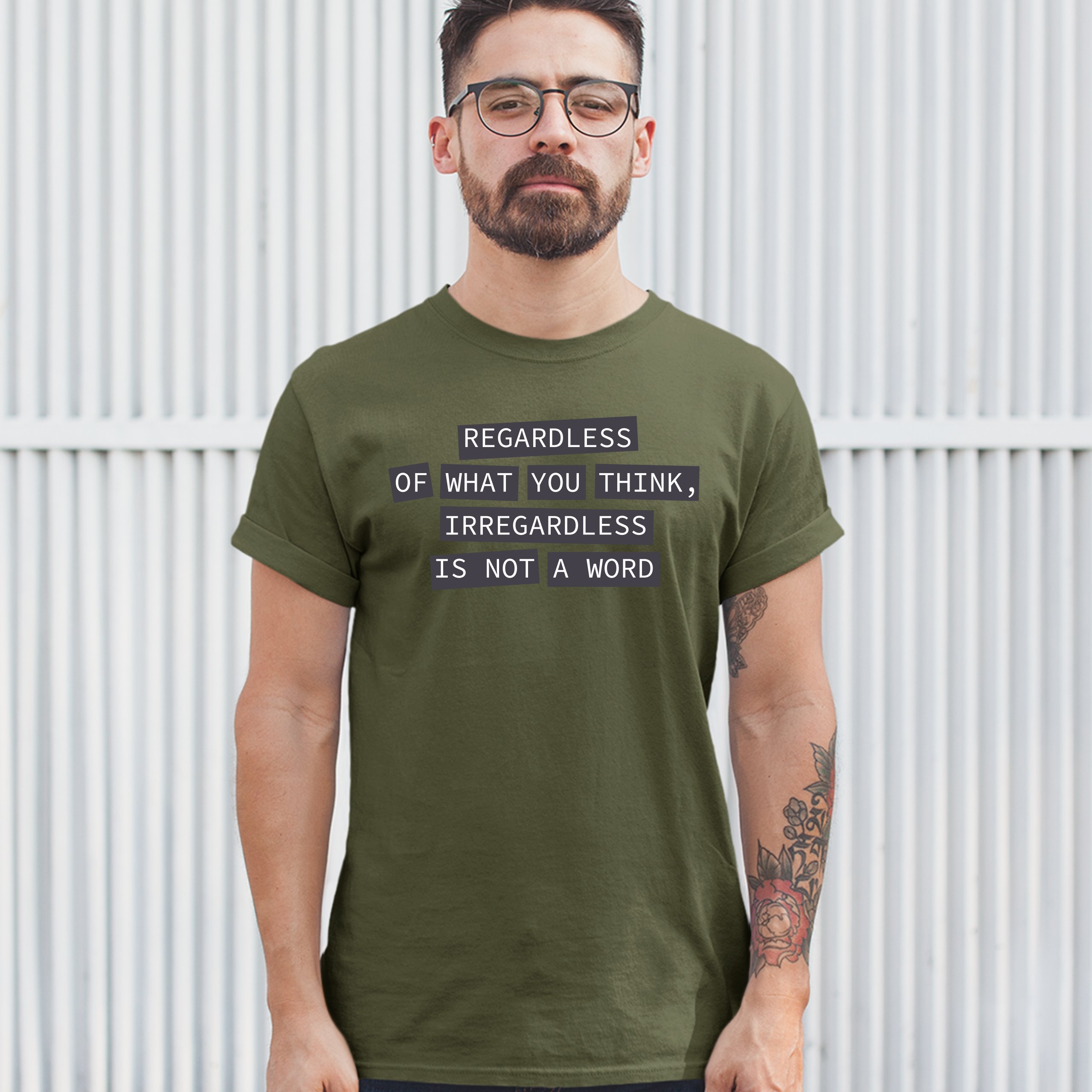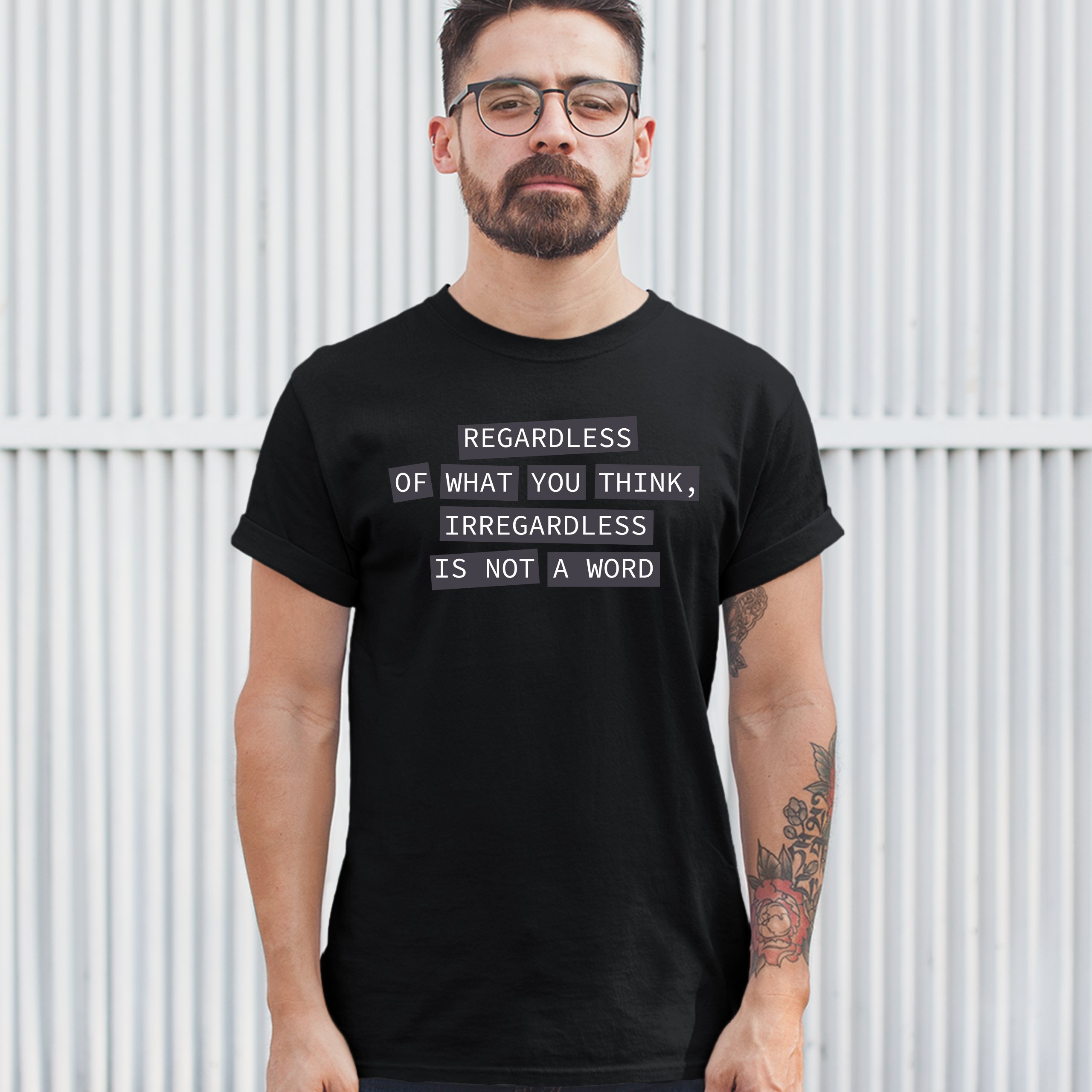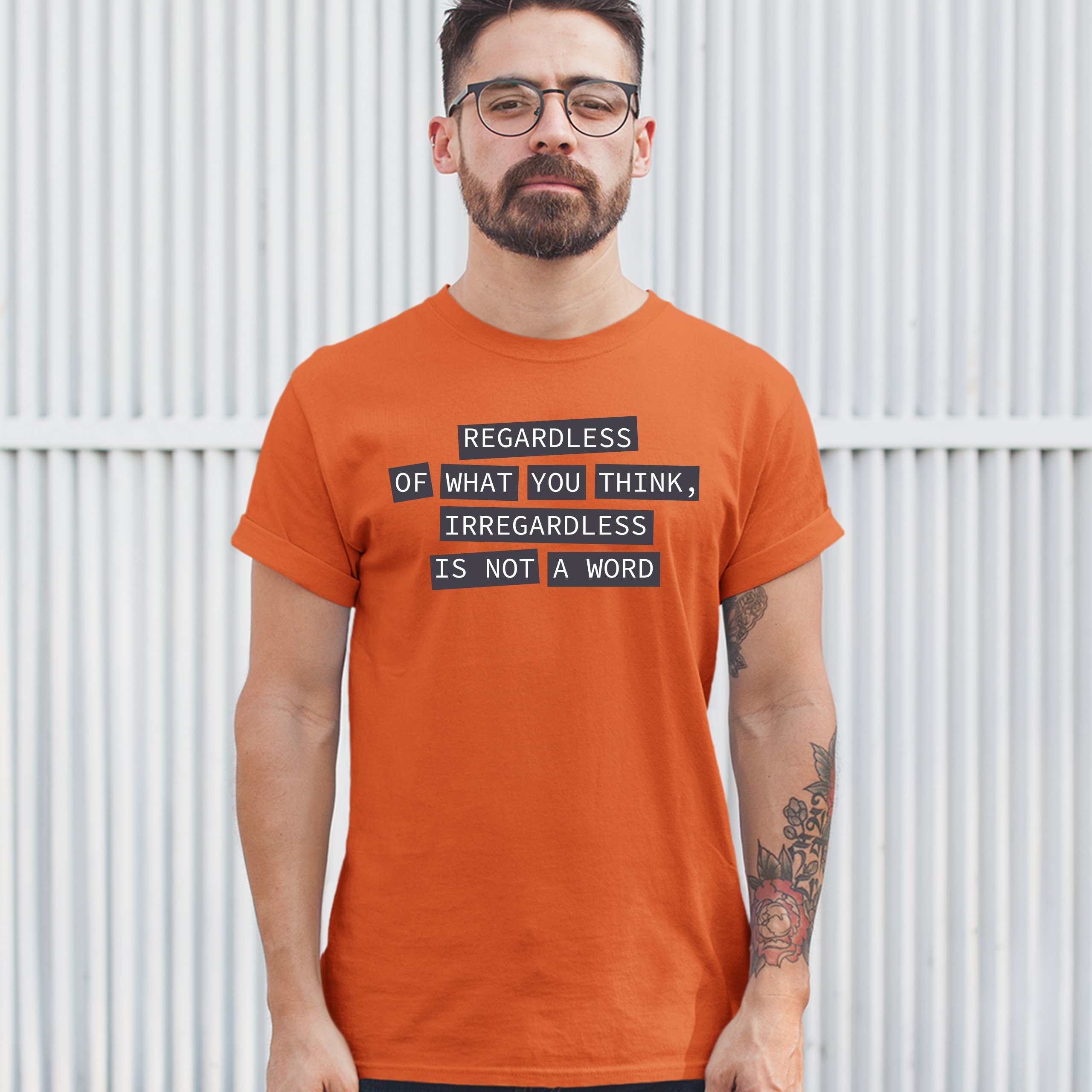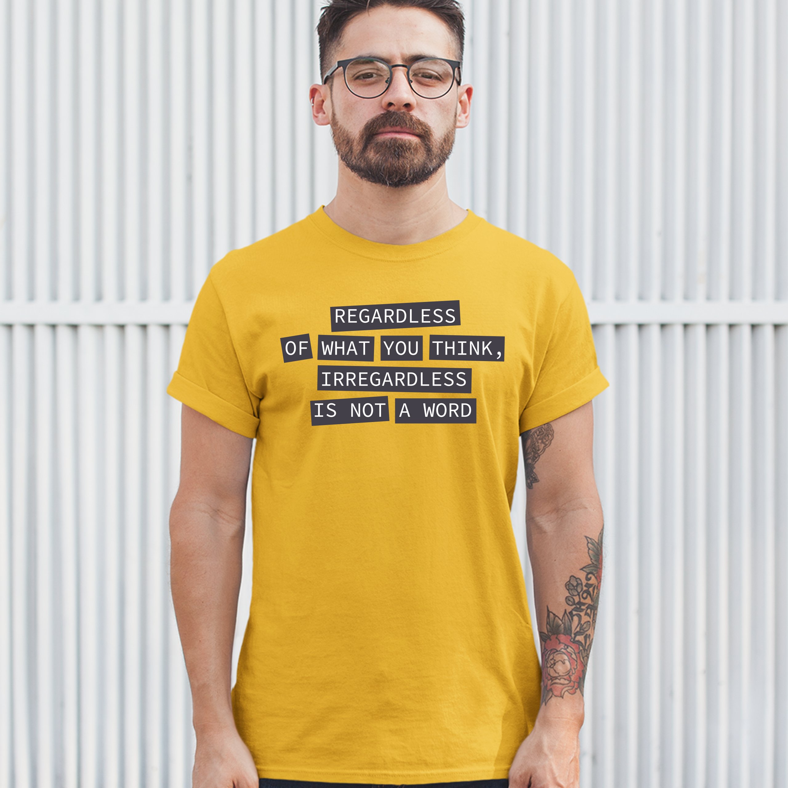 Fast & Free Shipping HIGH QUALITY 1 DAY HANDLING Irregardless Is Not a Word T-shirt Grammar Police Funny Men's Tee ITEM DESCRIPTION Brand New Men's Short Sleeve Tee High Quality Print Classic Fit 100% Pre-Shrunk Cotton Sport Grey : 90/10 cotton/polyester Ash Grey: 99/1 cotton/polyester Printed in the USA Also Available In WASHING INSTRUCTIONS: turn inside out and wash in cold water on a delicate cycle of your washing machine. Try to avoid dryer or set it on low heat. To minimize shrinkage we recommend to air dry. PLEASE NOTE: The print may appear smaller on larger sizes. Due to the many variations in monitors and browsers, actual colors may vary slightly from what appears online. PAYMENTS: We accept the following payment methods: Paypal, All Major Credit Cards (processed through eBay's Payment System, no account necessary). We do not ship package until the payment is cleared. if you have a problem with payment, please contact us. SHIPPING: We offer FREE domestic shipping within the continental US! Your order will be shipped within 1 business day of receiving payment (Monday-Friday) Shipping services we offer: Domestic Orders: USPS First Class Mail, Priority Mail and Express options. International Orders: USPS First Class Mail, Priority Mail and Express options. We are NOT responsible for any foreign customs duties or taxes. We do not refund postage for unclaimed, undeliverable or refused packages. If a package is returned as undeliverable unclaimed or refused, it is the customers responsibility to follow up with the postal carrier. In the very unlikely event that your item is lost or damaged during post, then WE are responsible and will issue either a full refund or replacement. RETURNS: If you are not completely satisfied with your purchase, you can return the item within 30 days and get a full refund if the item is defective, damaged, or an error is made on our end. If you would like to exchange the item, please contact us through eBay Messages. All returns must be initiated through eBay Returns System. If 30 days have gone by since your purchase, unfortunately we can’t offer you a refund or exchange. And returned item can be shipped back to customer at customers expense, or will be disposed within 7 days. To be eligible for a return, your item must be unused, unwashed and in the same condition that you received it. Custom made items (including custom images, writing or other customization requested by customer) are not eligible for a refund or exchange. Once your return is received and inspected, we will notify you of the approval or rejection of your refund. If approved, your refund will be processed, and a credit will automatically be applied to original method of payment, within 3-4 days. All payments and refunds are processed by eBay's Payment system. If a refund has been issued, but you do not see the funds in your account within 3-4 days, please contact eBay Support. You will be responsible for paying for your own shipping costs for returning your item. Shipping costs are non-refundable. if you receive a refund, the cost of return shipping will be deducted from your refund. Depending on where you live, the time it may take for your exchanged product to reach you, may vary. You should consider using a trackable shipping service or purchasing shipping insurance. We don’t guarantee that we will receive your returned item. Visit our ebay store to see more amazing items T-Shirts Sweatshirts Tank Tops