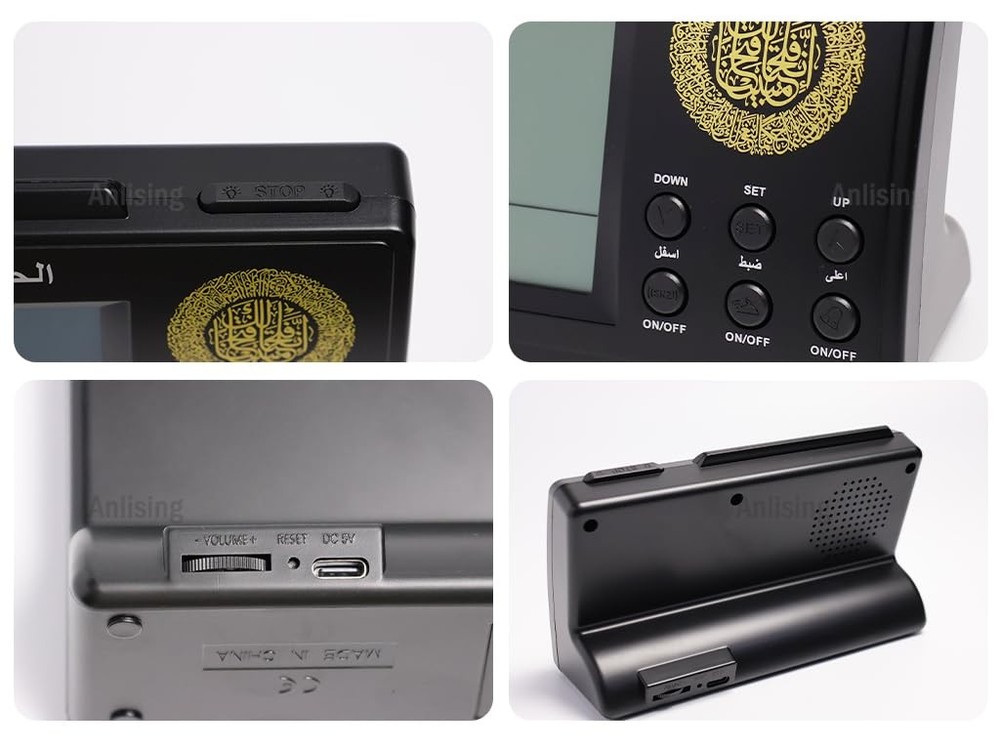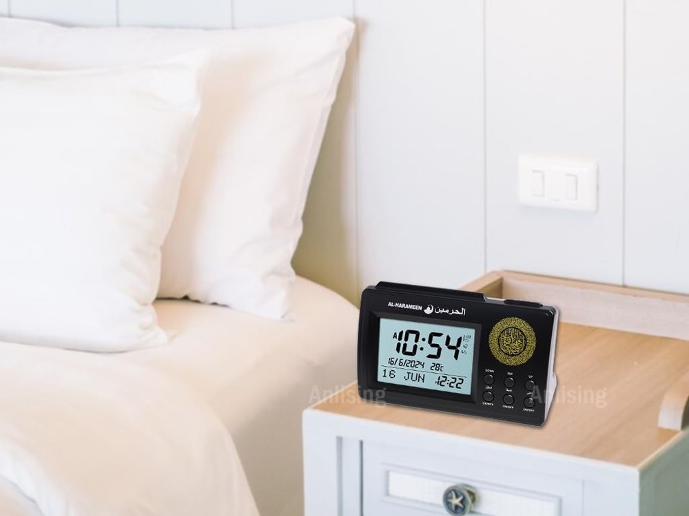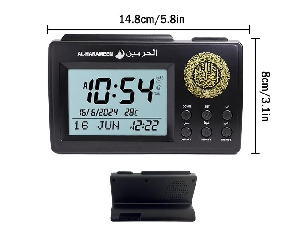 This Azan Alarm Clock is a must-have for any Muslim household! It’s incredibly accurate, displaying both Hijri and Gregorian dates, plus world time. The 1500-city prayer times ensure you never miss Salah, and the Makkah background music adds a spiritual touch. The customizable alarms, including one-time and daily reminders, make it super convenient. Sleek design, easy to use, and packed with features—highly recommend for keeping track of prayers and time!