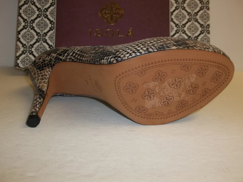 SKU: 16E Type: Heel Pattern: Animal Print Color: Sand Brand: Isola US Shoe Size: 6.5 Heel Height: High (3 in. and Up) Shoe Width: Medium (B, M) UPC: 886553550120 gtin13: 886553550120 Department: Women Style: Pumps, Classics Upper Material: Leather
