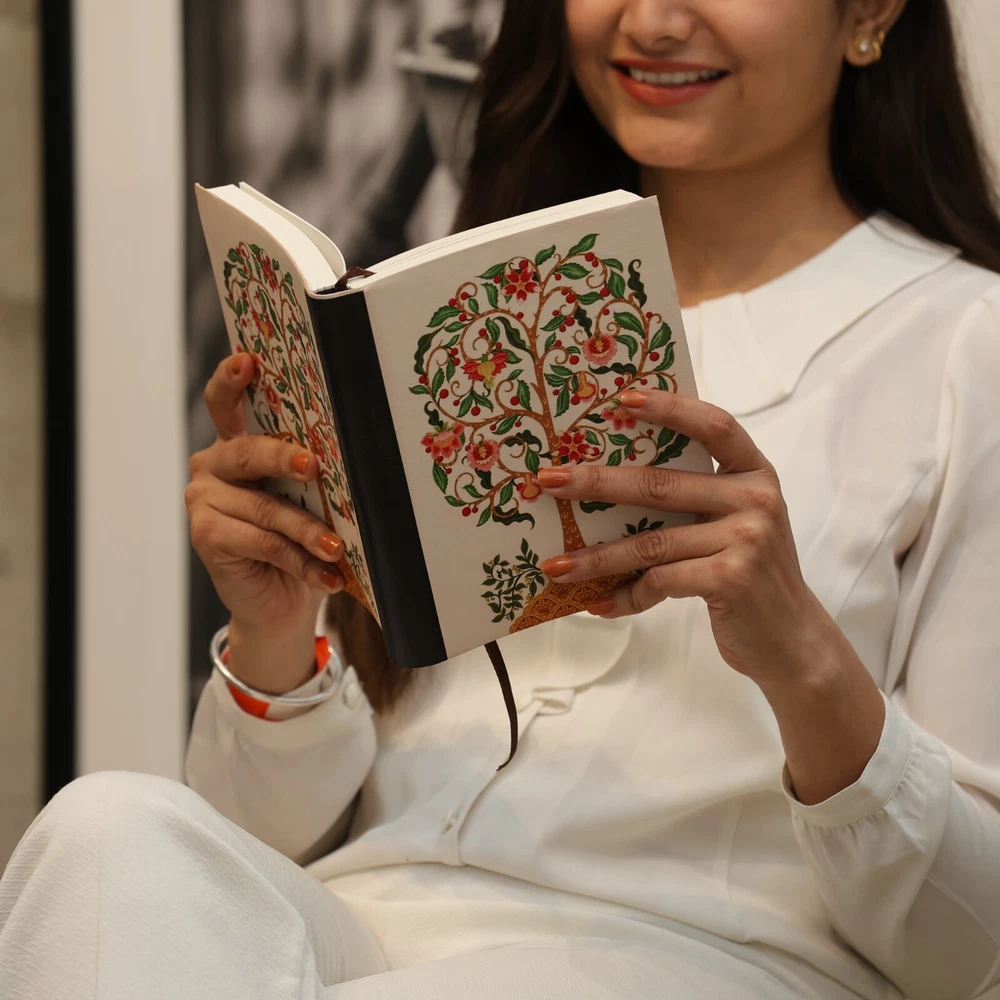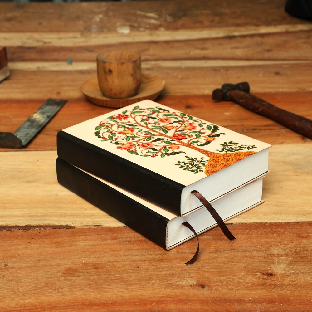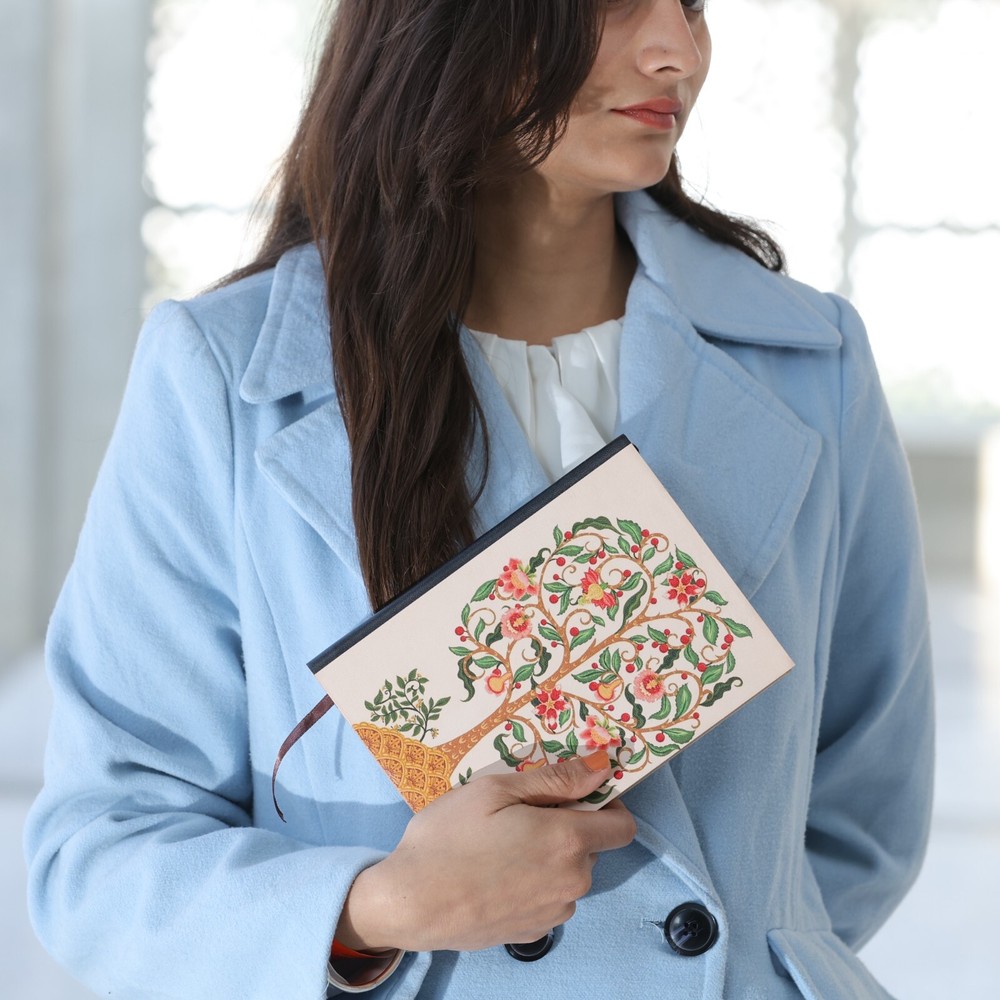 Features to Fall in Love With: Exquisite Genuine Leather Cover: The soft leather cover is adorned with Timeless Symbolism The Jacobean Tree of Life represents creation and the interconnectedness of all things, making it a meaningful gift. Artisanal Craftsmanship: Handcrafted using genuine leather and traditional bookbinding techniques for exceptional quality. High-Quality Paper: 190 sheets (380 lined ivory pages) of FSC-certified recycled 120-gram archival paper, perfect for writing, journaling, or creative expression. Durable and Thoughtful Details: Hand-sewn binding ensures longevity, and a matching teal fabric bookmark keeps your place with style. Sized for Versatility: At 8” x 6”, this journal is perfectly sized for jotting down ideas, stories, and reflections wherever life takes you. An Ideal Gift for Graduates, Teachers, and Writers: This Jacobean Tree of Life journal makes a thoughtful and unique gift for graduations, teacher appreciation, or any special occasion. Its elegant design and meaningful symbolism make it a cherished keepsake. Capture your thoughts in timeless elegance with the Jacobean Tree of Life Leather Journal, where artistry meets functionality.