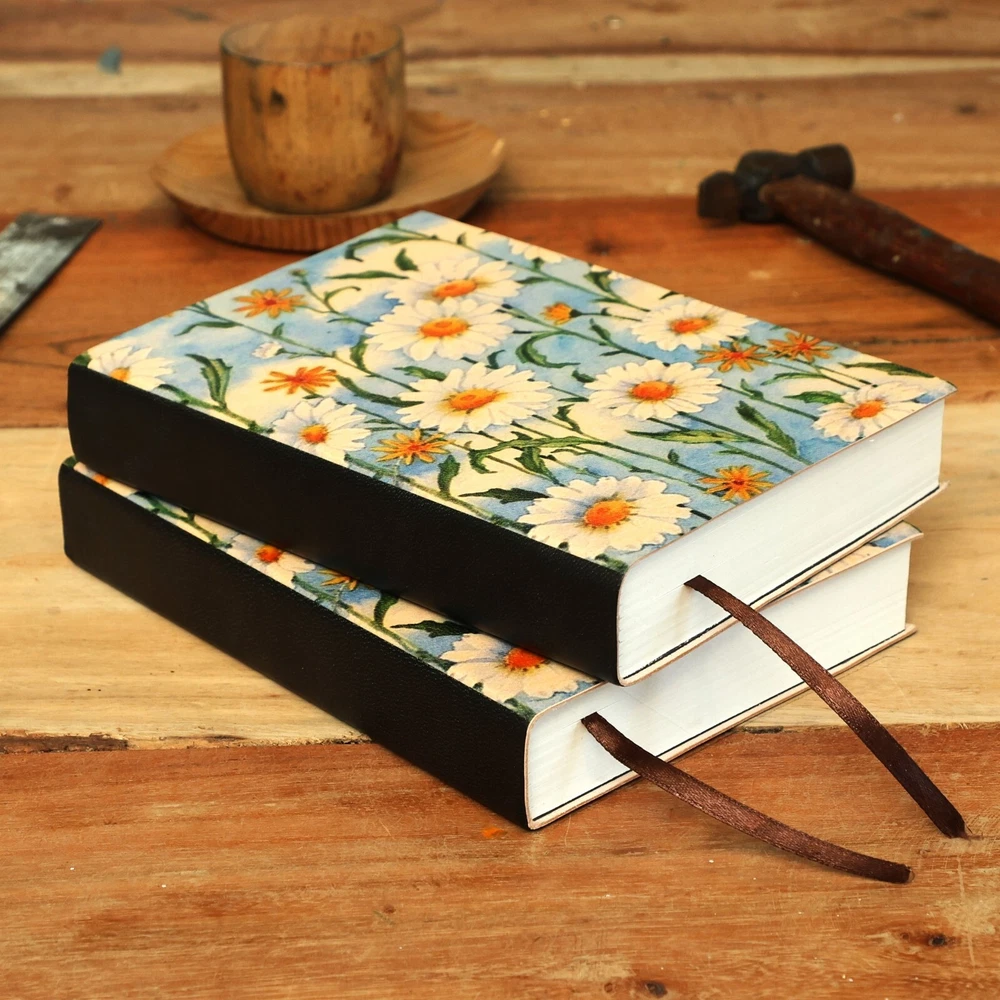 Italian Leather Journal Sunflowers Garden Notebook for Women 380 Pages