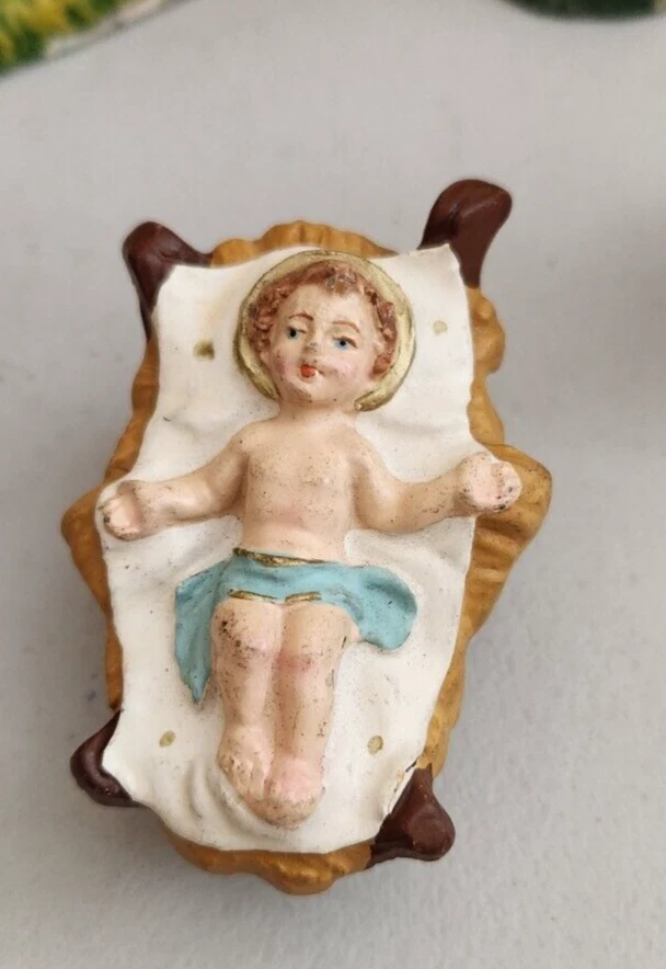 Vintage nativity - made in Italy. Tallest piece stands about 6.25 inches tall. Figures have some light paint wear - please see all photos