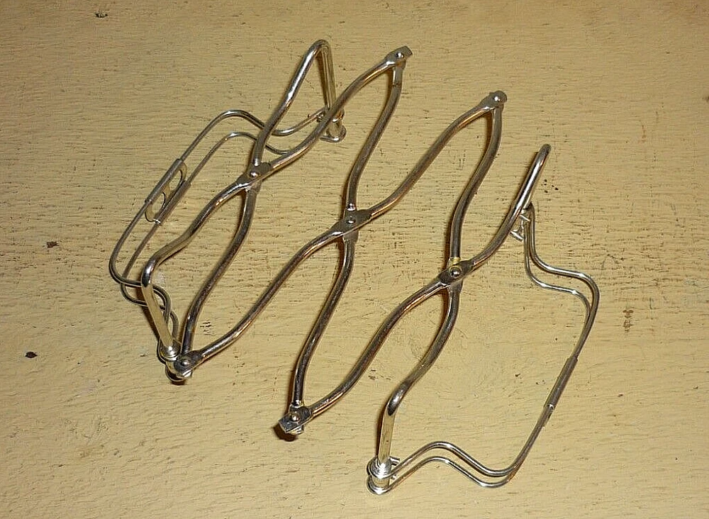 Italian expandable TRIVET / Hot Dish Casserole Holder. Accommodates 4 " to 12 " round and oval baking dishes. Very good condition and clean. WHITE SPOTS AND STREAKS ARE REFLECTIONS AND GLARE FROM THE LIGHTING. Accommodates 4 inch to 12 inch long ROUND or OVAL baking dishes. MADE IN ITALY stamped on the side. No cracks, dents, gouges or stains. I find very few light surface scuffs commensurate with light handling, cleaning and storage. This well-made trivet is clean, bright and ready for service. WHITE SPOTS AND STREAKS ARE REFLECTIONS AND GLARE FROM THE LIGHTING. Check out my thousands of other vintage and antique items above, under See other items or in my eBay store. We combine purchases and check for the best rates with the safest delivery services. Refunds on shipping, if applicable, are sent directly to your funding source. Items damaged by carriers are not returns for ' not as described '. If you receive a damaged item contact me through eBay Messaging not the return process. All items are insured and an on-line claim will immediately be filed. I have maintained a less than 0.030% breakage rate for over six years. We describe each item to the best of our ability and visual acuity. The photos provide the most accurate visual description. It is the Buyer's responsibility to inspect the photos in their entirety. Photo compression in transferring and editing (within eBay's system), lighting, the subject and individual monitor's settings can alter colors in the final picture viewing. It is the Buyer's responsibility to ask questions, through eBay Messaging, about colors and any other aspects not covered in the written description. Buyer remorse returns: Any returns due to any reason other than a Seller mistake, item misinformation or damage that was not pictured or described. These items will qualify for a refund of the sale price but not return shipping cost. Buyer remorse returns include but are not limited to, buyer’s changing their minds, items that don’t fit wherein the size descriptions were listed and/or pictured, items with signs of use wherein those signs were listed and/or pictured, non-working items wherein they are listed as untested or not working or buyers finding less expensive options after the item was ordered.