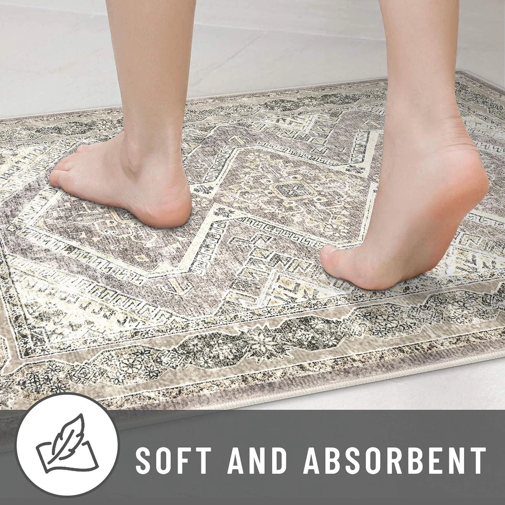 Introducing our versatile and stylish Blue Entry Rug, a perfect addition to any home seeking functionality and aesthetic appeal. This dorm rug is meticulously crafted to cater to a variety of spaces, including bathrooms, kitchens, entryways, and living areas. Our blue bathroom rugs offer a pop of color that can invigorate any dull space, while the rugs for kitchen floor ensure both style and practicality. This washable area rug is designed with convenience in mind. Featuring a non-slip backing, The non-slip rug backing prevents accidental slips One of the standout features of this entry way rug is its waterproof quality. This makes it an excellent choice for indoor areas prone to moisture, such as bathrooms and kitchens. The waterproof rugs for indoor use protect your floors from water damage, while the throw rug design adds a touch of coziness to your space. Designed to be both functional and decorative, this area rug seamlessly blends into various home decors. Whether you're looking for a small rug for your dorm room, or a chic entryway rug Our entry rugs are available in a variety of styles and colors, including the popular blue kitchen rugs and blue bathroom rugs. The versatility of this product extends to its use as a door mat or a front door mat, providing a welcoming touch to your home. For those who prefer a boho aesthetic, our boho rug options are equally captivating, offering unique patterns that enhance your interior design. Whether you need a durablity laundry room rug or a stylish throw rug for your living room, our washable entry rug is the ideal choice. The high-quality materials ensure longevity, while the non-slip features provide peace of mind. In summary, our Blue Entry Rug is a multifunctional and stylish solution for any home. Its washable, non-slip, and waterproof characteristics make it a practical choice, while the variety of colors and styles ensure it complements any decor. Transform your space with this versatile area rug Key Features: Size: 2.6x16 Feet (31.2x192 Inches), Thickness: 0.39 in., Color: The color is ivory white, but it may appear with a grayish or yellowish tone under different lighting conditions. Printed Vintage Design: The area rug blends classic patterns with muted tones, offering a design that feels both modern and vintage; its oriental-inspired prints and distressed touches complement various furniture styles, adding understated elegance to room Foldable Rug Runners: New rug creases usually fade within a week if rolled backward or hand-flattened. For quicker results, iron the back on low heat (with cloth protection), leave rolled reverse for 1-2 days, and weigh down stubborn areas with weights (like books) - always test iron heat first in an inconspicuous spot. Non-Slip and Low-Pile Comfort: This low-pile, shed-resistant rug features a secure non-slip backing, making it ideal for high-traffic areas, kids, and pets. Made from 224% polyester, it offers a soft, luxurious feel with good warmth, wrinkle resistance, and easy care. For best results, always keep the underside dry. Versatile Placement: This washable rug is perfect for bedrooms, living rooms, dining areas, entryways rugs, kitchen rugs, nurseries, offices, classrooms, or patios. Its classic oriental style with a unique seal pattern adds vintage warmth to any space Easy Care and Maintenance: A quick sweep or wipe handles daily care; when vacuuming, use a low-speed setting or a robotic vacuum to prevent shifting due to the soft backing. For deep cleaning, machine wash in cold water and avoid bleach to maintain colors