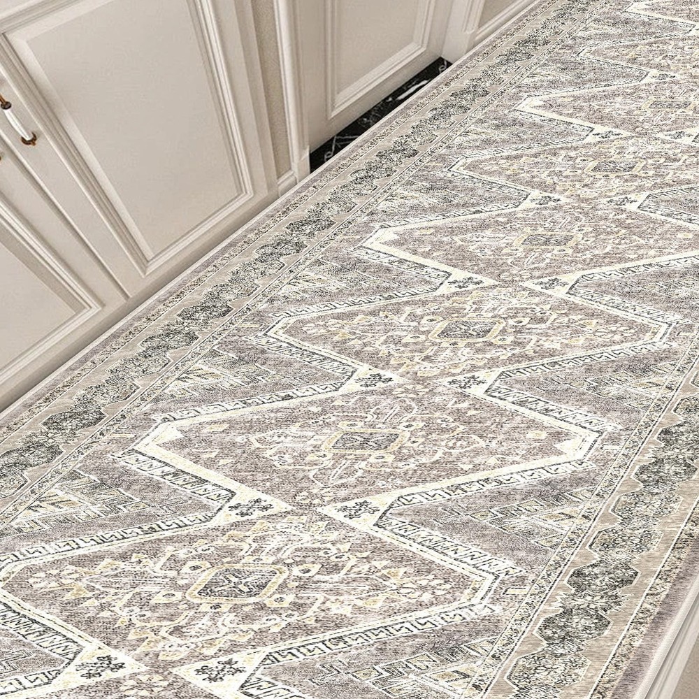 Introducing our versatile and stylish Blue Entry Rug, a perfect addition to any home seeking functionality and aesthetic appeal. This dorm rug is meticulously crafted to cater to a variety of spaces, including bathrooms, kitchens, entryways, and living areas. Our blue bathroom rugs offer a pop of color that can invigorate any dull space, while the rugs for kitchen floor ensure both style and practicality. This washable area rug is designed with convenience in mind. Featuring a non-slip backing, The non-slip rug backing prevents accidental slips One of the standout features of this entry way rug is its waterproof quality. This makes it an excellent choice for indoor areas prone to moisture, such as bathrooms and kitchens. The waterproof rugs for indoor use protect your floors from water damage, while the throw rug design adds a touch of coziness to your space. Designed to be both functional and decorative, this area rug seamlessly blends into various home decors. Whether you're looking for a small rug for your dorm room, or a chic entryway rug Our entry rugs are available in a variety of styles and colors, including the popular blue kitchen rugs and blue bathroom rugs. The versatility of this product extends to its use as a door mat or a front door mat, providing a welcoming touch to your home. For those who prefer a boho aesthetic, our boho rug options are equally captivating, offering unique patterns that enhance your interior design. Whether you need a durablity laundry room rug or a stylish throw rug for your living room, our washable entry rug is the ideal choice. The high-quality materials ensure longevity, while the non-slip features provide peace of mind. In summary, our Blue Entry Rug is a multifunctional and stylish solution for any home. Its washable, non-slip, and waterproof characteristics make it a practical choice, while the variety of colors and styles ensure it complements any decor. Transform your space with this versatile area rug Key Features: Size: 2.6x16 Feet (31.2x192 Inches), Thickness: 0.39 in., Color: The color is ivory white, but it may appear with a grayish or yellowish tone under different lighting conditions. Printed Vintage Design: The area rug blends classic patterns with muted tones, offering a design that feels both modern and vintage; its oriental-inspired prints and distressed touches complement various furniture styles, adding understated elegance to room Foldable Rug Runners: New rug creases usually fade within a week if rolled backward or hand-flattened. For quicker results, iron the back on low heat (with cloth protection), leave rolled reverse for 1-2 days, and weigh down stubborn areas with weights (like books) - always test iron heat first in an inconspicuous spot. Non-Slip and Low-Pile Comfort: This low-pile, shed-resistant rug features a secure non-slip backing, making it ideal for high-traffic areas, kids, and pets. Made from 224% polyester, it offers a soft, luxurious feel with good warmth, wrinkle resistance, and easy care. For best results, always keep the underside dry. Versatile Placement: This washable rug is perfect for bedrooms, living rooms, dining areas, entryways rugs, kitchen rugs, nurseries, offices, classrooms, or patios. Its classic oriental style with a unique seal pattern adds vintage warmth to any space Easy Care and Maintenance: A quick sweep or wipe handles daily care; when vacuuming, use a low-speed setting or a robotic vacuum to prevent shifting due to the soft backing. For deep cleaning, machine wash in cold water and avoid bleach to maintain colors