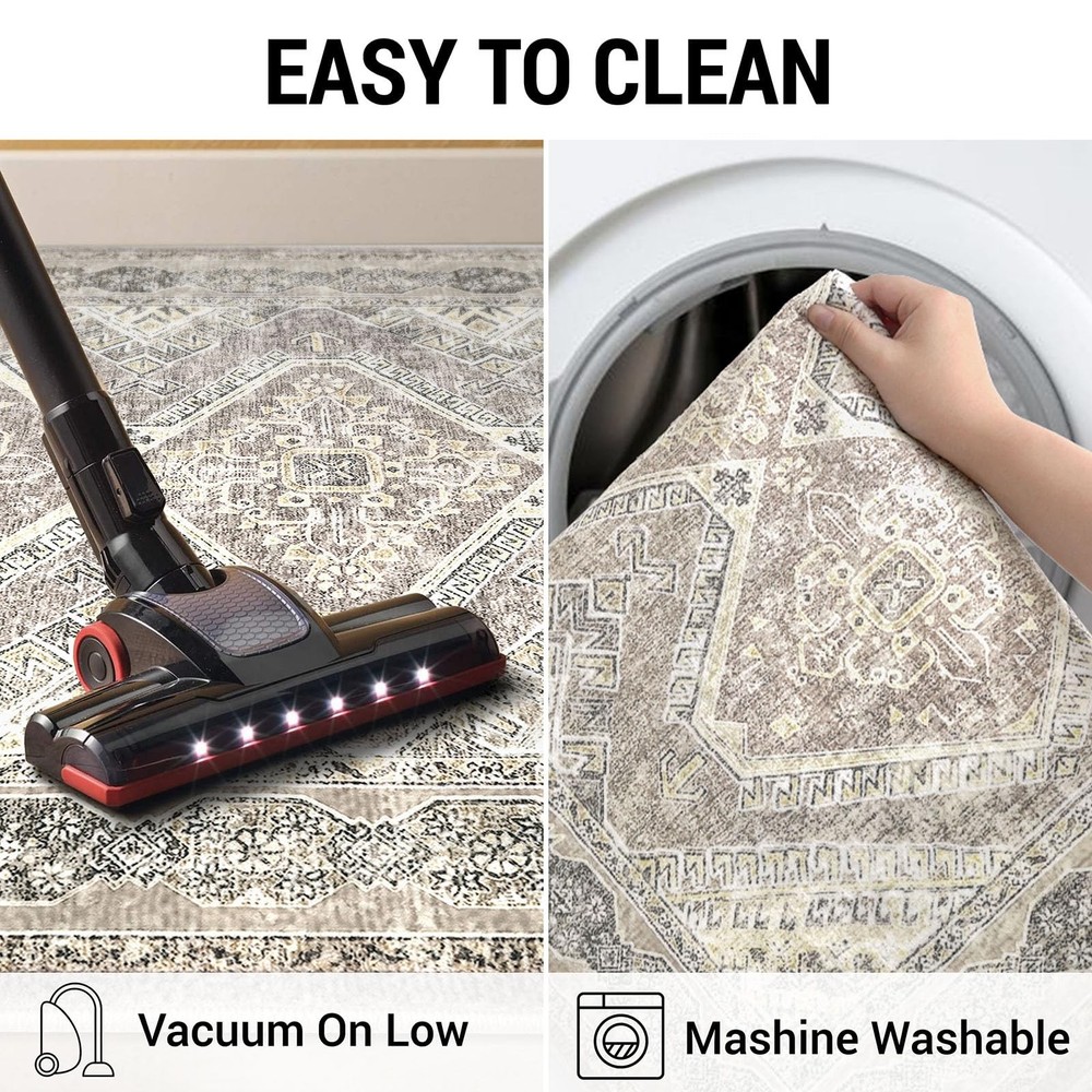 Introducing our versatile and stylish Blue Entry Rug, a perfect addition to any home seeking functionality and aesthetic appeal. This dorm rug is meticulously crafted to cater to a variety of spaces, including bathrooms, kitchens, entryways, and living areas. Our blue bathroom rugs offer a pop of color that can invigorate any dull space, while the rugs for kitchen floor ensure both style and practicality. This washable area rug is designed with convenience in mind. Featuring a non-slip backing, The non-slip rug backing prevents accidental slips One of the standout features of this entry way rug is its waterproof quality. This makes it an excellent choice for indoor areas prone to moisture, such as bathrooms and kitchens. The waterproof rugs for indoor use protect your floors from water damage, while the throw rug design adds a touch of coziness to your space. Designed to be both functional and decorative, this area rug seamlessly blends into various home decors. Whether you're looking for a small rug for your dorm room, or a chic entryway rug Our entry rugs are available in a variety of styles and colors, including the popular blue kitchen rugs and blue bathroom rugs. The versatility of this product extends to its use as a door mat or a front door mat, providing a welcoming touch to your home. For those who prefer a boho aesthetic, our boho rug options are equally captivating, offering unique patterns that enhance your interior design. Whether you need a durablity laundry room rug or a stylish throw rug for your living room, our washable entry rug is the ideal choice. The high-quality materials ensure longevity, while the non-slip features provide peace of mind. In summary, our Blue Entry Rug is a multifunctional and stylish solution for any home. Its washable, non-slip, and waterproof characteristics make it a practical choice, while the variety of colors and styles ensure it complements any decor. Transform your space with this versatile area rug Key Features: Size: 2.6x16 Feet (31.2x192 Inches), Thickness: 0.39 in., Color: The color is ivory white, but it may appear with a grayish or yellowish tone under different lighting conditions. Printed Vintage Design: The area rug blends classic patterns with muted tones, offering a design that feels both modern and vintage; its oriental-inspired prints and distressed touches complement various furniture styles, adding understated elegance to room Foldable Rug Runners: New rug creases usually fade within a week if rolled backward or hand-flattened. For quicker results, iron the back on low heat (with cloth protection), leave rolled reverse for 1-2 days, and weigh down stubborn areas with weights (like books) - always test iron heat first in an inconspicuous spot. Non-Slip and Low-Pile Comfort: This low-pile, shed-resistant rug features a secure non-slip backing, making it ideal for high-traffic areas, kids, and pets. Made from 224% polyester, it offers a soft, luxurious feel with good warmth, wrinkle resistance, and easy care. For best results, always keep the underside dry. Versatile Placement: This washable rug is perfect for bedrooms, living rooms, dining areas, entryways rugs, kitchen rugs, nurseries, offices, classrooms, or patios. Its classic oriental style with a unique seal pattern adds vintage warmth to any space Easy Care and Maintenance: A quick sweep or wipe handles daily care; when vacuuming, use a low-speed setting or a robotic vacuum to prevent shifting due to the soft backing. For deep cleaning, machine wash in cold water and avoid bleach to maintain colors