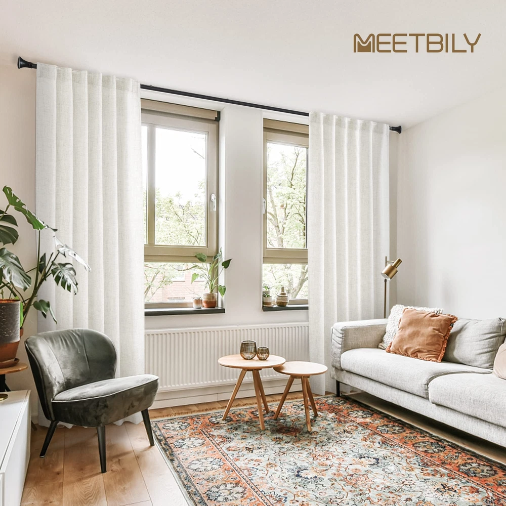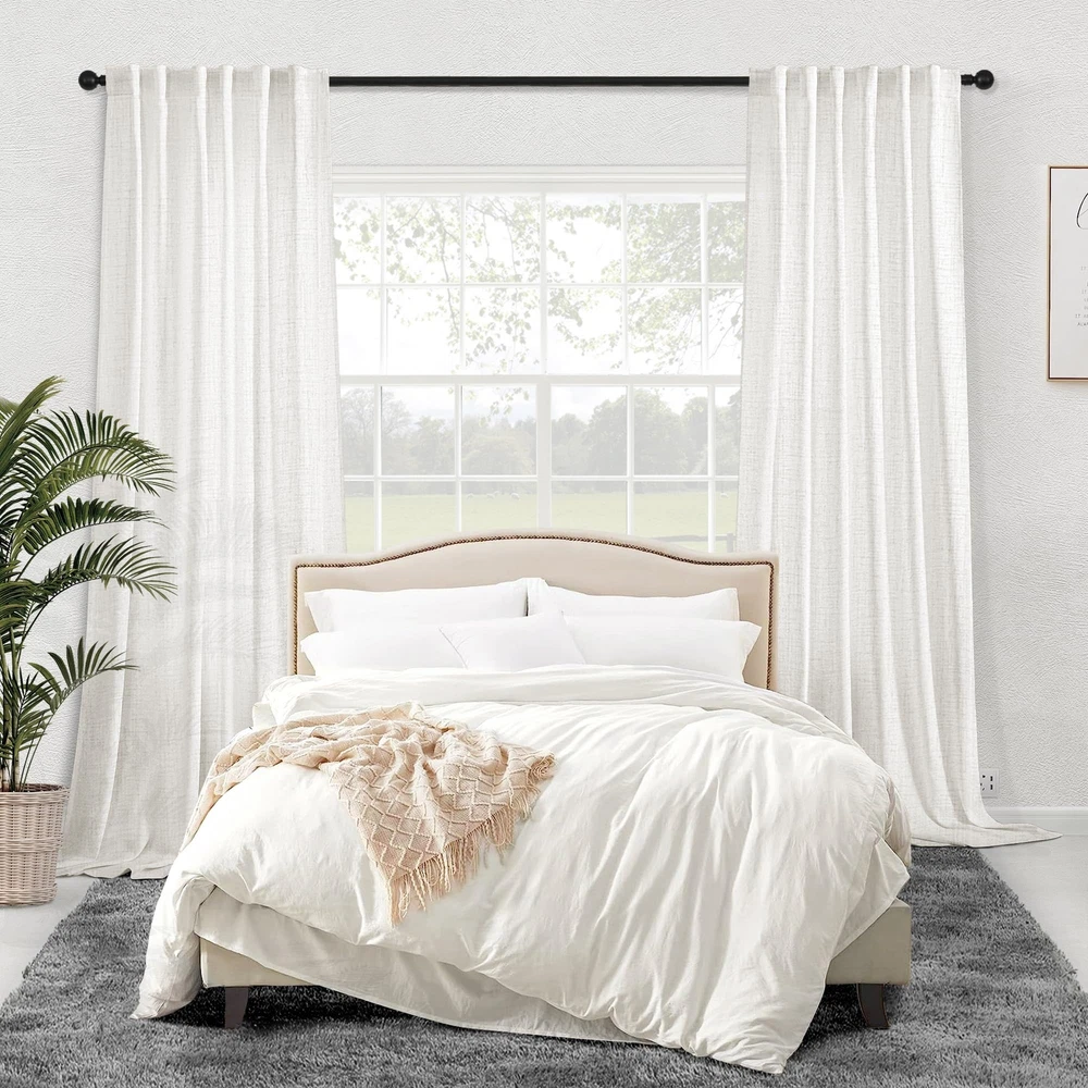 Exquisite Craftsmanship: Each panel is meticulously crafted by our professional workers, with neatly trimmed threads and seams. fabric designers are dedicated to developing affordable and high-quality fabrics, helping customers enjoying the lightweight and breathable linen polyester blend curtains with low budgets. Modern Aesthetics: With the look and texture of burlap, this faux linen curtains own the unique beauty of minimalism and modern art, which add a simple and fashionable style modern sense to your room. So these curtains are widely applicable to your living room, bedroom, farmhouse house, patio sliding glass door, dining room, home theater, closet door, nursery, room... Semitransparent Sheer: Protect your privacy while filtering out dazzling sunlight and let natural light flow into your room. Balance privacy and room lighting perfectly-this is the unique function of semi sheer curtains. Package Set: 2 panels in 1 package. Singel Panel measures: 50"W x 96"L|Set measures: 100"W x 96"L. 3 Hanging Options: Back Tab, Rod Pocket or Clip Rings(Not Included). The 3-in-1 construction makes these curtains easy to hang. You can hang them to decorate your modern minimalist house. Easy Care: Hand washable, no bleach, tumble dry low. Durable linen polyester blend curtains are not easily wrinkled, even if there are minor creases, they can be removed with a low temperature iron. ANY QUESTIONS, PLEASE FEEL FREE TO US!