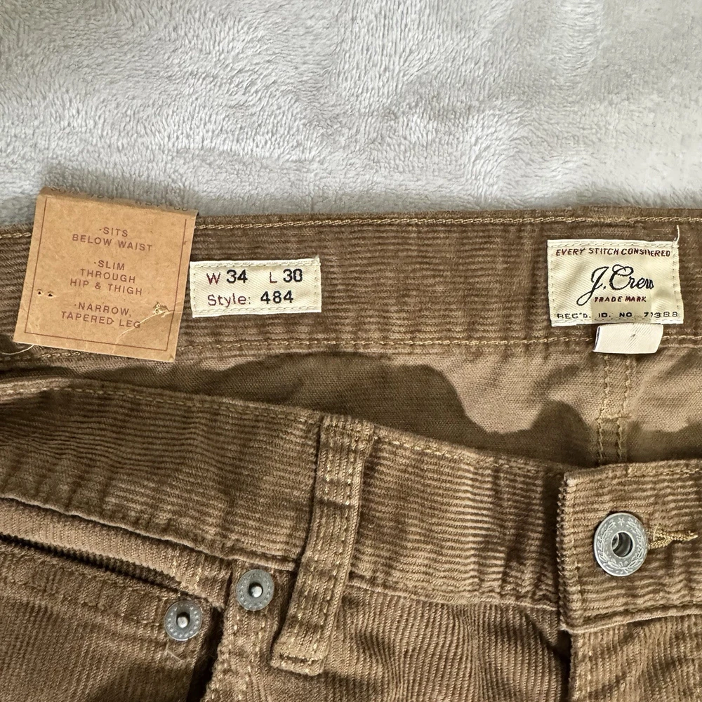 Elevate your wardrobe with these stylish J.CREW 484 corduroy pants in a rich brown color. These pants feature a slim fit design with a mid-rise waistline and a straight leg style. The 5-pocket design with button and zip closure provides ample storage space for your essentials. Crafted from a blend of spandex and cotton, these pants provide stretch and comfort, making them perfect for winter, fall, and spring seasons. The solid pattern and army, USA, and preppy themes add a touch of sophistication to your outfit. These pants are machine washable and are available in size 34 waist and 30 inseam.