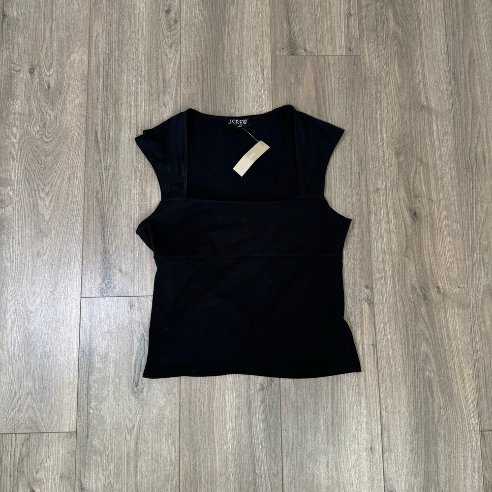 J Crew Square Neck Cap Sleeve Stretch Cotton Blend Top Measurements: Pit to Pit: 17.5" Approx Shoulder to Hem: 21" Approx Color: Black Size: US Women's L SKU: CA528 Stretch: Yes Condition: New With Tags, deodorant mark on front Description: Elevate your style with J Crew's Square Neck Cap Sleeve Stretch Cotton Blend Top, a chic and versatile piece perfect for any wardrobe. This black top merges vintage-inspired design with modern elegance, featuring a unique square neckline and cap sleeves. Its relaxed-fit and artsy appeal make it perfect for casual, urban, or laid-back occasions. Despite a deodorant mark on the front, its distinctive charm and fashion-forward style ensure you stay on-trend. Embrace its effortless, nonchalant vibe for a statement-making, edgy look that captures authentic, relaxed-chic sophistication with ease.