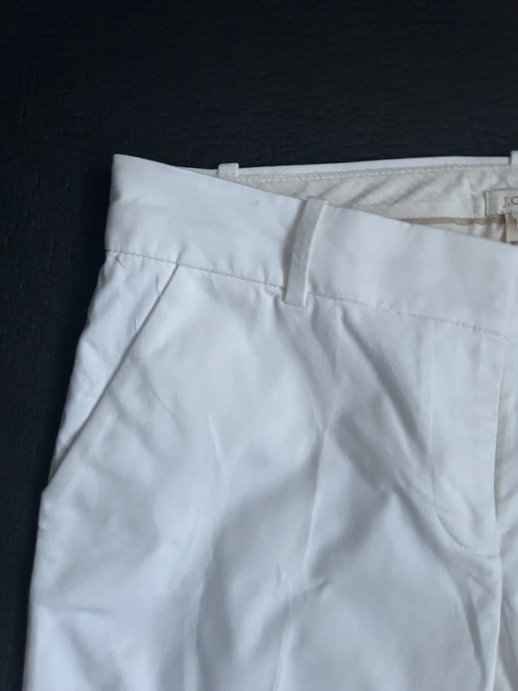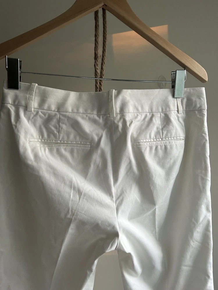 J Crew Women’s Pants Ivory Slip Crop Size 4 Hook And Eye 98% Cotton 2% spandex