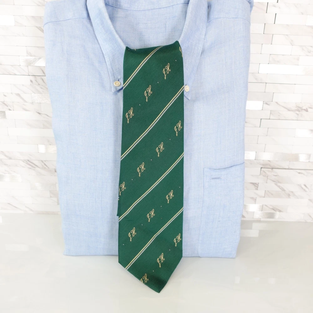 J. HIYASHI Initials Logo Men's Dark Green Striped Necktie 100% Silk Embroidered Pointed Regular width & Length Made of 100% Silk Handmade Dry Clean Only Striped Embroidered Brand Initials and Logo Excellent Pre-owned Condition. Mint and No flaws 🌱🌿 Proud to be a member of Eco - Packaging Alliance & utilize a sustainable packaging. 🌳 🇺🇸 USA - NYC ( New York City Seller ) 🇺🇸 ALL our necktie are Top High Quality Worldwide Brands & Guaranteed 100% Authentic. Mostly 95% of our Necktie items are Likely New, Unused from stores or Excellent pre-owned condition. Please note, some item have mild crease/s for storage and shipment. Ready to Ship items out Same or Next Business with tracking confirmation. Additional Necktie for $2 shipment for Domestic. Happy to bulk sell and combine shipping on multiple purchases won. Worldwide shipping available. Proudly posting 100+ New Listings everyday, 7 Days a week. Add me as a Saved Seller & Check back daily Items taken in photography - All colors bright & vibrant, actual item may differ in color in monitor or mobile screen & every individual may see colors differently. Kindly review all photos, conditions, & flaws if indicated. I'm grateful for offers & willing to negotiate so you can have these items. If you have questions, don't hesitate to message me. Thank You Exclusion: Shirt is not included for sale D0662-2-RL7-27 Proud to be a member of Eco - Packaging Alliance & utilize a sustainable packaging. For every order placed, the organization plant trees in areas in reforestation around the globe. Proudly posting 100+ New Listings everyday, 7 Days a week. Add me as a Saved Seller & Check back daily Thank you