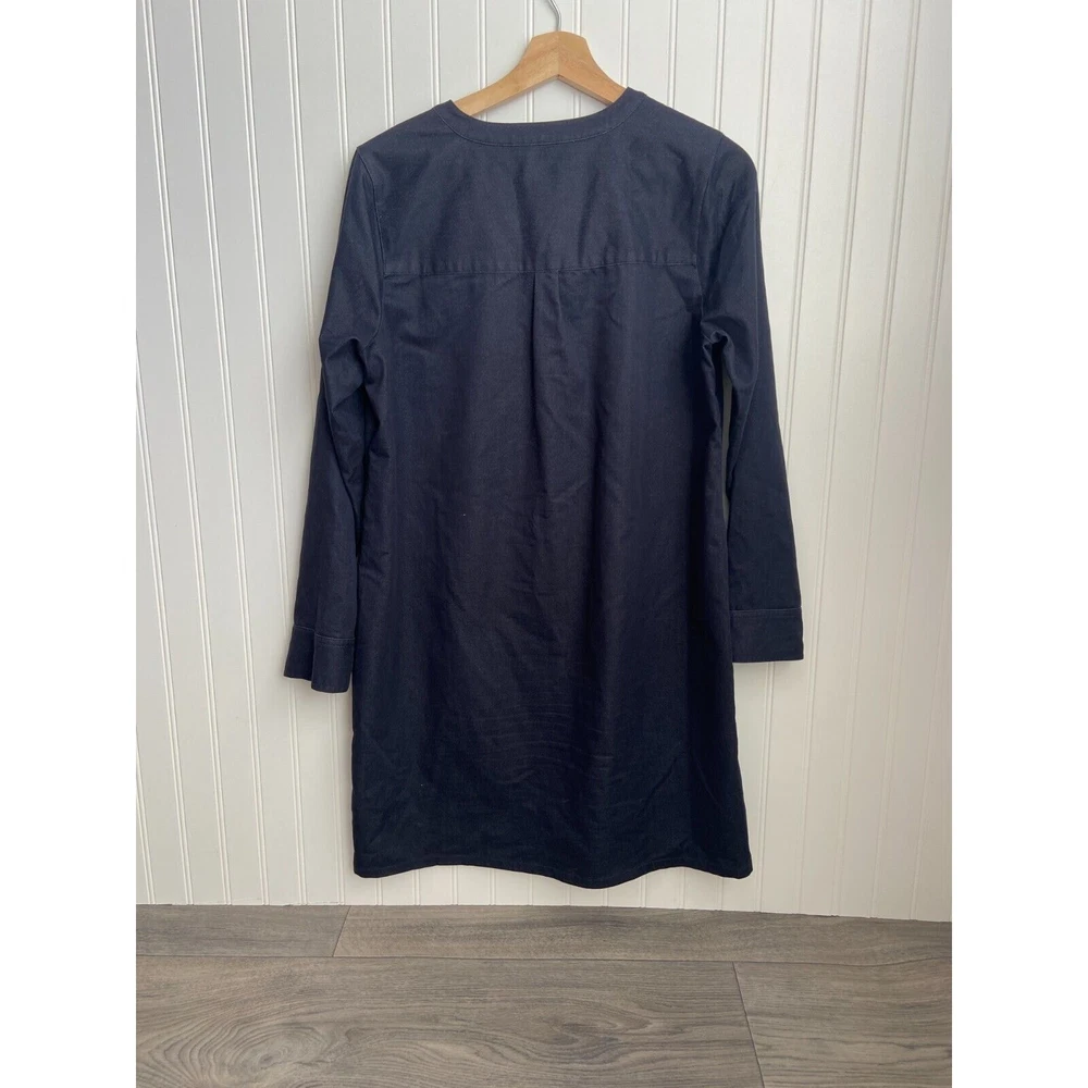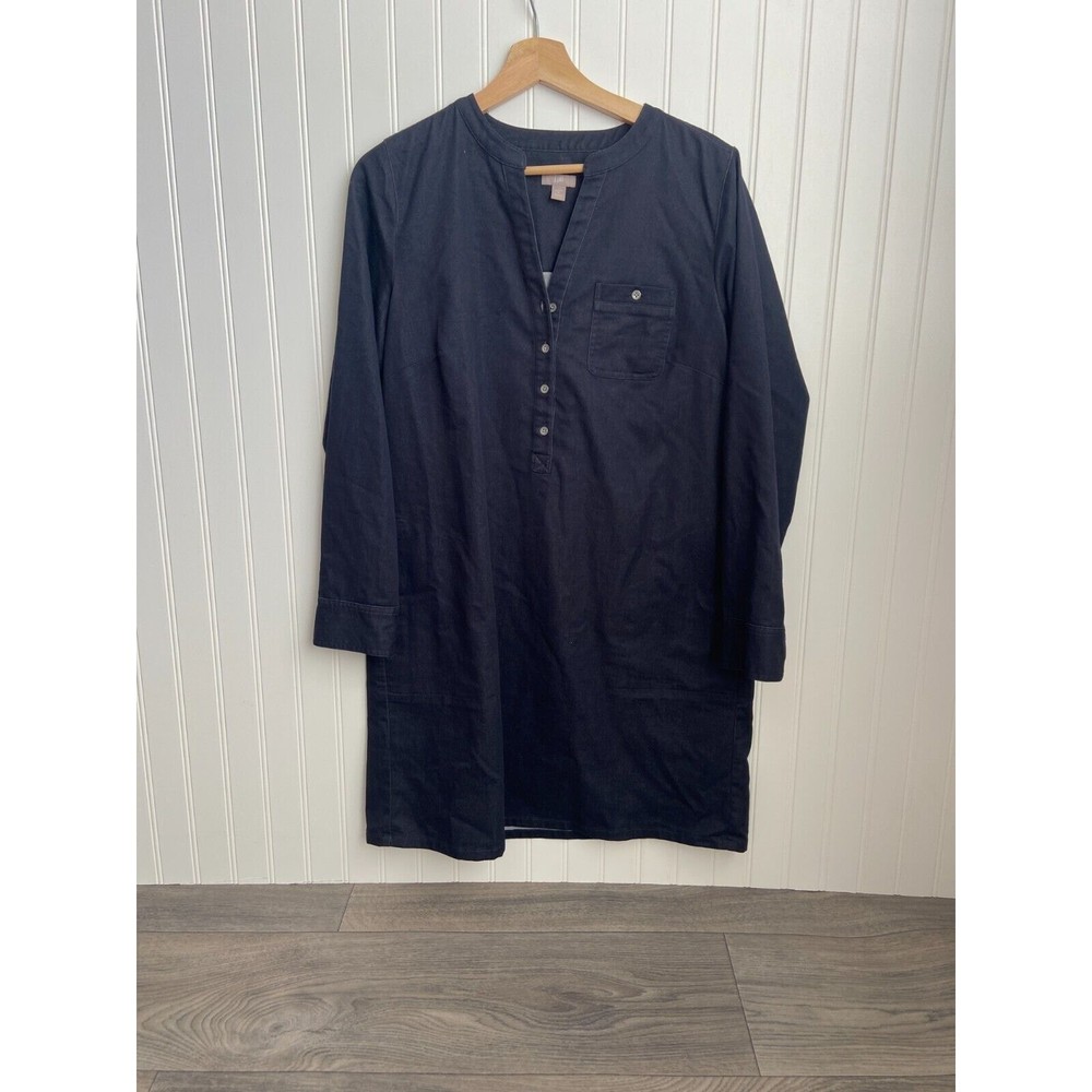 This J. Jill dress is a versatile and stylish piece for women in size medium. The dark blue color and long sleeves make it perfect for casual or workwear occasions, while the V-neck and button closure add a touch of sophistication. The dress also features pockets and a comfortable stretch material of polyester, spandex, and cotton. Machine washable and suitable for all seasons, this classic western-inspired shirt dress is a wardrobe staple for any fashion-forward woman. Length: 36", Pit to pit 20"