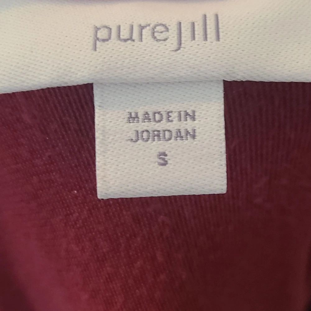Pure Jill Women's Long Sleeve Pullover Tunic Maroon Size S Excellent Preowned Condition Tunic top V neckline Pullover Long sleeve Burgandy Straight hem Velour Career Casual Measurements are as follows: armpit to armpit 17 inches length 30 inches Measurements are taken while garment is flat Garment comes from the pet free and smoke free home. Box: D11 2155 Features: • Tunic Size: Womens S Condition: Pre-Owned Good