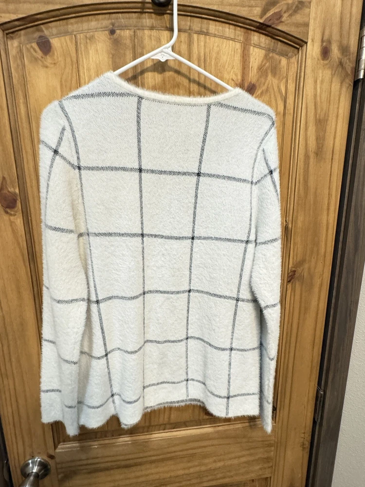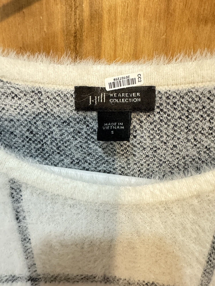 Elevate your wardrobe with this J. Jill Women's Wearever Windowpane Removable Snood Sweater in NC3 Cream/Black, size S. The sweater boasts a stylish ivory color and features a pullover style with a removable snood design. It is perfect for any occasion and can be dressed up or down effortlessly. The sweater is made from high-quality materials and is designed to be comfortable and durable. Whether you're going out with friends or running errands, this sweater is an excellent addition to your wardrobe.