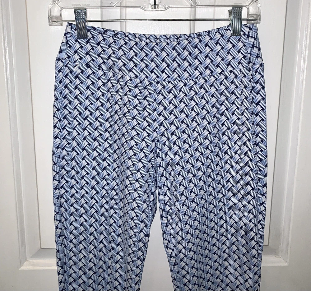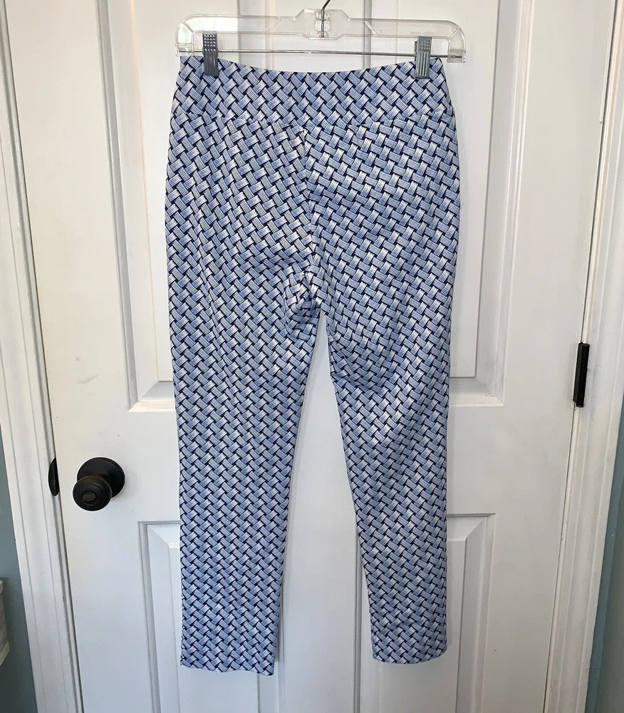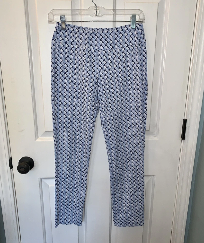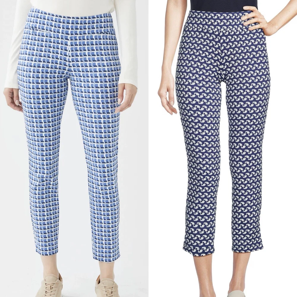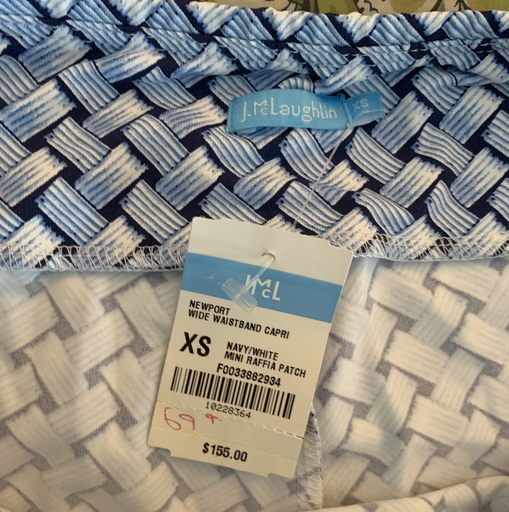 NWT J.McLaughlin Newport Wide Waistband Capri Pants -NWT $155 Size XS -In Navy/White Mini Raffia Patch -Signature Catalina Cloth fabric -Wrinkle free & stretch -Pull on & cropped -Nylon blend, hand wash