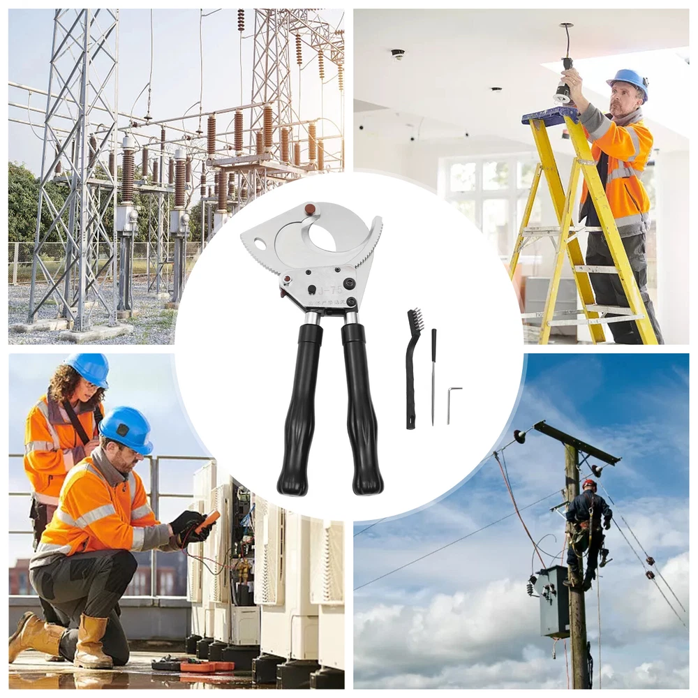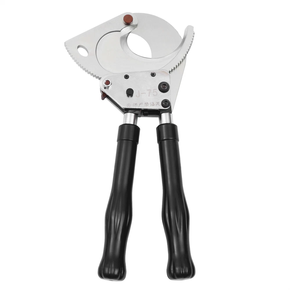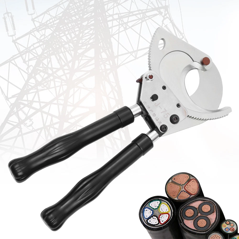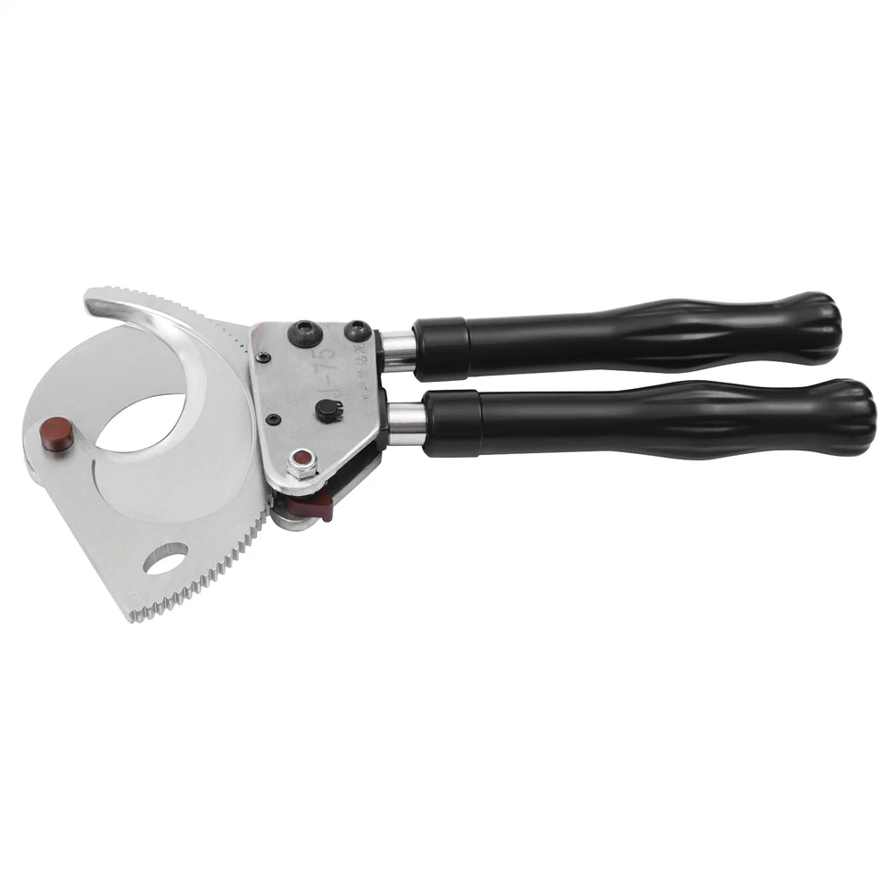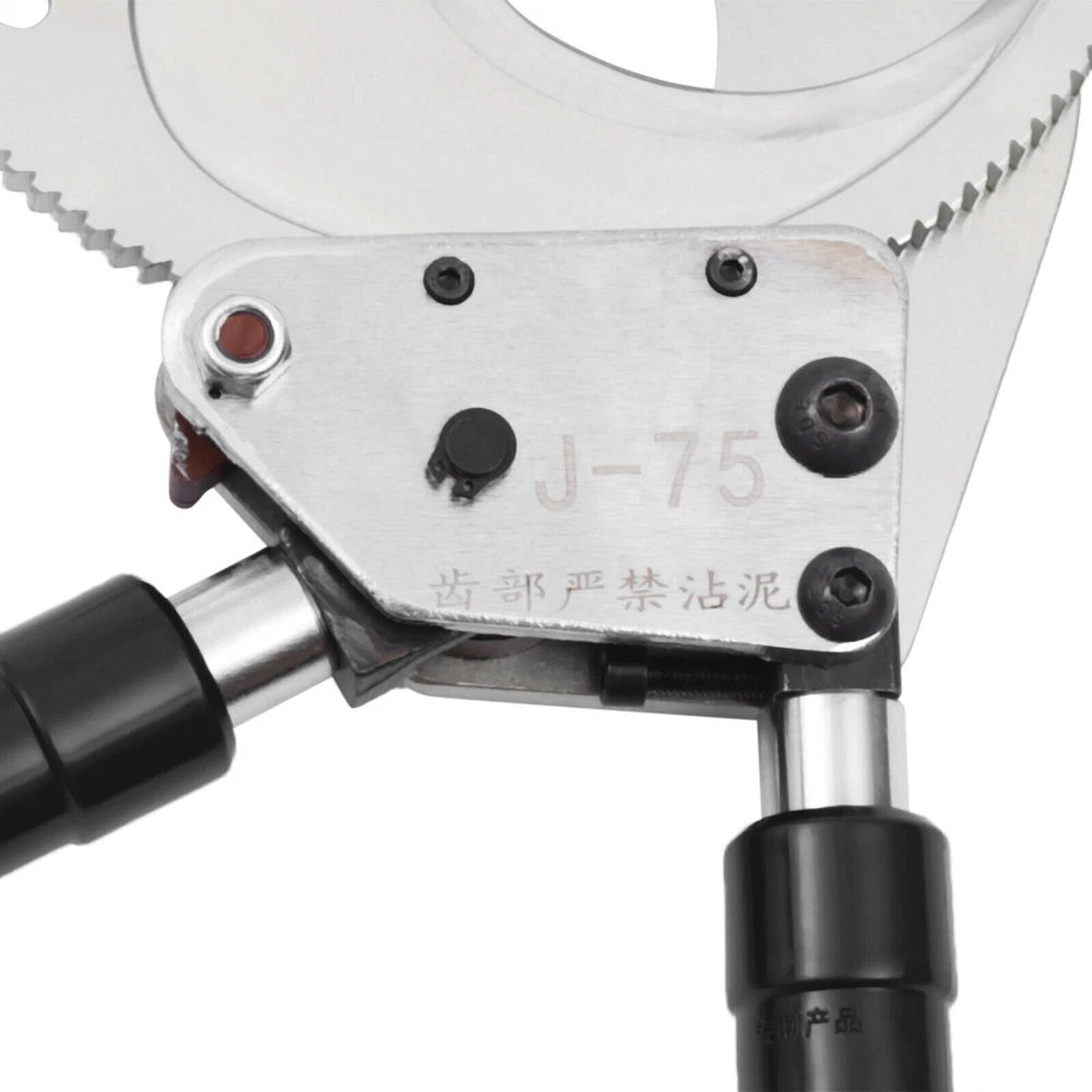 Description This is a ratchet cable cutter for cutting copper, aluminum, and armored cables. The high-strength ratchet construction facilitates the automatic locking of the cutting edge on the cable for precise and flat cutting. And the optimized lever handle makes cutting easier for the user. Specification Model: J75 Material: Spring Steel, Steel, Rubber Color: Black, Silver Process: Galvanization, Quenching Gear: Single Gear Cutting Range: 7cm/2.76in Handle Retractable Length: About 15cm/5.9in Gross Weight: 3.7kg/8.15lbs Net Weight: 3kg/6.61lbs Package Size: 43*24*17cm/17.71*9.44*6.69in Product Size: 41.6-58.7*20*5.5cm/16.37-23.11*7.87*2.16in Package Included 1*Ratchet Cable Cutter 1*Allen Key 1*Triangular File 1*Geared Brass Wire Brush 1*Carrying Bag 1*Englis J75 Ratchet Cable Cutter Aluminum Copper Cable Ratcheting Wire Cutting Tool DESCRIPTION Description This is a ratchet cable cutter for cutting copper, aluminum, and armored cables. The high-strength ratchet construction facilitates the automatic locking of the cutting edge on the cable for precise and flat cutting. And the optimized lever handle makes cutting easier for the user. Specification Model: J75 Material: Spring Steel, Steel, Rubber Color: Black, Silver Process: Galvanization, Quenching Gear: Single Gear Cutting Range: 7cm/2.76in Handle Retractable Length: About 15cm/5.9in Gross Weight: 3.7kg/8.15lbs Net Weight: 3kg/6.61lbs Package Size: 43*24*17cm/17.71*9.44*6.69in Product Size: 41.6-58.7*20*5.5cm/16.37-23.11*7.87*2.16in Package Included 1*Ratchet Cable Cutter 1*Allen Key 1*Triangular File 1*Geared Brass Wire Brush 1*Carrying Bag 1*English Manual Key Features High-Quality Material : The ratchet cable cutter is forged from high-quality spring steel. The highly flexible, fatigue-resistant spring steel makes this ratchet cable cutter strong and durable. Sharp Edge : The ratchet cable cutter's edge is professionally hardened to provide a hardened hardness of 45 HRC. Long Service Life : The edge of the blade is galvanized, which improves its corrosion and rust resistance so that the ratcheting cutter's service life is extended. High Safety : The rubber sleeve of the handle can effectively insulate and protect you when cutting cables. And the non-slip design on the surface of the handle can effectively prevent slipping and increase safety. Complete Accessories : This ratchet cable cutter comes with an Allen key, triangular file, and geared brass wire brush. The Allen key is easy to adjust the tightness. The triangular file is used to polish gears and edges. The brush is used to clean the gears. Labor-saving and Efficient : The unique ratchet cable cutter's sharp edge and weight of only 6.61 pounds allow you to make fast cuts. Telescopic Handles : The handles are designed to be retractable and can extend up to 5.9 inches. Comfortable to Use : The handle is made of a high-quality steel tube, and its surface is covered with soft rubber to bring users a comfortable feeling of use. Easy to Carry : The ratchet cable cutter's weight of only 6.61 pounds and size of 16.37-23.11*7.87*2.16 inches makes it easy to carry. And equipped with storage bags for easy storage and carrying. Customer Service : We aim to provide quality products and services. If you have any problems, please feel free to contact us. We will reply and solve the problem for you as soon as possible. Details Pulling Fork : Pulling a fork can lock the internal structure to achieve a step blade activity so that cutting is more efficient and labor-saving. Nut : The flexible and robust nut holds the fixed and movable blades in place and allows the blades to be adjusted to suit different sizes of cable. Movable Blade : The flexible movable blade can be adjusted according to the size of the cable in time, making it more flexible. High Hardness Gear : The uniform hardness gear makes the ratcheting cutter stronger and more evenly stressed. High hardness gears make the cut flatter. Carrying Bag : We provide you with a carrying bag so that you can store your items or easily carry them outdoor or in other locations. Application The ratchet cable cutter is capable of cutting aluminum, copper and armored cables of φ less than or equal to 2.95 inches. Way of Use 1. Rotate the handle sheath to the inside. The handle is free to retract. Rotate the handle sheath to the outside, the handle length is locked. The handle extends to cut thicker cables easily. 2. The movable handle is unlocked when the handle is extended, which allows you to swing it up and down freely for easy use. 3. Turn the rotary cutter blade clockwise to clamp the cable and then trigger the movable handle until the cable is cut. 4. In the cutting process, if you want to return the knife, you can lock the movable handle and then tinker with the brace red block. At this point, the hand holding the movable handle can be released. Then rotate the blade counterclockwise. 5. After cutting, the movable handle will be close to the fixed handle until it is completely retracted and locked, so that the handle can be fixed. Notes 1. The cable cutter for hammering or being hammered, so as not to deform the blade damage, the cable cutter is not allowed to connect the long handle at will to use. 2. The different specifications of the cable cutter have a different range of use and do not exceed the scope of use. 3. The active handle each time you toggle, use the rotating handle to advance a tooth, and make a 'blah blah blah' sound, such as no sound, indicating that the cable cutter internal failure, should be repaired promptly. 4. The cable cutter after a long time, the knife mouth will inevitably be damaged, at this time available oil stone or high-speed grinding head repair, such as serious damage should be replaced promptly. 5. The handle of the insulation sheath should often check, do not allow a break. 6. Check all the screws on the end cover plate, such as loose ones should be re-tightened once, and the oil hole should be as of