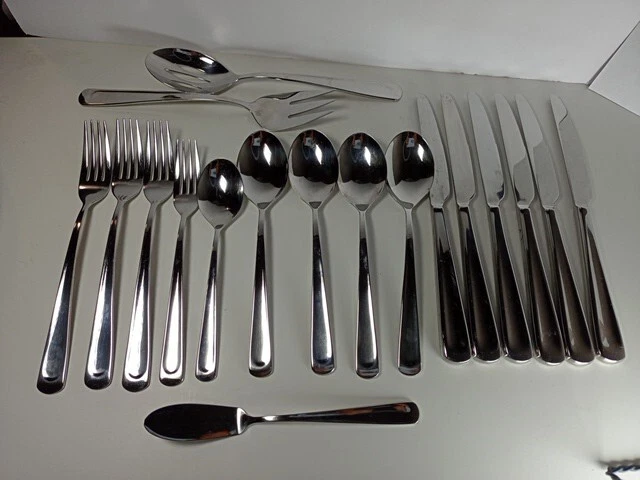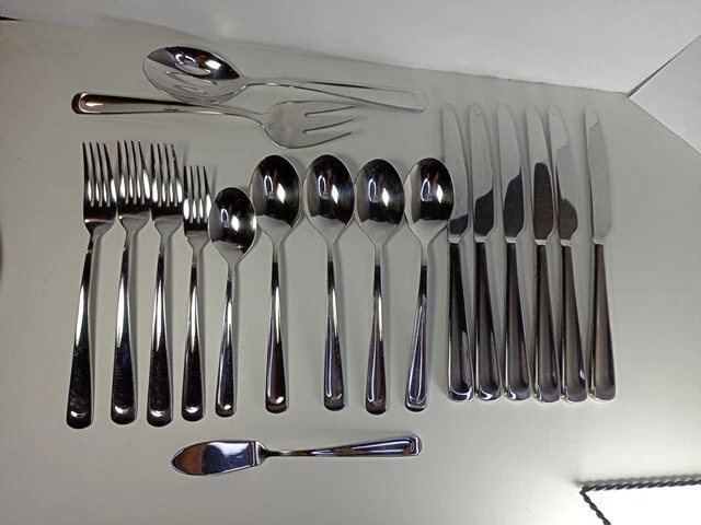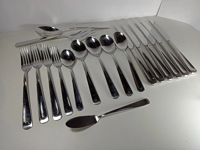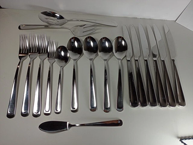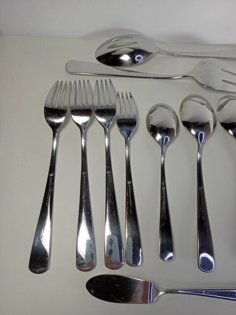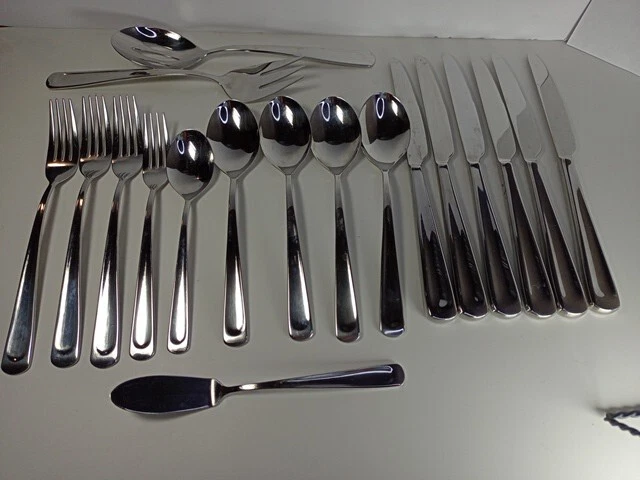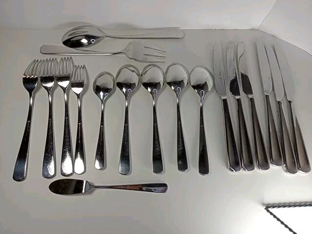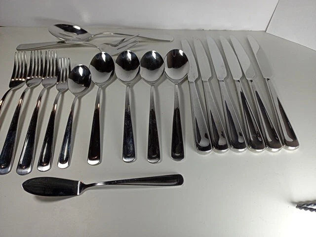 Please check the pattern carefully. This set may or may not be Silvano. It is the best match found. Marked as INOX 6 Knives 4 Large Spoons 1 Small Spoon 1 Small Fork 3 Large Forks 1 Serving Spoon 1 Serving Fork 1 Spreader