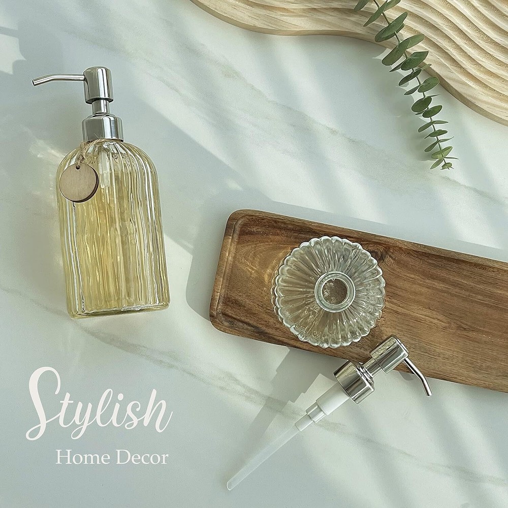 Free eBay listing template designed by dewiso.com JASAI 2PACK 18 Oz Glass Soap Dispenser with Rust Proof Stainless Steel Pump, Refillable Hand Soap Dispenser with Vertical Stripe, Premium Bathroom soap Dispenser for Kitchen & Bathroom FREE AND FAST SHIPPING! About this item ATTRACTIVE BATHROOM ACCESSORIES: Stylish Bathroom Soap Dispenser With Blank Wooden Tag. Lovely Way To Dress Up Your Bathroom, Kitchen And Office Etc. GREAT VALUE SET OF 2: Sizable 18oz Soap Dispenser Houses A Generous Amount Of Soap, Lotion, Hand Soap and Dish Soap. Looks Elegant In Pairs. GLASS SOAP DISPENSER WITH STURDY PUMP: Durable Thick Glass Soap Dispenser Comes With Rust Proof 304 Stainless Steel Pump. Each Dispenser Pump Holds 18 Ounces Of Liquid. BEAUTIFUL HAND SOAP DISPENSER: A Distinctive Reflection Through Vertical Ripple Sparkles Under Light And Soap Color Makes Your Home Space Look Pretty And Yet Functional. DIMENSIONS: Each Glass Soap Dispenser Measures 7.7" In Height, 3.2" In Diameter. The Practical And Beautiful JASAI Dispenser Bottler Is A Perfect Gift For Close Friends Or Relatives. Product We offer a 30-Day Return Policy on items which you are not completely satisfied with. You have the option for a full-refund or an exchange of the item. No returns are available on items shipped outside of the US . Shipping We offer Free Shipping to the US and ship within 2 business days of payment, usually sooner. We use UPS express shipping. That's why your products are usually delivered within 3 days . Contact We try our very best to make sure every customer is completely satisfied. If there's a problem , message us! We're happy to help. 24/7 live chat available.