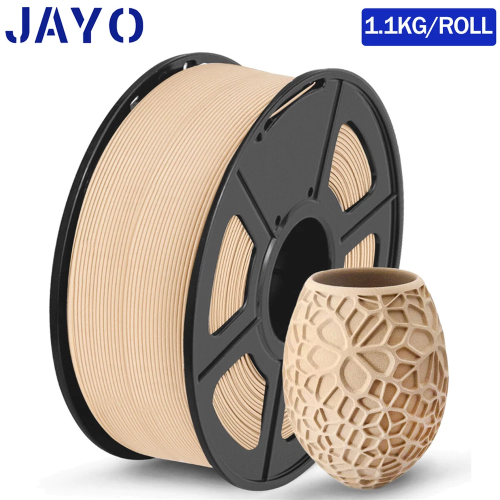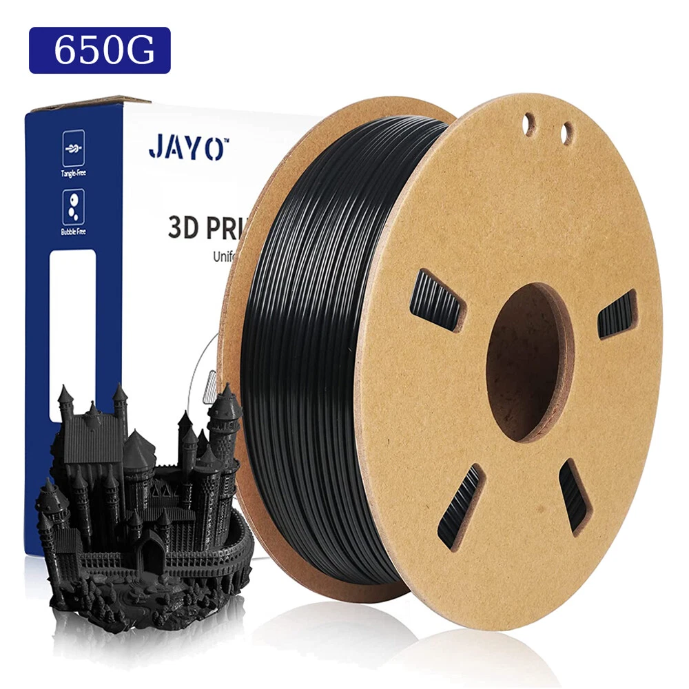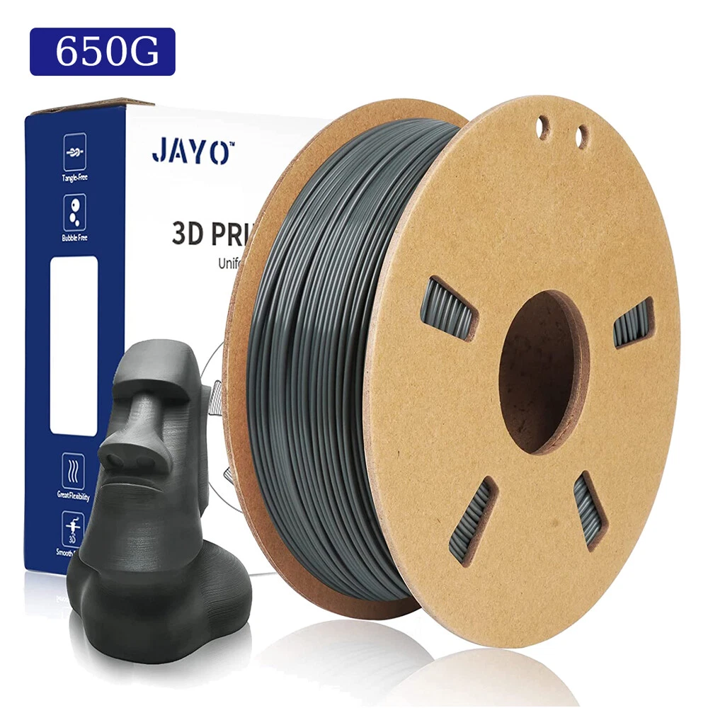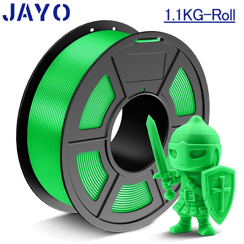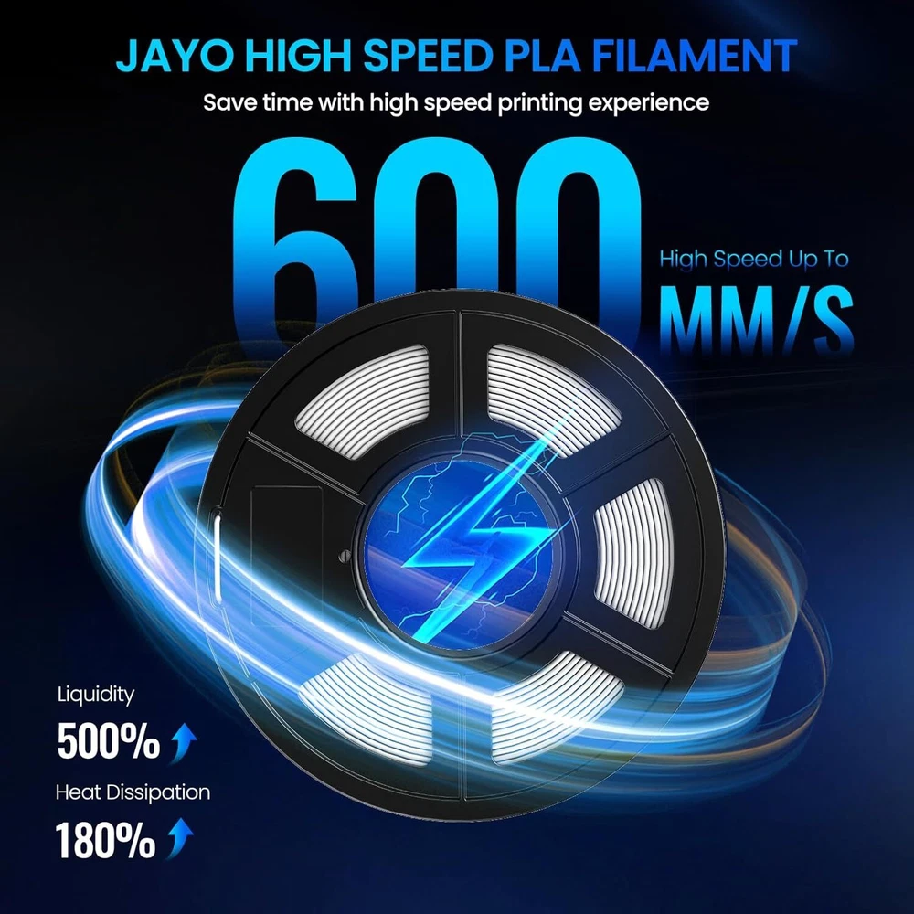 Filament Wire diameter Tolerance Printing temperature Print speed Heat bed temperature Elongation at break Net weight PLA 1.75mm ±0.02mm 200-210℃ 50-100mm/s 53℃ 4% 1.1KG/Roll PLA Meta 1.75mm ±0.02mm 185-195℃ 50-150mm/s 53℃ 35% 1.1KG/Roll PLA Matte 1.75mm ±0.02mm 205-215℃ 50-100mm/s 53℃ 4% 1.1KG/Roll PLA HighSpeed 1.75mm ±0.02mm 190-210℃ 190-210℃, 50-150mm/s 210-230℃,150-300mm/s 230-260℃,300-600mm/s 53℃ 3.6% 1.1KG/Roll PLA Glow 1.75mm ±0.02mm 200-210℃ 50-100mm/s 53℃ 21% 1.1KG/Roll PLA Carbon fibre 1.75mm ±0.02mm 215-225℃(YF) 205-215℃(TY) 40-60mm/s 53℃ 3% 1.1KG/Roll PLA Marble 1.75mm ±0.03mm 210-220℃ 40-60mm/s 53℃ 4% 1.1KG/Roll Wood 1.75mm ±0.03mm 205-215℃ 40-60mm/s 53℃ 4% 1.1KG/Roll PLA+ 1.75mm ±0.02mm 205-215℃ 50-100mm/s 53℃ 45% 1.1KG/Roll PETG 1.75mm ±0.02mm 200-230℃ 40-60mm/s 63℃ 210% 1.1KG/Roll SILK PLA+ 1.75mm ±0.02mm 205-215℃ 40-60mm/s 53℃ 200% 1.1KG/Roll TPU (95A) 1.75mm ±0.03mm 195-205℃ Proximale Extrusion:40mm/s Ferngesteuerte Extrusion:20mm/s 52℃ 600% 0.5KG/Roll TPU SILK(98A) 1.75mm ±0.03mm 210-220℃ Proximale Extrusion:50mm/s Ferngesteuerte Extrusion:30mm/s 131℃ 463% 1.1KG/Roll ABS 1.75mm ±0.03mm 250-260℃ 40-60mm/s 84℃ 25% 1KG/Roll 0.65KG/Roll Easy ABS 1.75mm ±0.03mm 225-235℃ 40-60mm/s 57.9℃ 20% 0.65KG/Roll JAYO guarantees that following filaments are 100% Neatly wound -- PLA/PLA+/PLA Meta/PETG/SILK/PLA Matt (ABS/TPU/PLA Marble is not included.) About this product: 【 JAYO Filament 1.75mm 】JAYO 3D printed fine filament uses advanced production technology to deliver an incredible 3D printing experience. Clean lines, precise dimensionality, low shrinkage and excellent adhesion make printing easier. 【 Neatly wound filaments 】JAYO's leading production process - neatly threaded filaments prevent filaments from tangling, twisting or breaking during printing, reducing the risk of clogging and greatly increasing print success. 【 High dimensional accuracy and consistency 】JAYO 3D printer filament diameter is 1.75 mm, and the dimensional accuracy is +/- 0.02 mm, which is almost suitable for FDM 3D printers. 【 No clogging and no air bubbles 】JAYO 1.75mm filament has better flowability and effectively reduces clogging when printing. Plastic vacuum packaging and desiccant make the filament less susceptible to moisture. 【 High Compatibility & Easy Operation 】Compatible with 99% of FDM 3D printers and 3D pens on the market. JAYO fine filament's excellent stability is suitable for beginners and advanced users. How to store: 1.If you leave your printer idle for more than a few days, please retract the filament to protect your printer nozzle. 2.In order to extend the life of your filament, please put the unsealed filament back into the original vacuum bag and store in a cool and dry place after printing. 3.When storing your filament, please pass the loose end through the holes on the edge of the filament spool to avoid coiling, so that it will be fed properly for the next use.
