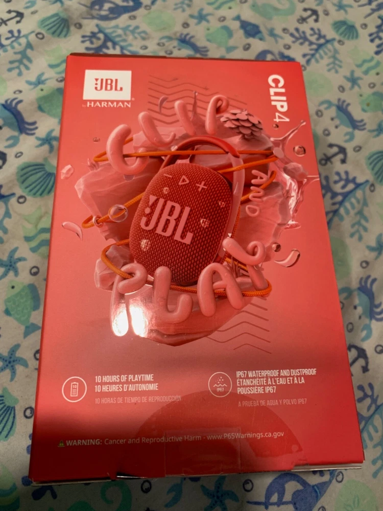 JBL speaker is brand new sealed. Package is good other than a crack on the plastic.