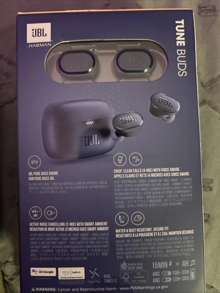 Enjoy your music with the JBL Harman Tune Buds Noise Cancelling (B10). These earbuds provide an immersive sound experience with their Bluetooth wireless technology and active noise cancellation feature. The built-in microphone allows you to take calls and stay connected while you enjoy your tunes. The earbuds come gin a sleek black color and are designed to fit comfortably in your ears. The JBL Tune Buds are perfect for those who value convenience and quality. With their double earpieces and in- GG zear only form factor, you can enjoy your music without any distractions. These earbuds are also easy to use and connect with their Bluetooth connectivity. Get your hands on the JBL Harman Tune Buds and enjoy a amazing audio experience.