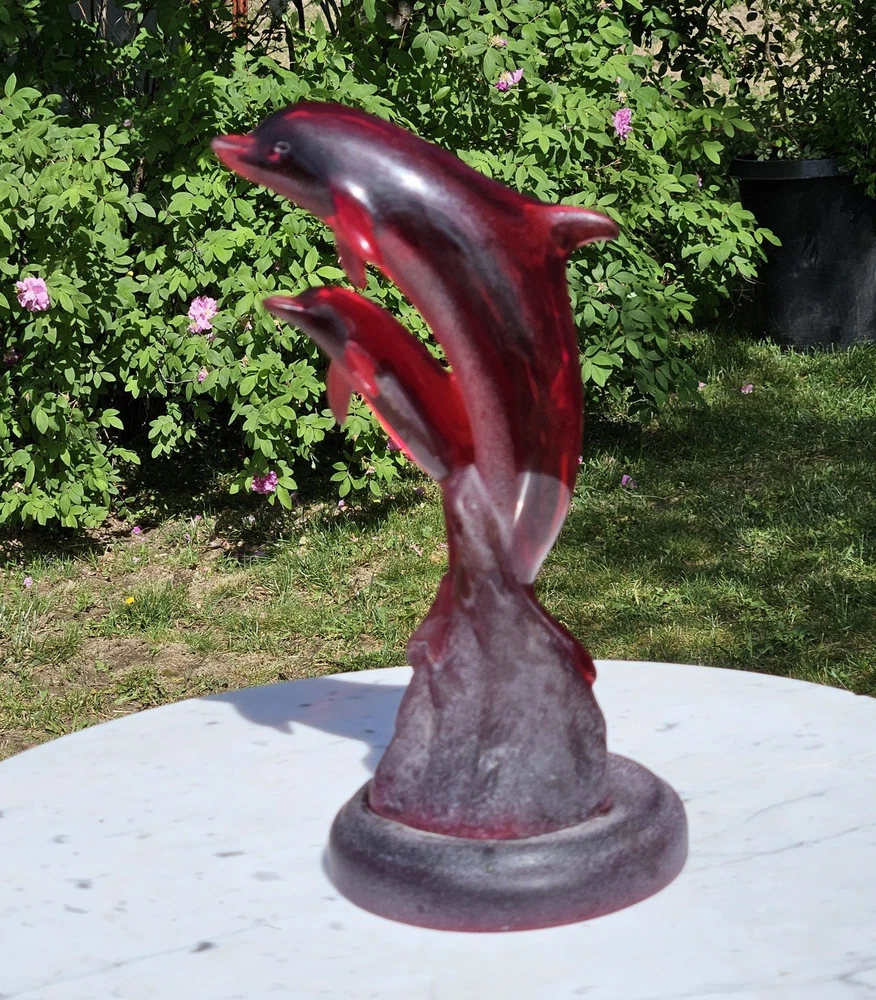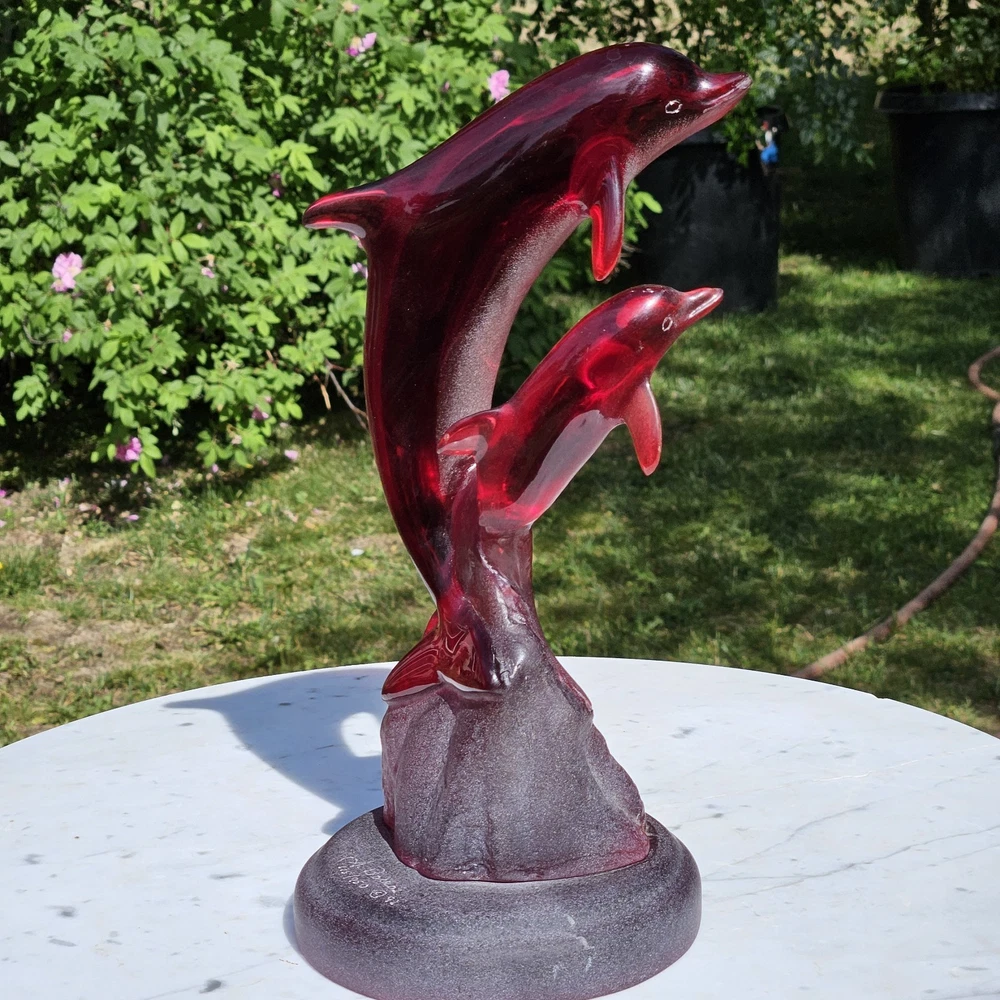 Signed, dated, numbered. Beautiful deep red Hard to find with mommy and baby dolphins. Usually, they are single. 11" tall Collectable See photos for description