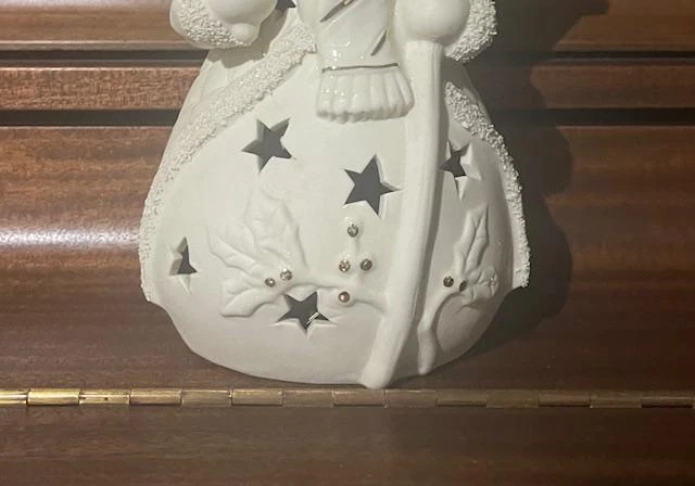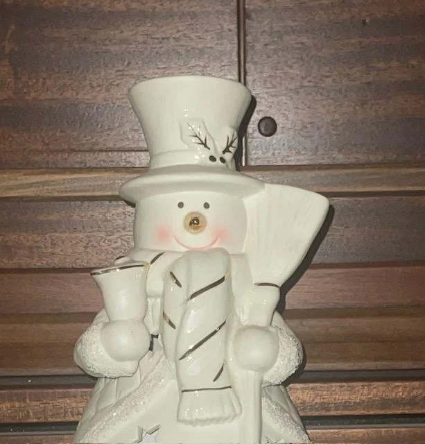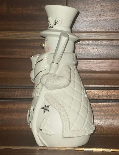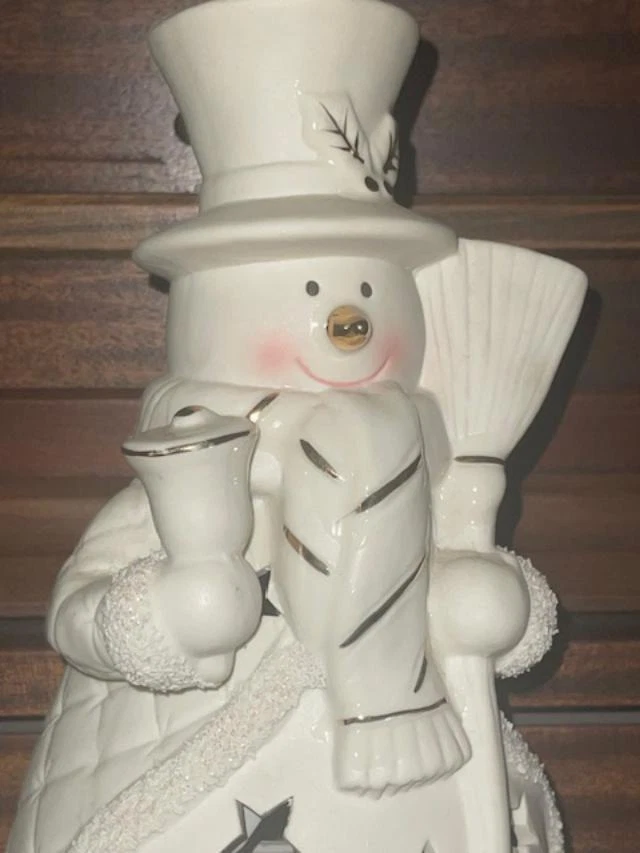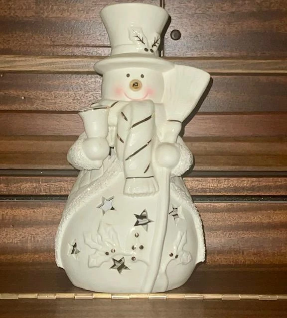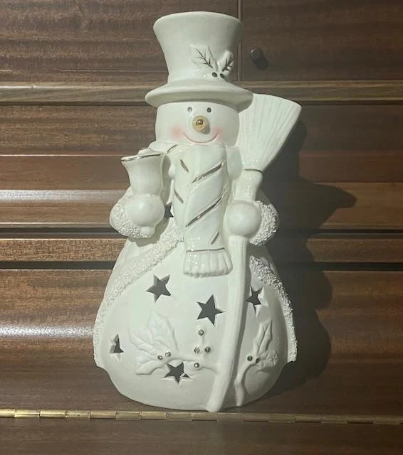 JCPenny Home Collection White Ceramic Snowman Light Accent Decor Christmas SG9 JCPenny Home Collection White Ceramic Snowman Light Accent Decor Christmas SG9 Click image to enlarge Description JCPenny Home Collection White Ceramic Snowman Light Accent Decor Christmas SG9 Product details W hite ceramic snowman accent light "Home Collection" brand. Snowman has a top hat, scarf, and broom. Snowman has a quilted pattern on its body Decorated with gold accents. Sparkles on the trim The light has a cord that is inside the body standard light bulb socket Illuminates through cut-out stars on the snowman's body. Measurements: Height:10" Wide: 6" Still in original sty foam container, but no box No visible damage or imperfections. Payment I usually send invoices within a few hours during the day, every day of the week. If you do not send payment within 7 days and there have been no communications, the item will be re-listed, and I will file a non-paying bidder with E-bay. There is always an exception to the rule. If you cannot make the payment within 7 days due to a specific reason, let me know and I will work with you Shipping I ship every day of the week, except on Sundays and Holidays. I do not ship until payment transaction is complete and your payment is valid. I ship to the confirmed address you have listed with Pay-pal. I will ship to another address for you if you let me know in time and it is a confirmed address. Terms of Sale All items are sold as is and all sales are final. I am not an expert in any items I sell. I describe them as honestly & clearly as I can. Please, if you have any questions ask before buying to avoid any misunderstanding. If the item is not as described or is not usable, let me know and I will gladly refund the full amount of the item and shipping to the buyer. The buyer is responsible for the return shipping. About Us I do all the packing and boxing items from my home. This is a one-person project. I do strive to get you great items at a great price and at a speedy time. It makes me feel good when I receive positive feedback, which I strive for with each item. If you feel you cannot do this, please let me know so I can fix the problem. I will leave positive feedback for your fast payment as soon as you leave your feedback. The reason I want to wait is to make sure you are happy with your item. Contact Us Please review pictures, read the description and ask questions before buying. I encourage you to do this so both of us will have a happy transaction. Remember to ask for extra pictures if you need them. My desire is to please you, the customer. If you have a problem please contact me through seller contact displayed on all items for sale. Get images that make Supersized seem small. Showcase your items with Auctiva's Listing Templates! THE simple solution for eBay sellers. Track Page Views With Auctiva's Counter