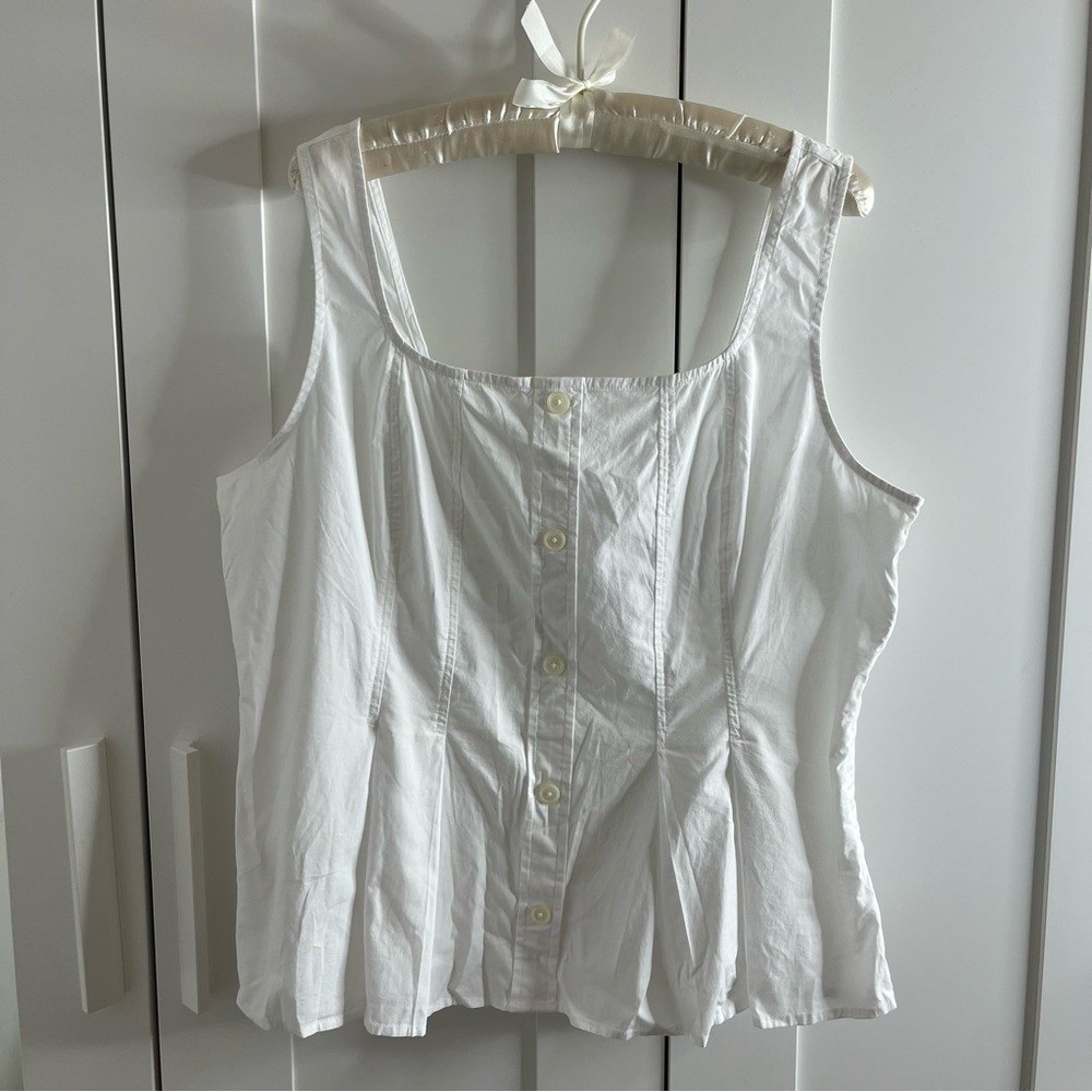 New with tags 98% regenagri-certified cotton/2% elastane. Machine wash. Sleeveless Size 16 Peplum style Approximate Measurements: Pit to pit 21" Lenth top shoulder to bottom 24"