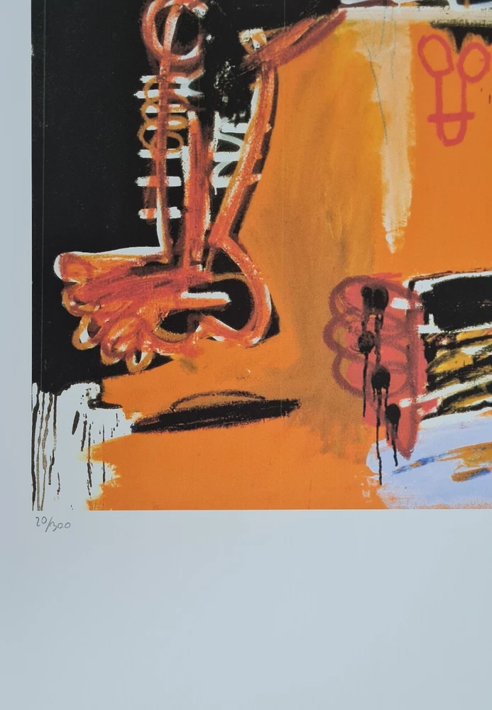 Lithographie "Ohne Titel" In der Platte signiert und mit der Hand nummeriert Limitierte Auflage von 300 Stück Jedes Stück ist einzeln nummeriert Prägestempel Gesamtgröße : 70 cm x 50 cm Nach dem Original von Jean-Michel Basquiat Das Blatt wird flach verschickt, nicht gerollt! Alle angebotenen Kunstprodukte werden mit Rechnung und ausgewiesener Mwst. an Sie versendet Lithograph "Untitled" Signed of the plate and numbered by Hand Limited Edition of 300 pieces Each Piece is individually numbered Embossing Stamp Overall size : 70 cm x 50 cm Based on the original by Jean-Michel Basquiat The sheet is send flat, not rolled! All art products offered will be send to you with invoice and vat Lieferkosten / delivery costs in €uro Deutschland / Germany 9,90 € EU-Staaten / EU-countries 19,90 € Europa (nicht EU) / Europe (non EU) 26,90 € Weltweit / Worldwide 49,90 €