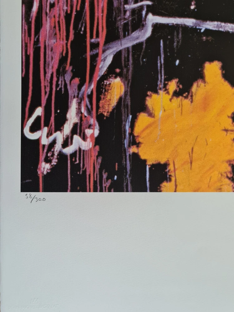 Lithographie "Untitled" In der Platte signiert und mit der Hand nummeriert Limitierte Auflage von 300 Stück Jedes Stück ist einzeln nummeriert Prägestempel Gesamtgröße : 70 cm x 50 cm Nach dem Original von Jean-Michel Basquiat Das Blatt wird flach verschickt, nicht gerollt! Alle angebotenen Kunstprodukte werden mit Rechnung und ausgewiesener Mwst. an Sie versendet Lithograph "Untitled" Signed of the plate and numbered by Hand Limited Edition of 300 pieces Each Piece is individually numbered Embossing Stamp Overall size : 70 cm x 50 cm Based on the original by Jean-Michel Basquiat The sheet is send flat, not rolled! All art products offered will be send to you with invoice and vat Lieferkosten / delivery costs in €uro Deutschland / Germany 9,90 € EU-Staaten / EU-countries 19,90 € Europa (nicht EU) / Europe (non EU) 26,90 € Weltweit / Worldwide 49,90 €