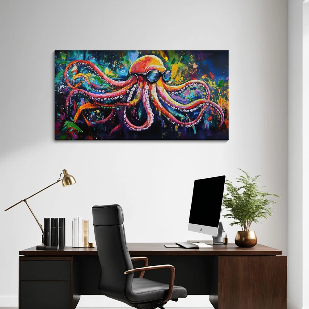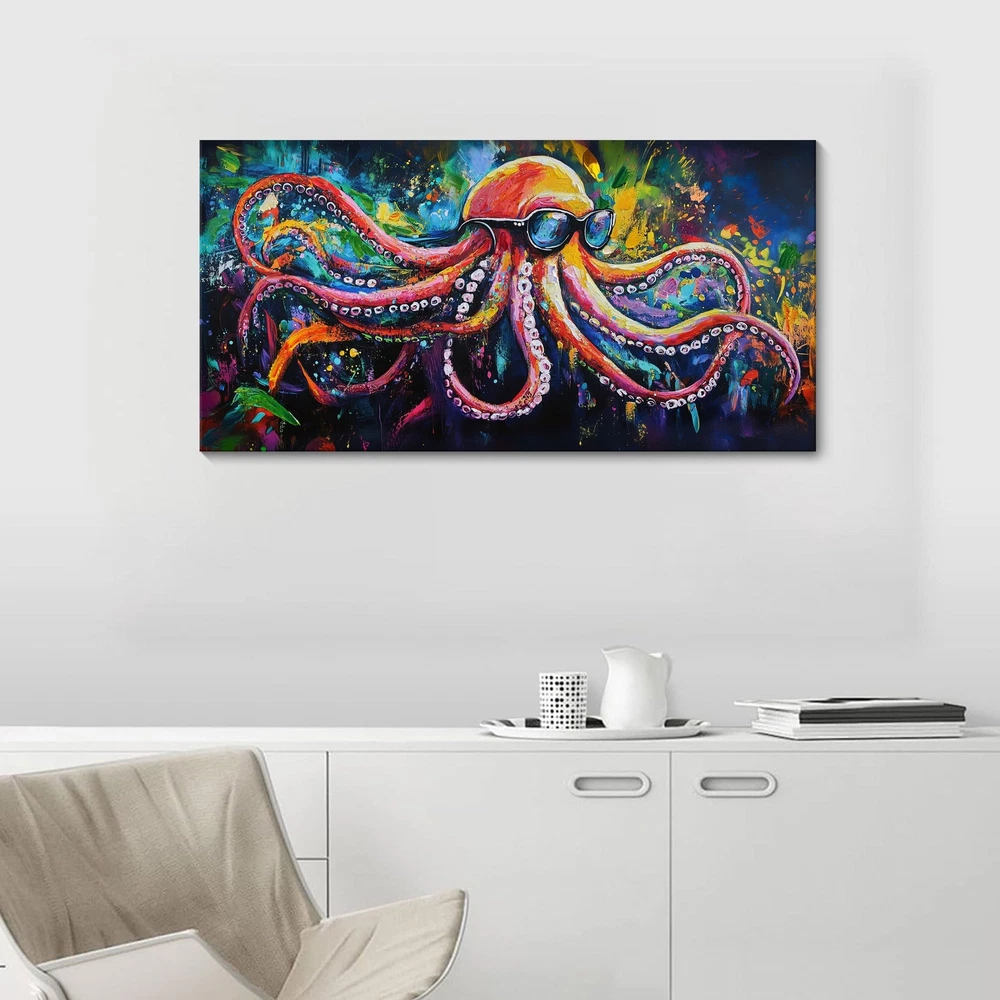 Canvas Art Wall Decor: This canvas wall paintings features a strikingly vivid and colorful depiction of an octopus. The use of bright hues and dynamic brushstrokes creates a visually appealing and energetic piece that can brighten up any space. Graffiti Wall Art Style: The bathroom wall art showcases a unique, abstract style that combines elements of realism with bold, impressionistic touches. This makes it a standout piece for art lovers who appreciate creativity and originality. Large Wall Art: Crafted with top - quality canvas and paints, this abstract canvas wall art ensures durability and long - lasting color vibrancy. The materials used guarantee that the painting will remain a beautiful focal point in any room for years to come. Versatile Decor Piece: Its modern wall art design makes it suitable for a variety of interior styles, from contemporary to eclectic. It can serve as a statement piece in living rooms, bedrooms, offices, or even art galleries. Emotive and Expressive: The wall art bedroom evokes a sense of wonder and curiosity through its expressive portrayal of the octopus. It has the power to stir emotions and spark imagination, making it not just a decor item but also a conversation starter.