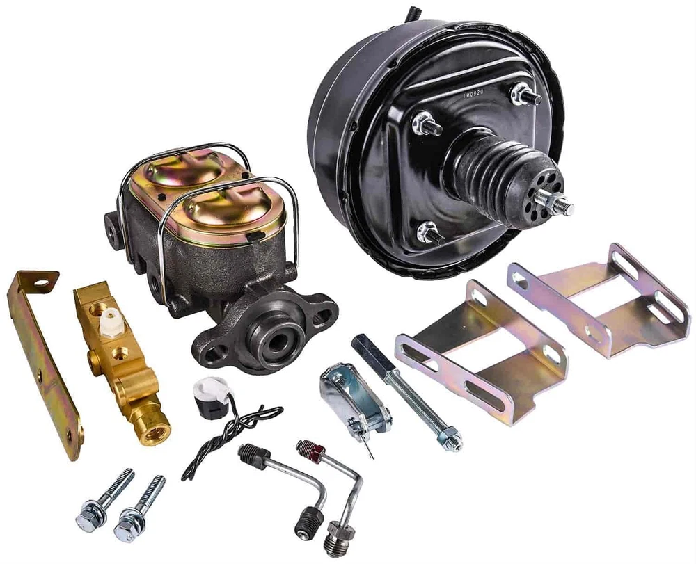 Power Brake Booster Conversion Kit1959-1964 GM CarsDisc/DrumIncludes:8 in. Black Power Brake Booster1 in. Bore Master CylinderProportioning ValveBrake Light SwitchExtension Rod & ClevisMounting Brackets Breakdown of Included ItemsJEGS 631484 is designed to upgrade your classic street rod from manual to power brakes. This kit includes a dual reservoir master cylinder, replacing the original single reservoir system. This translates to an easier pedal when stopping the car, and a safer braking system when on the street JEGS 631484 Power Brake Booster Conversion Kit 1959-1964 GM Cars Disc/Drum Inclu Power Brake Booster Conversion Kit 1959-1964 GM Cars Disc/Drum Includes: 8 in. Black Power Brake Booster 1 in. Bore Master Cylinder Proportioning Valve Brake Light Switch Extension Rod & Clevis Mounting Brackets Breakdown of Included Items JEGS 631484 is designed to upgrade your classic street rod from manual to power brakes. This kit includes a dual reservoir master cylinder, replacing the original single reservoir system. This translates to an easier pedal when stopping the car, and a safer braking system when on the street or at the track. Fits: 1959-1964 Chevrolet Bel Air 1959-1964 Chevrolet Biscayne 1959-1964 Chevrolet Impala 1959-1961 Chevrolet Brookwood 1959-1961 Chevrolet Nomad Proportioning Valve fitting sizes: 1/2 in. - 20 & 7/16 in. - 24 Thread (Inlets) 3/8 in - 24 Thread (Outlets) 9/16 in. - 18 Thread (Rear Outlet Size) Master Cylinder fitting sizes: 1/2 in. - 20 Thread (Front Port) 9/16 in. - 18 Thread (Rear Port) Master Cylinder has ports on both sides From the iconic mail order catalog to a fully-stocked digital commerce experience, we have built a preferred destination for every gear-head, professional racer, weekend warrior and restoration nut who wants to take their vehicle to the next level. Around here, we don't just sell parts - we rely on them when driving our own cars around racetracks, dirt trails, and interstates across the country. Parts may be our business - but grease, fuel, exhaust, power, and speed are what we live for. Today, more than 350 people are employed by JEGS and the business draws in hundreds of thousands of customers each year. Yet, we maintain the culture stared by Jeg Coughlin from the very beginning: a family-run performance shop that preserves a trusted relationship with each and every customer. From the iconic mail order catalog to a fully-stocked digital commerce experience, we have built a preferred destination for every gear-head, professional racer, weekend warrior and restoration nut who wants to take their vehicle to the next level. Around here, we don't just sell parts - we rely on them when driving our own cars around racetracks, dirt trails, and interstates across the country. Parts may be our business - but grease, fuel, exhaust, power, and speed are what we live for. Today, more than 350 people are employed by JEGS and the business draws in hundreds of thousands of customers each year. Yet, we maintain the culture stared by Jeg Coughlin from the very beginning: a family-run performance shop that preserves a trusted relationship with each and every customer. From the iconic mail order catalog to a fully-stocked digital commerce experience, we have built a preferred destination for every gear-head, professional racer, weekend warrior and restoration nut who wants to take their vehicle to the next level. Around here, we don't just sell parts - we rely on them when driving our own cars around racetracks, dirt trails, and interstates across the country. Parts may be our business - but grease, fuel, exhaust, power, and speed are what we live for. Today, more than 350 people are employed by JEGS and the business draws in hundreds of thousands of customers each year. Yet, we maintain the culture stared by Jeg Coughlin from the very beginning: a family-run performance shop that preserves a trusted relationship with each and every customer. From the iconic mail order catalog to a fully-stocked digital commerce experience, we have built a preferred destination for every gear-head, professional racer, weekend warrior and restoration nut who wants to take their vehicle to the next level. Around here, we don't just sell parts - we rely on them when driving our own cars around racetracks, dirt trails, and interstates across the country. Parts may be our business - but grease, fuel, exhaust, power, and speed are what we live for. Today, more than 350 people are employed by JEGS and the business draws in hundreds of thousands of customers each year. Yet, we maintain the culture stared by Jeg Coughlin from the very beginning: a family-run performance shop that preserves a trusted relationship with each and every customer. From the iconic mail order catalog to a fully-stocked digital commerce experience, we have built a preferred destination for every gear-head, professional racer, weekend warrior and restoration nut who wants to take their vehicle to the next level. Around here, we don't just sell parts - we rely on them when driving our own cars around racetracks, dirt trails, and interstates across the country. Parts may be our business - but grease, fuel, exhaust, power, and speed are what we live for. Today, more than 350 people are employed by JEGS and the business draws in hundreds of thousands of customers each year. Yet, we maintain the culture stared by Jeg Coughlin from the very beginning: a family-run performance shop that preserves a trusted relationship with each and every customer. From the iconic mail order catalog to a fully-stocked digital commerce experience, we have built a preferred destination for every gear-head, professional racer, weekend warrior and restoration nut who wants to take their vehicle to the next level. Around here, we don't just sell parts - we rely on them when driving our own cars around racetracks, dirt trails, and interstates across the country. Parts may be our business - but grease, fuel, exhaust, power, and speed 