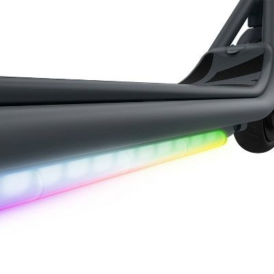 • Perfect for both recreational riding and as light transportation. • Below-deck LED lights send out beams of illumination. 5 different color settings let you customize the look. • Stream a riding soundtrack through the integrated Bluetooth speaker. The lights pulse in sync to the musical beat. • Max speed of 15 mph, with 2 slower speed settings to cater to all kinds of riders and riding locales. • Thumb throttle and e-brake for perfect pace control. • Folds in half for carrying, transport, and storage. • Sturdy frame, anti-slip deck, and durable pneumatic wheels provide a solid standing base. • Additional features include a kickstand, bell, and battery charge indicator light. The Jetson Loomis Electric Scooter doesn’t just take you places – it takes you there in your own style. The dynamic LED lights under the deck can be set in any of 5 different color modes. Start streaming your favorite songs through the scooter’s integrated Bluetooth speaker, and watch those lights pulse in sync to the beat of your soundtrack. Whether you’re zipping around campus, cruising around the neighborhood, or headed into town – your ride will always have just the right energy. Use the thumb throttle, e-brake, and 3 speed settings to control your pace – but should you want to fly, this scooter gets you going at up to 15 mph. Get up to 12 miles of distance before it’s time to recharge. The Loomis is recommended for riders ages 12 and up. Dimensions (Overall): 40.3 Inches (H) x 16.9 Inches (W) x 36.8 Inches (D) Weight: 24.2 Pounds Holds up to: 220 Pounds Material: Steel (Frame) Features: Adjustable speed, Bluetooth, Folds, Non-Slip Deck, Pneumatic Tires, Hand-Operated Brakes, Stand-Up, LED Lights, Lights Up, Built-In Speakers Suggested Age: 12 Years and Up Number of Wheels: 2 Handle Height: 40.3 Inches (min) - 40.3 Inches (max) Wheel Material: Rubber Assembly Details: Adult Assembly Required, Tools Provided Estimated Charge Time: 6 Hours Maximum Speed: 15 Miles per Hour Industry or Government Certifications: UL2272 Certified Wheel Diameter: 8 Inches Wattage Output: 108 Watts Cruising Range: 12 Miles Maximum Battery Charge Life: 12 Miles Battery: 1 Non-Universal Lithium Ion, Required, Included