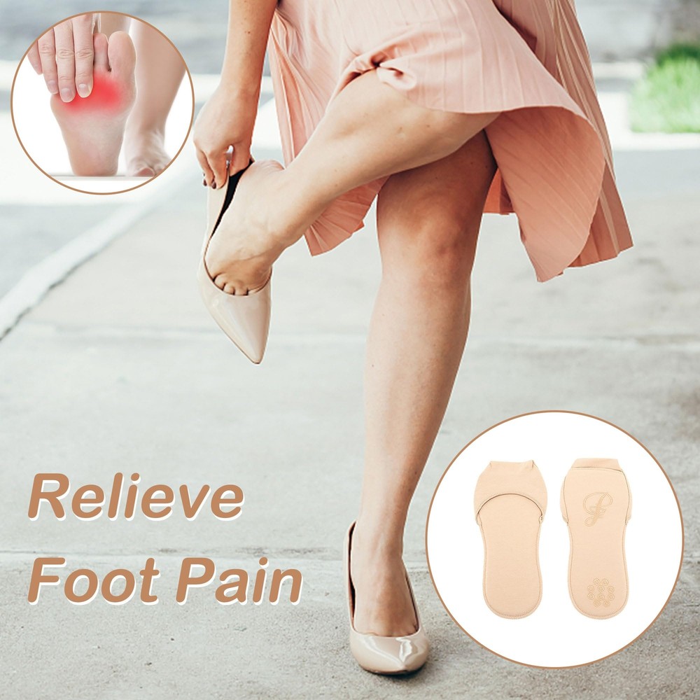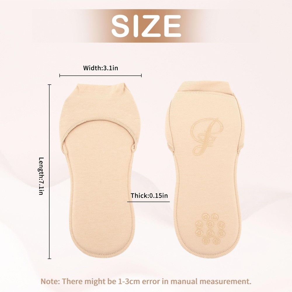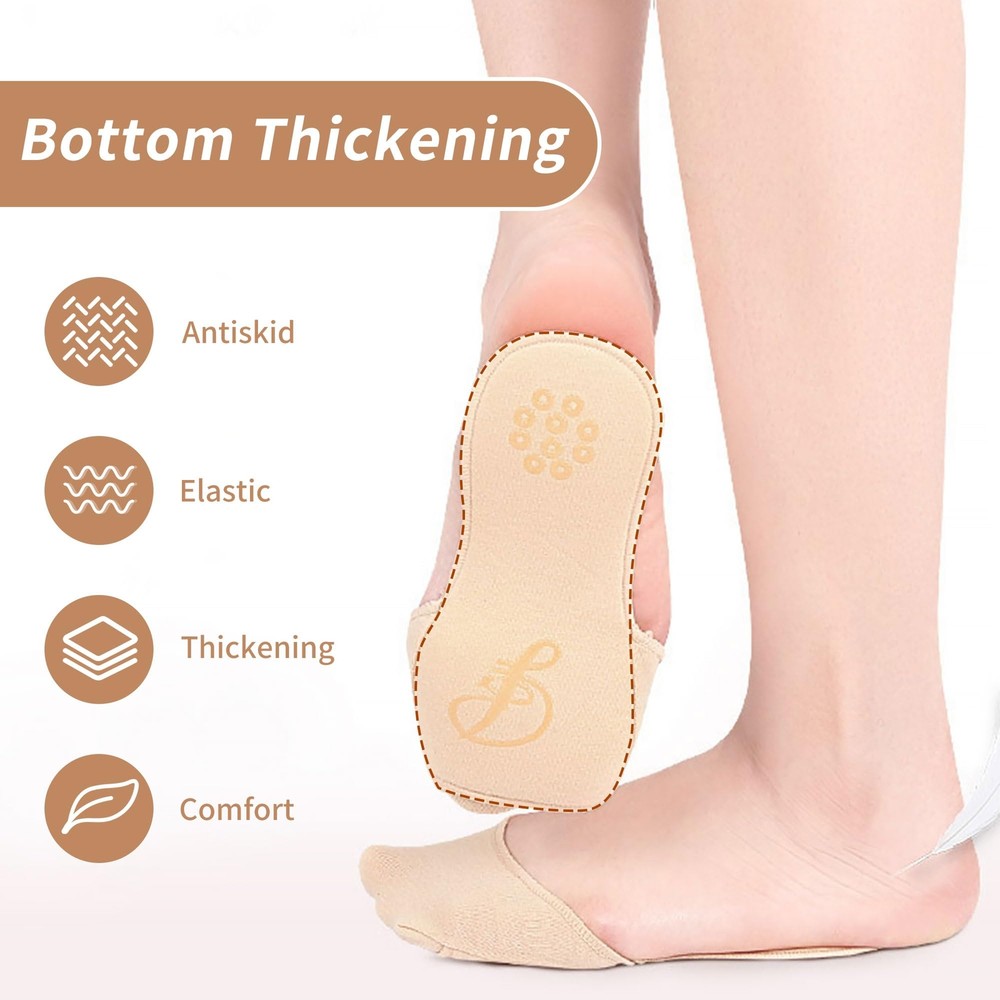 JEVRKAPZ 2Pairs Women's Sock-Style Metatarsal Pads Ball of Foot Cushion Sole Pads,Honeycomb Fabric Forefoot Pads Cushioning High Heel Shoes Insoles for Prevent Pain and Discomfort Specification The package includes:2 Pair Sock cushion Product Dimensions:7.2 *3.2*0.2inches Colors:Black and Beige Characteristic Invisible socks: these shallow invisible, beautiful, and no-show ball of foot padded socks are suitable for all kinds of shoes like high heels, open back shoes, pumps, flats, loafers etc. Breathe and Comfortable: breathable fabric with good moisture management keeps feet dry and fresh, providing maximum comfort for daily use, toe socks fit various types of feet, with elastic and breathable, humanized design which helps reduce pressure and tension on the forefoot, no sweat and non-slip. Reusable: Metatarsal pads for women can be reused and easy to clean with water or soap. 【High Quality Material】These toe covers are made of sponge and stretchy, lightweight knit fabric, which is comfortable and breathable, with perfect wiring, and cotton that doesn't loosen easily. They can meet your daily needs. 【All Day Comfort】Beige Shoe Inserts is a combination design of insoles and non marking socks. It uses high-quality sponge, with a soft but not bulky bottom, which can exert pressure on your feet and give you a comfortable feeling every step you take. 【Anti slip】Our insole has anti slip silicone at the bottom, which increases the friction between the insole and the shoe during walking. It reduces the occurrence of skidding, providing you with a sense of peace of mind. 【Wide Application】Whether you like running, hiking, climbing. Or prefer dancing, shopping. These soft and elastic front foot topper socks can provide sufficient cushion for your metatarsal , reducing fatigue and soreness. It is suitable for a wide range of people, such as dancers, shop assistants, white-collar workers, sports enthusiasts and so on. 【Note】This insole is a one size forefoot sockliner, not a full length insole, so it is shorter than regular insoles. It is recommended to use with all inclusive shoes, not suitable for shoes without heels. Shipping from the USA All of our products are shipped from the USA, ensuring quick delivery to your destination. Payment We offer the following payment methods: PayPal, credit card, bank transfer, and eBay's secure payment system. Free Shipping & Free Returns Shipping within the USA is FREE. Additionally, any return is absolutely free for you. Risk-Free Purchase You have the option to return an item within 30 days without any justification. We cover the return shipping costs! Fast Shipping We ship immediately upon receipt of payment. Generally, the package is delivered within 2-3 days in the USA. If it takes longer, we will contact you. Quality and Costs Made in Europe, USA, China No customs fees or additional charges Total satisfaction guarantee Invoice with declared VAT available upon request in .pdf format Feedback Your feedback is very important to us. After you pay for your purchase, you will automatically receive positive feedback from us.